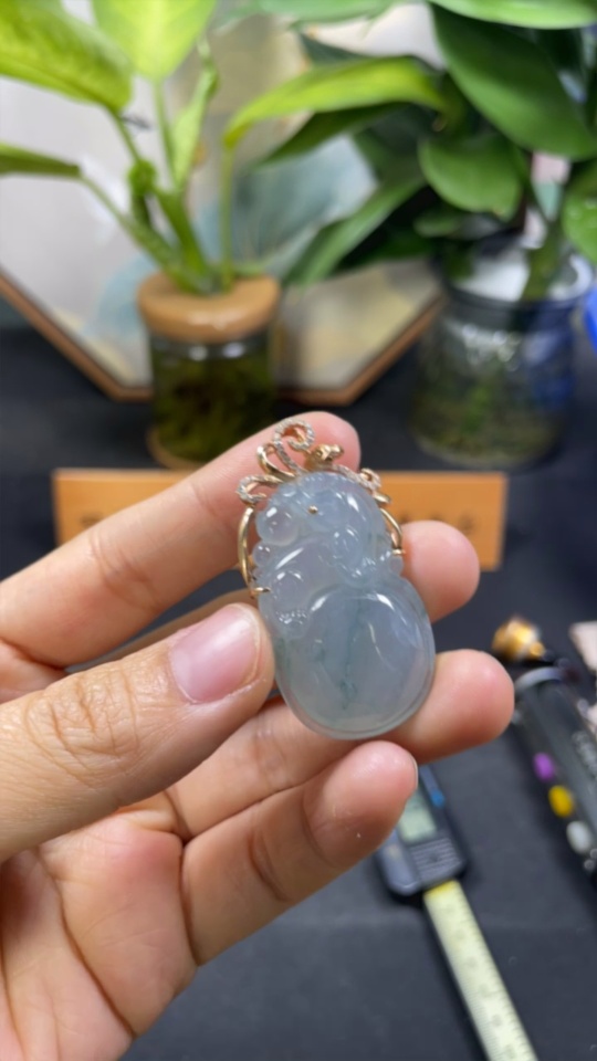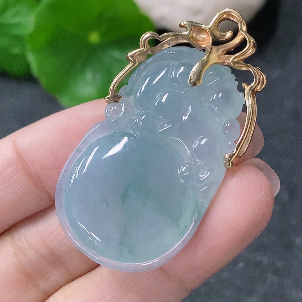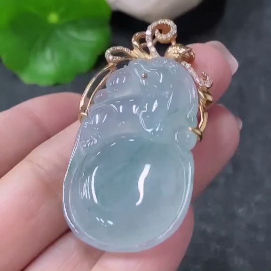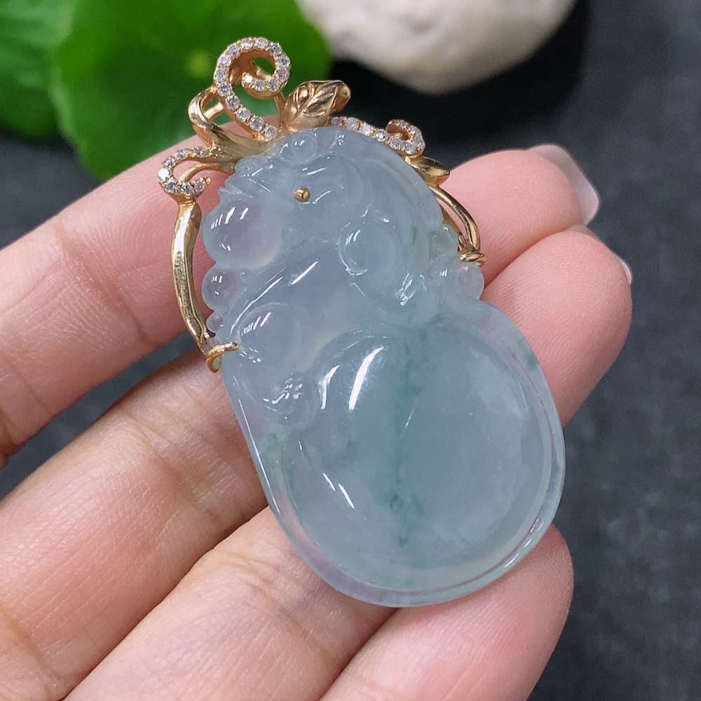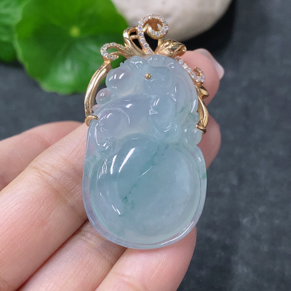 Jadeite Pendant Lucky Shell with 18K Gold and Diamond Accents, Total Weight Approximately 13.7g