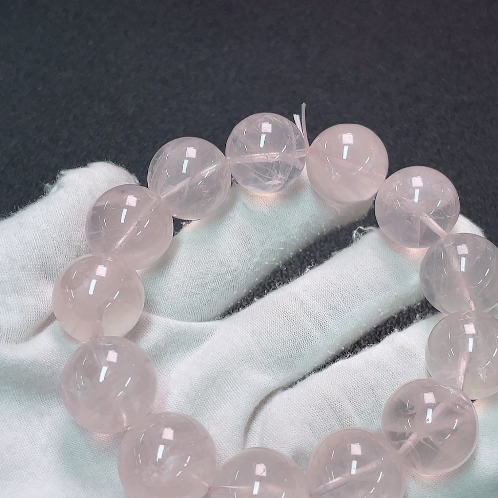 Crystal Bracelet with Visible Organic Inclusions, Total Weight Approximately 110.4g, Bead Size About 18mm