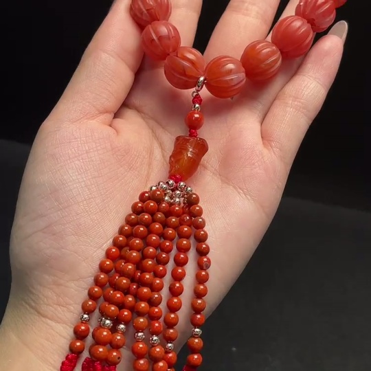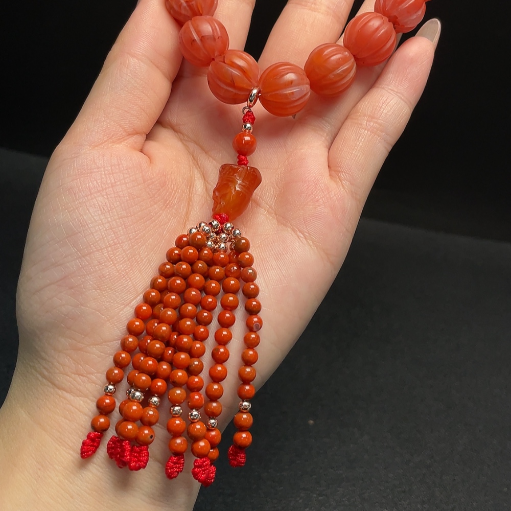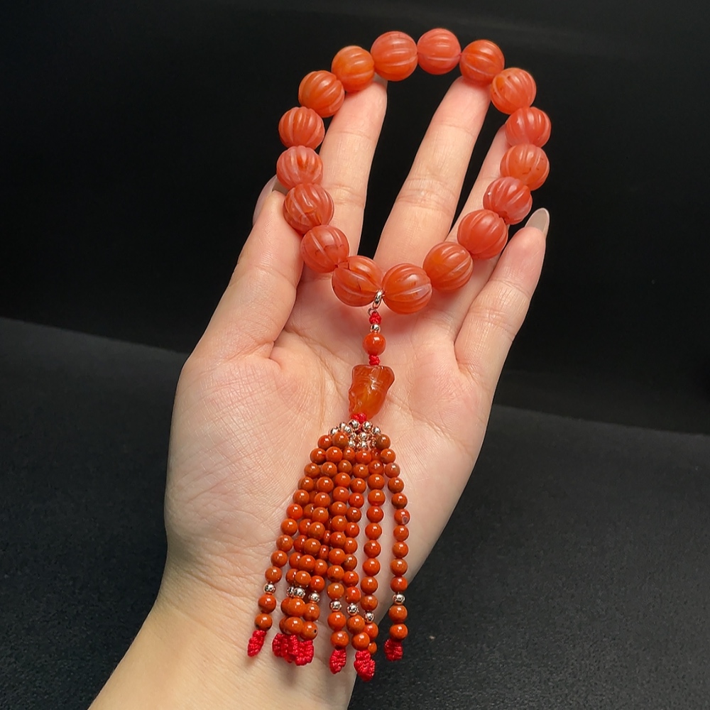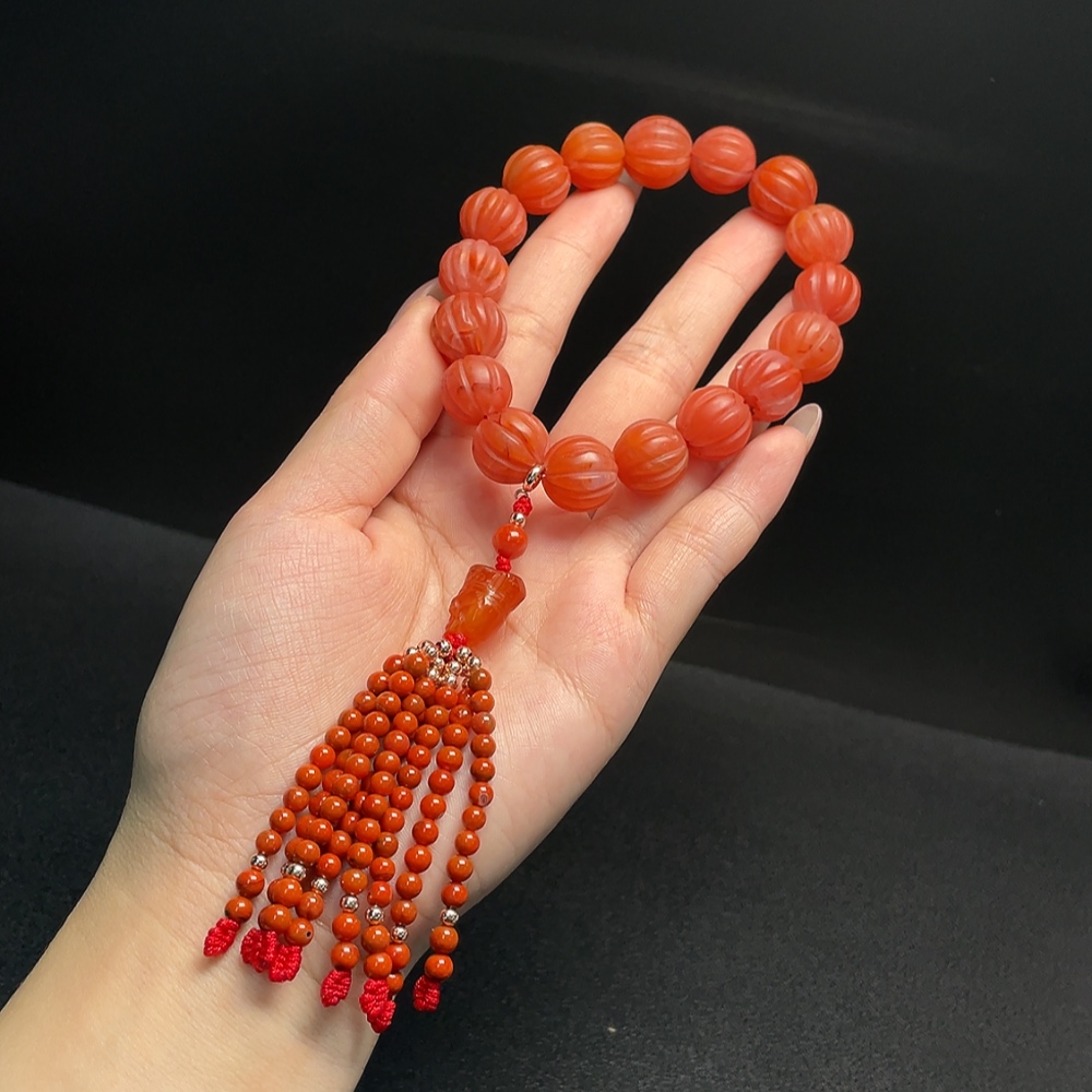 The South Red Agate Bracelet with Visible Organic Matter, Total Weight Approximately 65g, Bead Size Around 13.1mm, Mounting Stones Possibly Non-Natural, Non-Metal