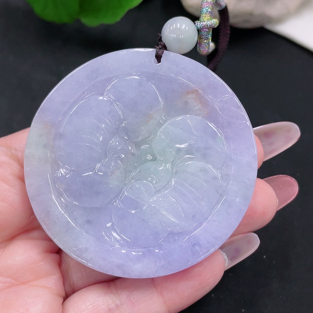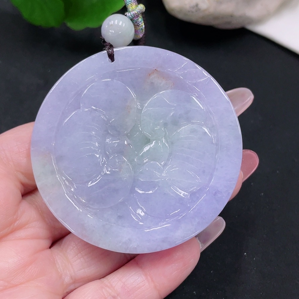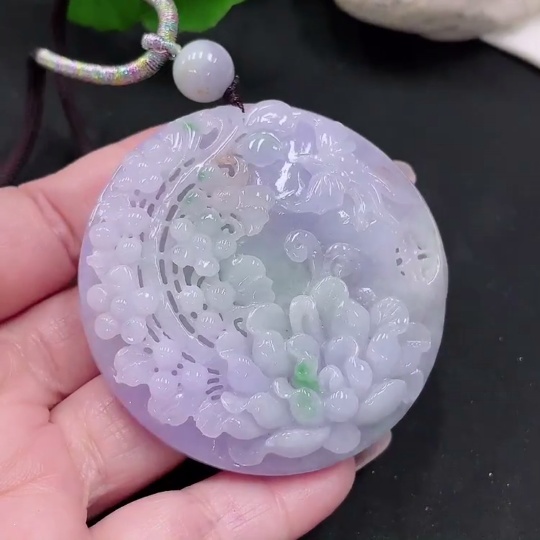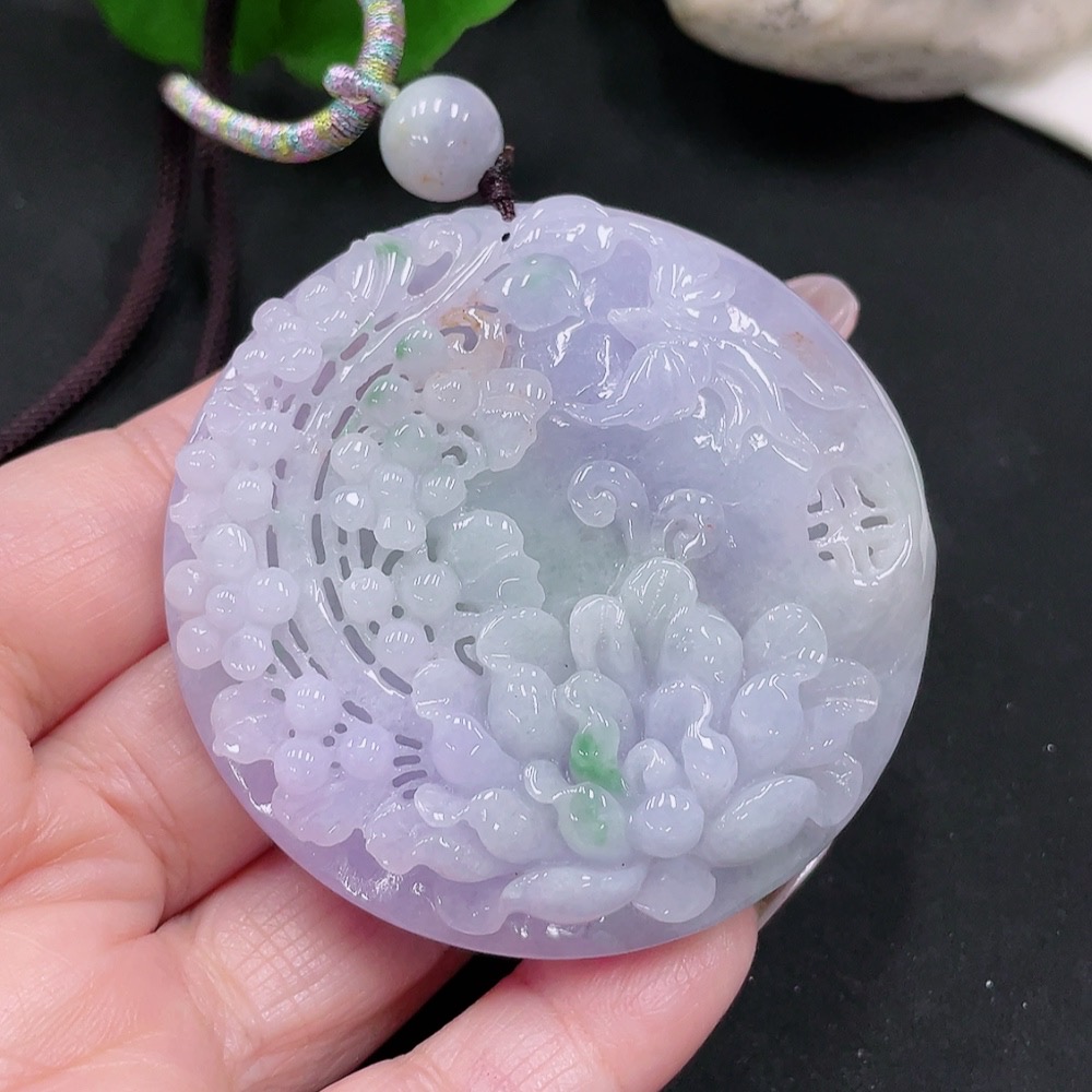 Jadeite Flower and Bird Pendant (Total weight approx. 80.8g, including rope weight)