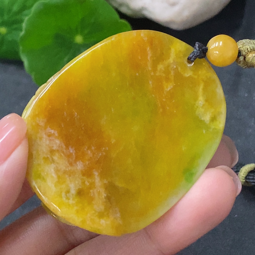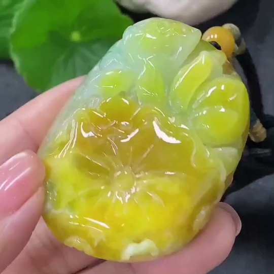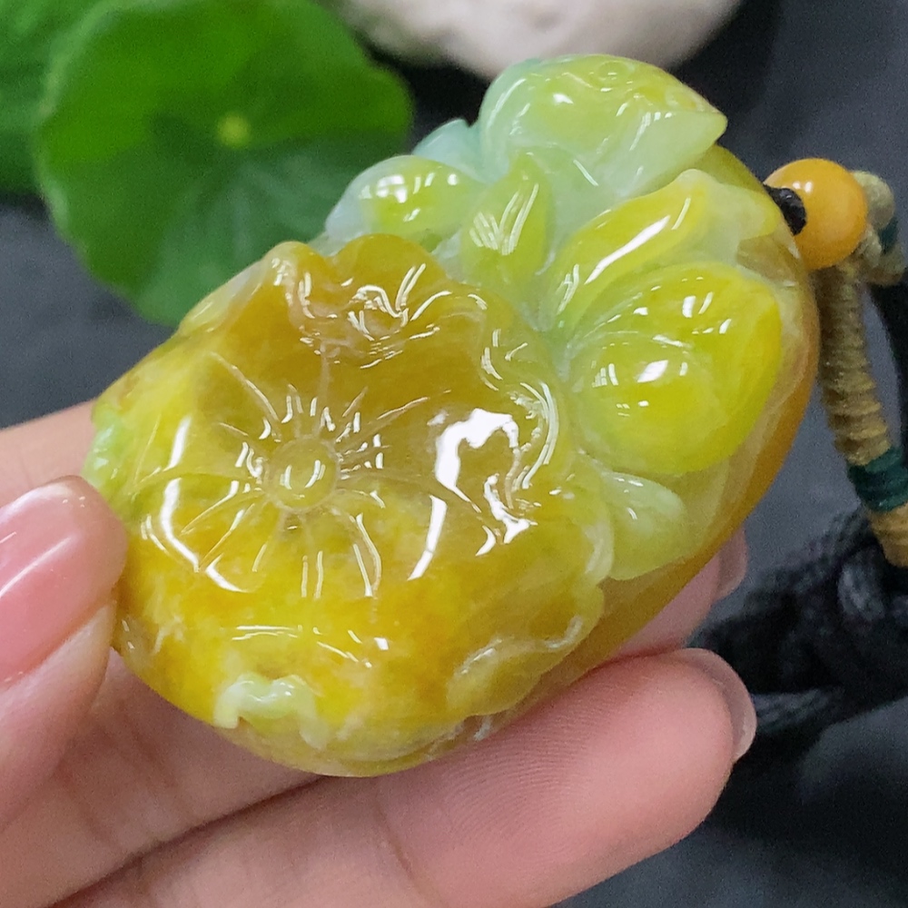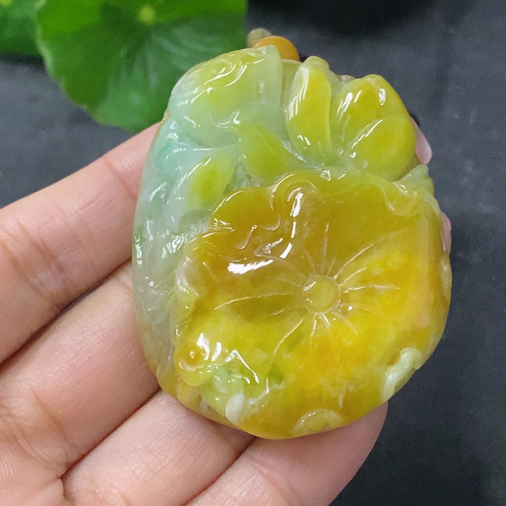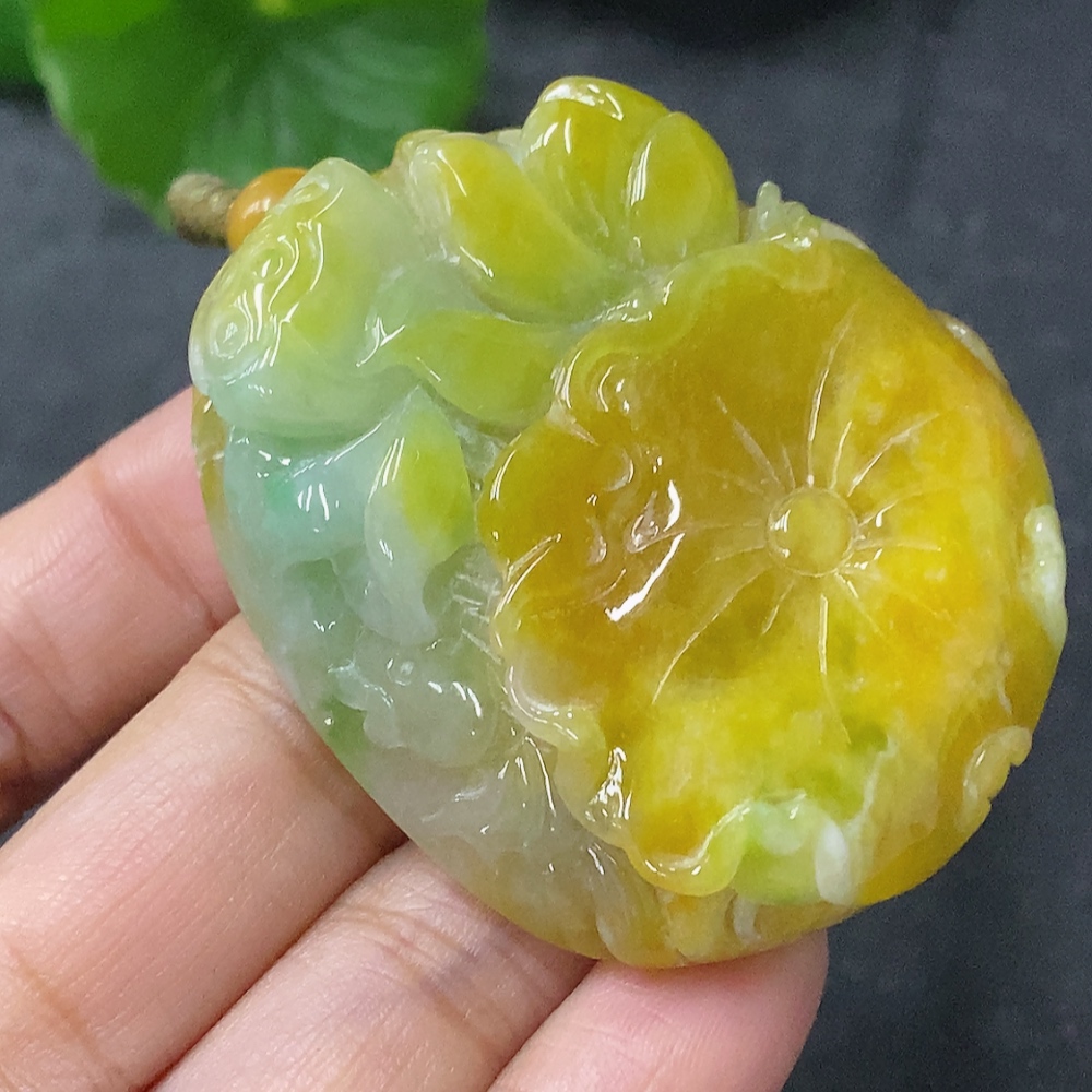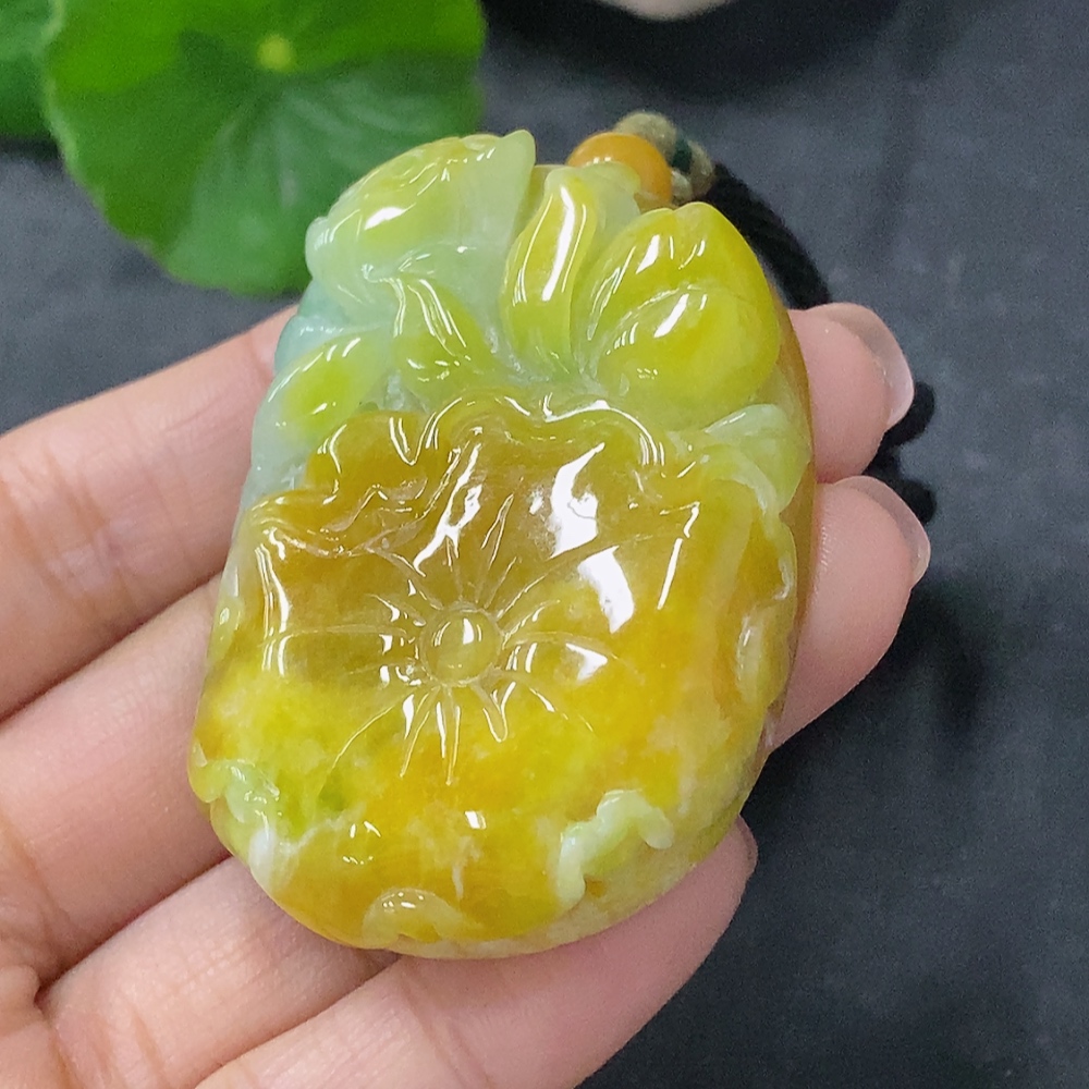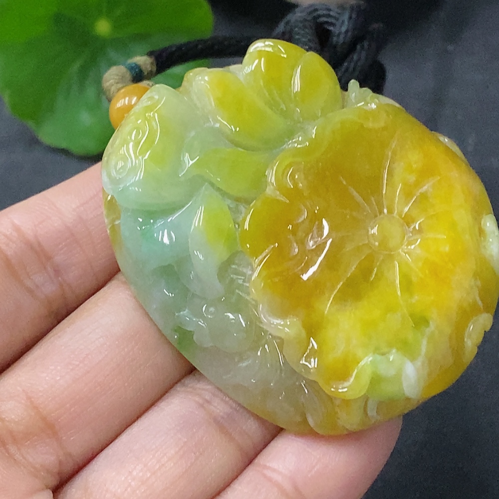 Trezaar - Jadeite Pendant Lotus Total Weight Approx. 60.9g with Cord Yellow Part Color Origin Undetermined