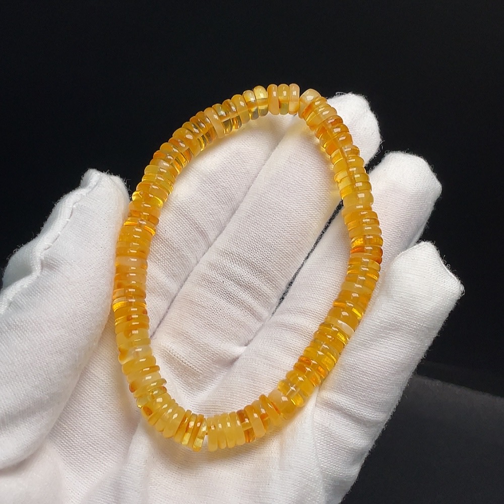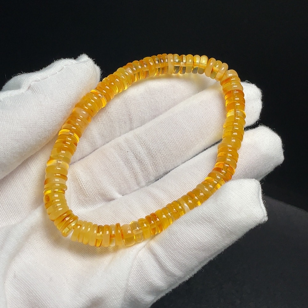 Amber Beeswax Bracelet, Total Weight Approx. 6.5g, Size About 6.4mm