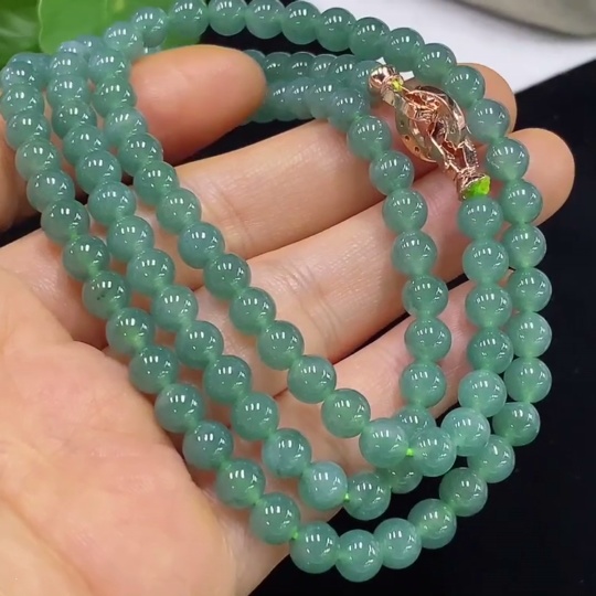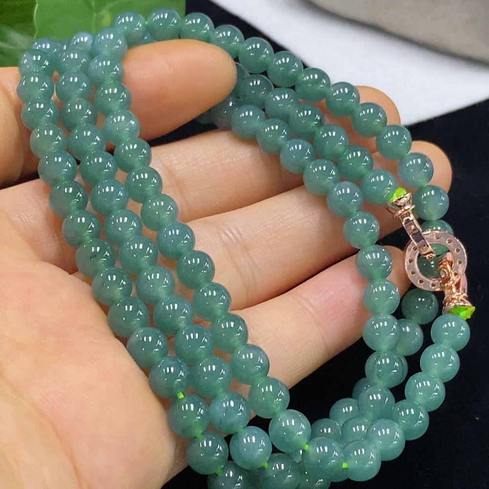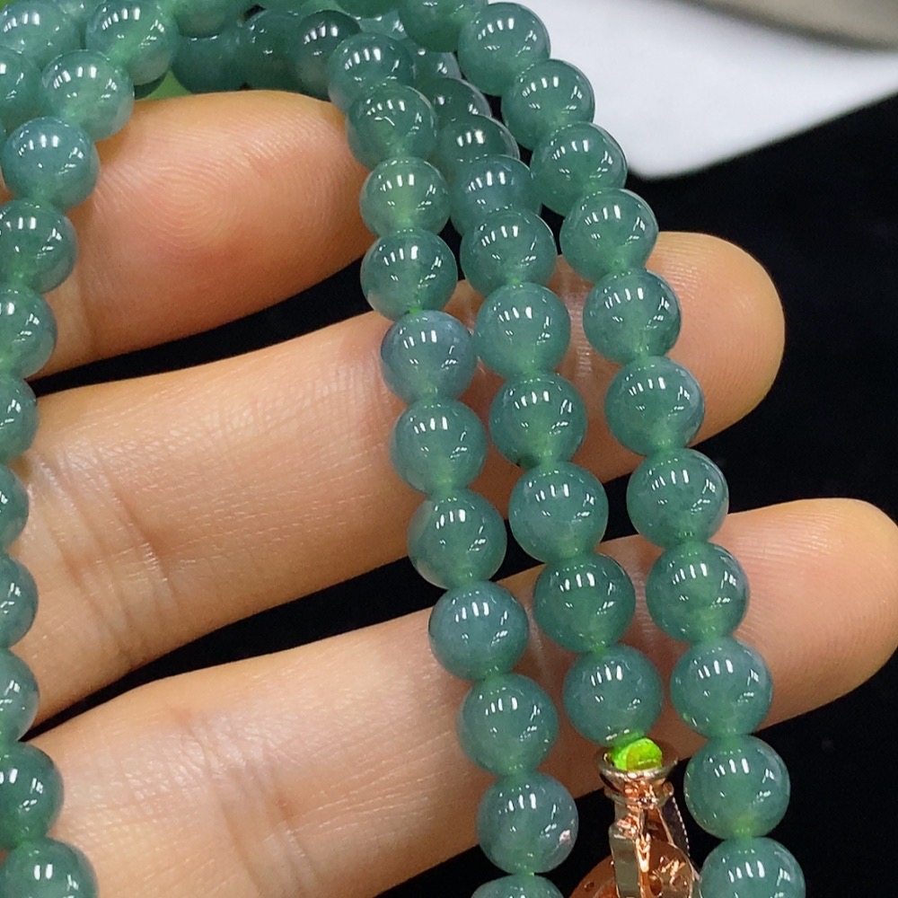 Jadeite Bead Necklace Approx. 5.8mm Non-Gold Total Weight Approx. 39.52g