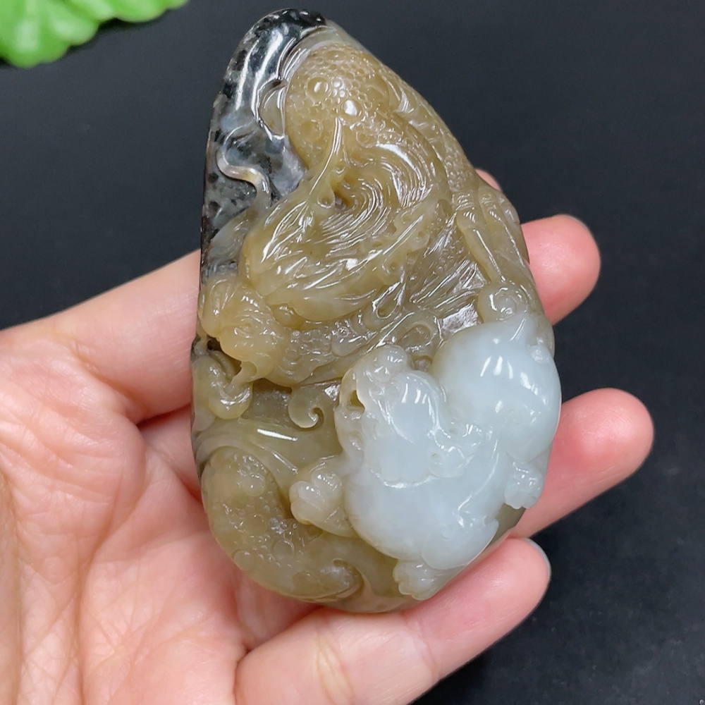 Hetian Jade Handheld Carving - Dragon, Total Weight Approx. 99.2g, Undetermined Skin Color Origin, Contains Other Mineral Components
