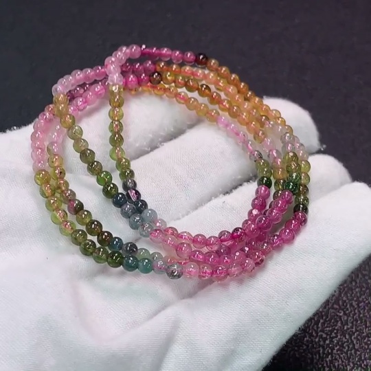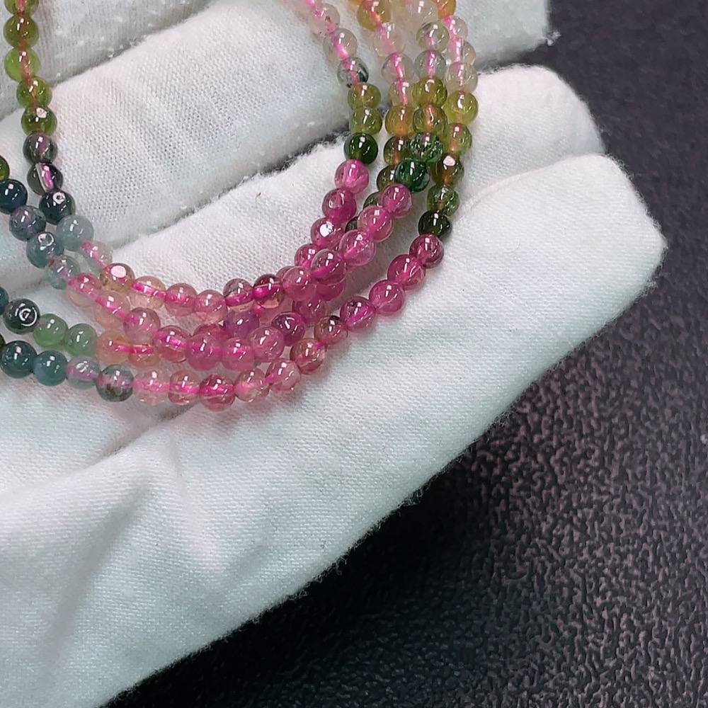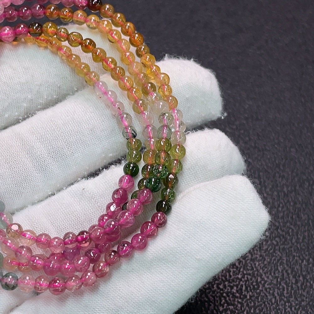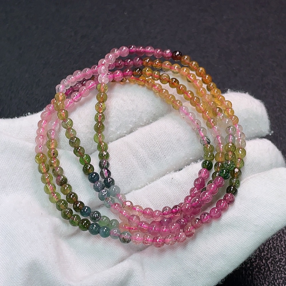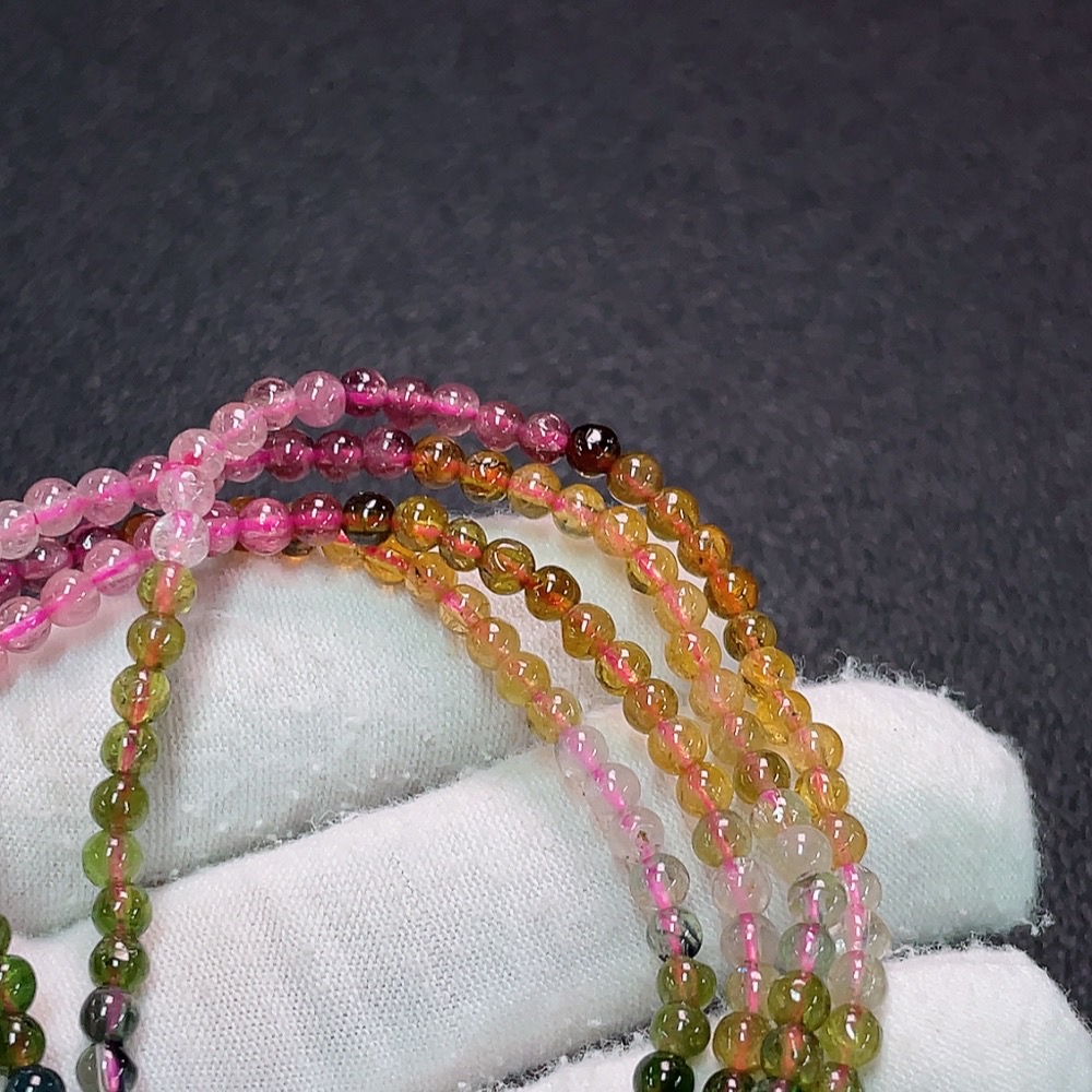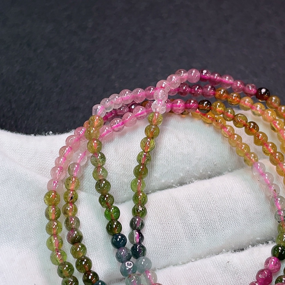 Tourmaline Bead Bracelet with Other Mineral Components and Visible Organic Matter, Total Weight Approximately 13.83g, Approximately 3.4mm in Size