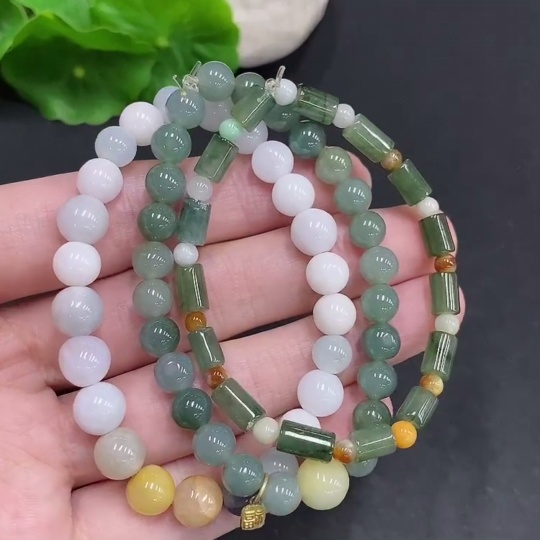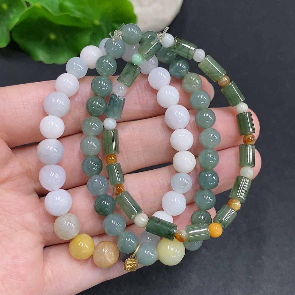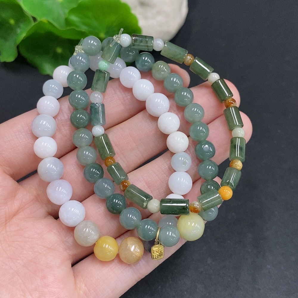 Jadeite Bracelet Sell as a Lot Non-gold Inlaid Yellow Beads Non-jadeite