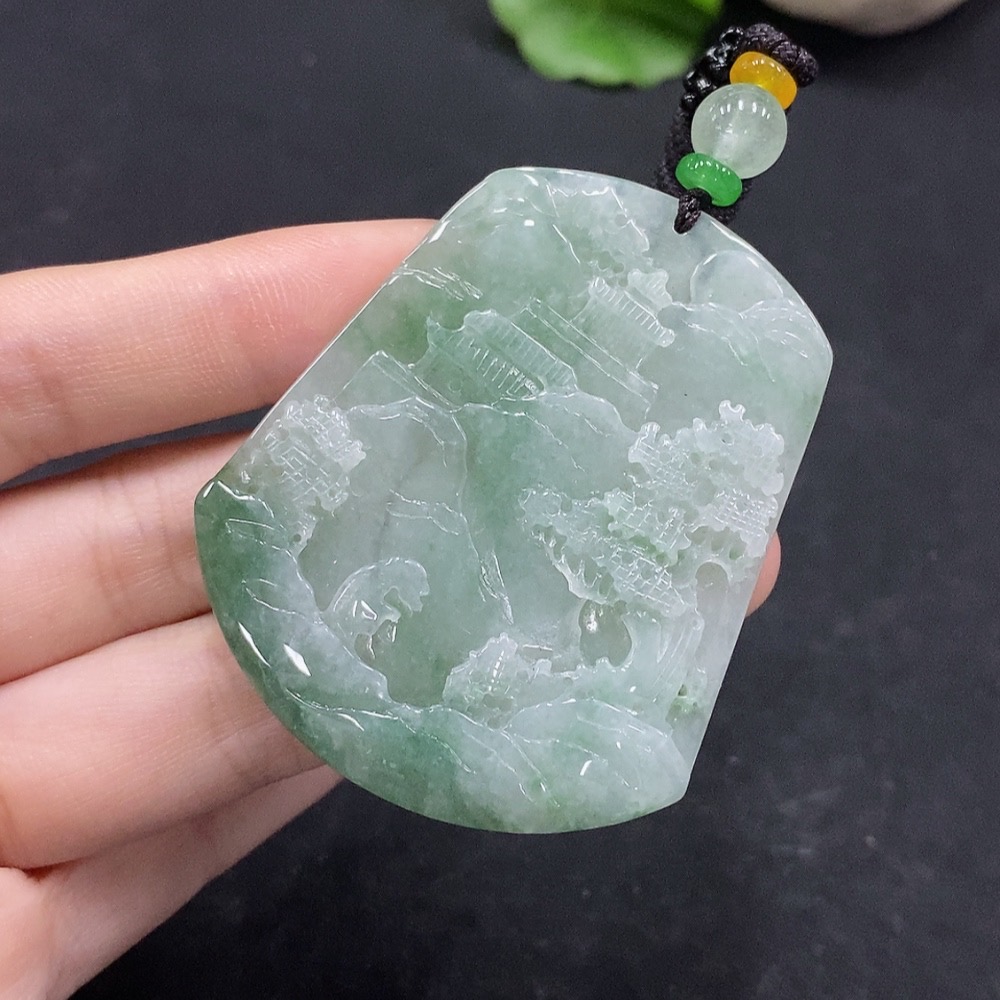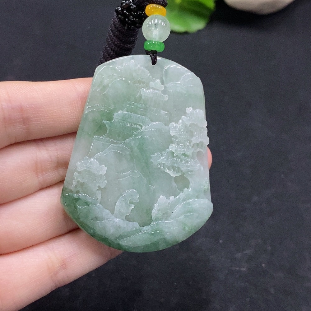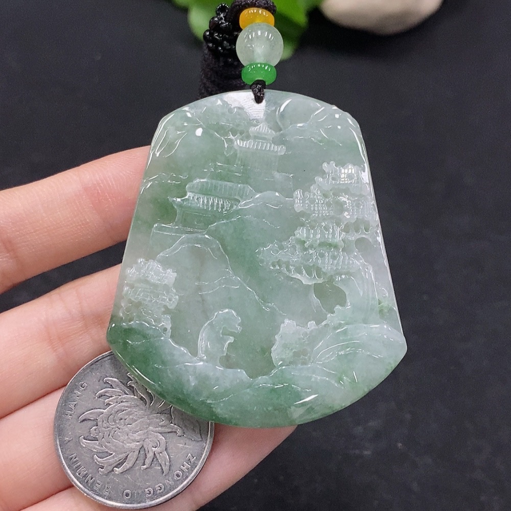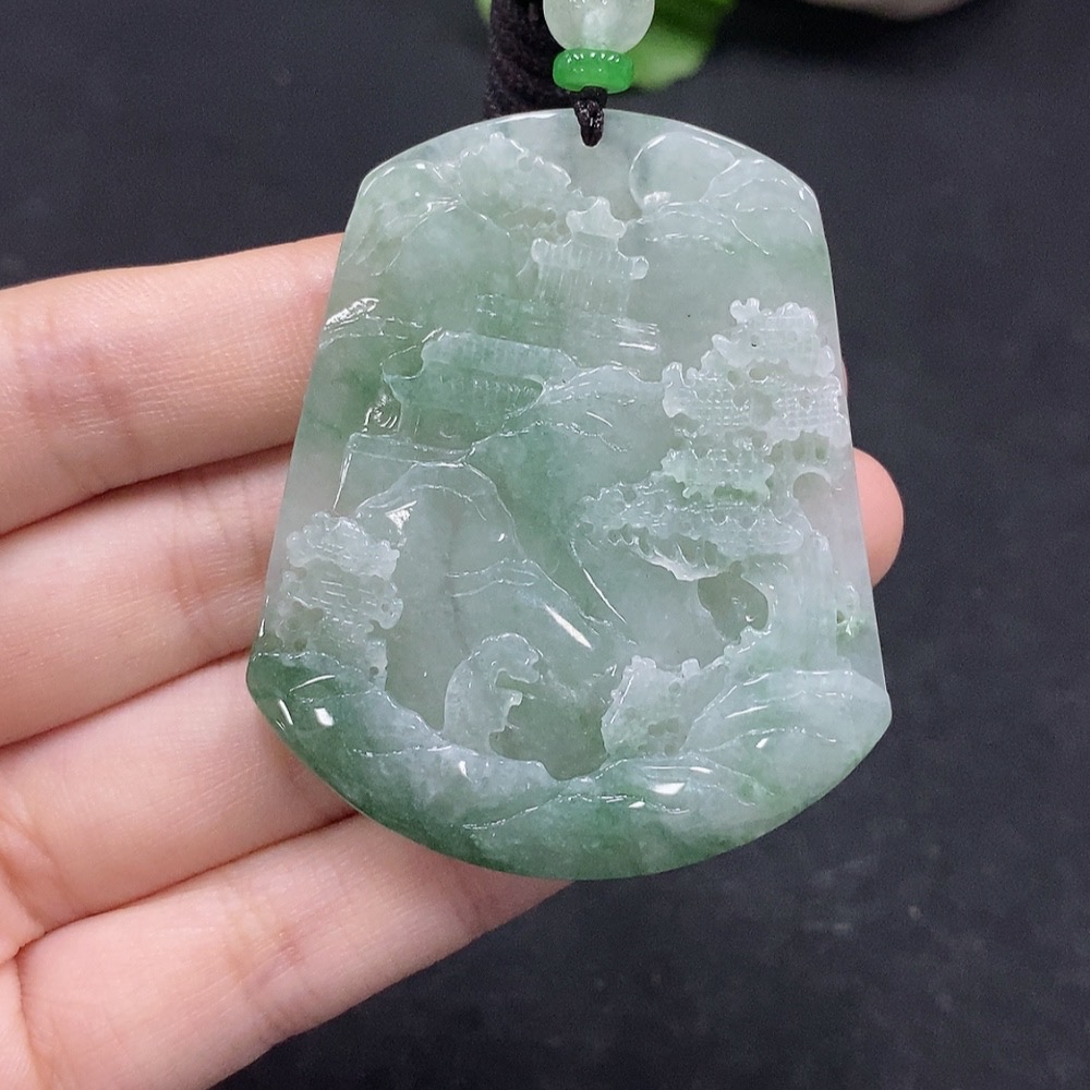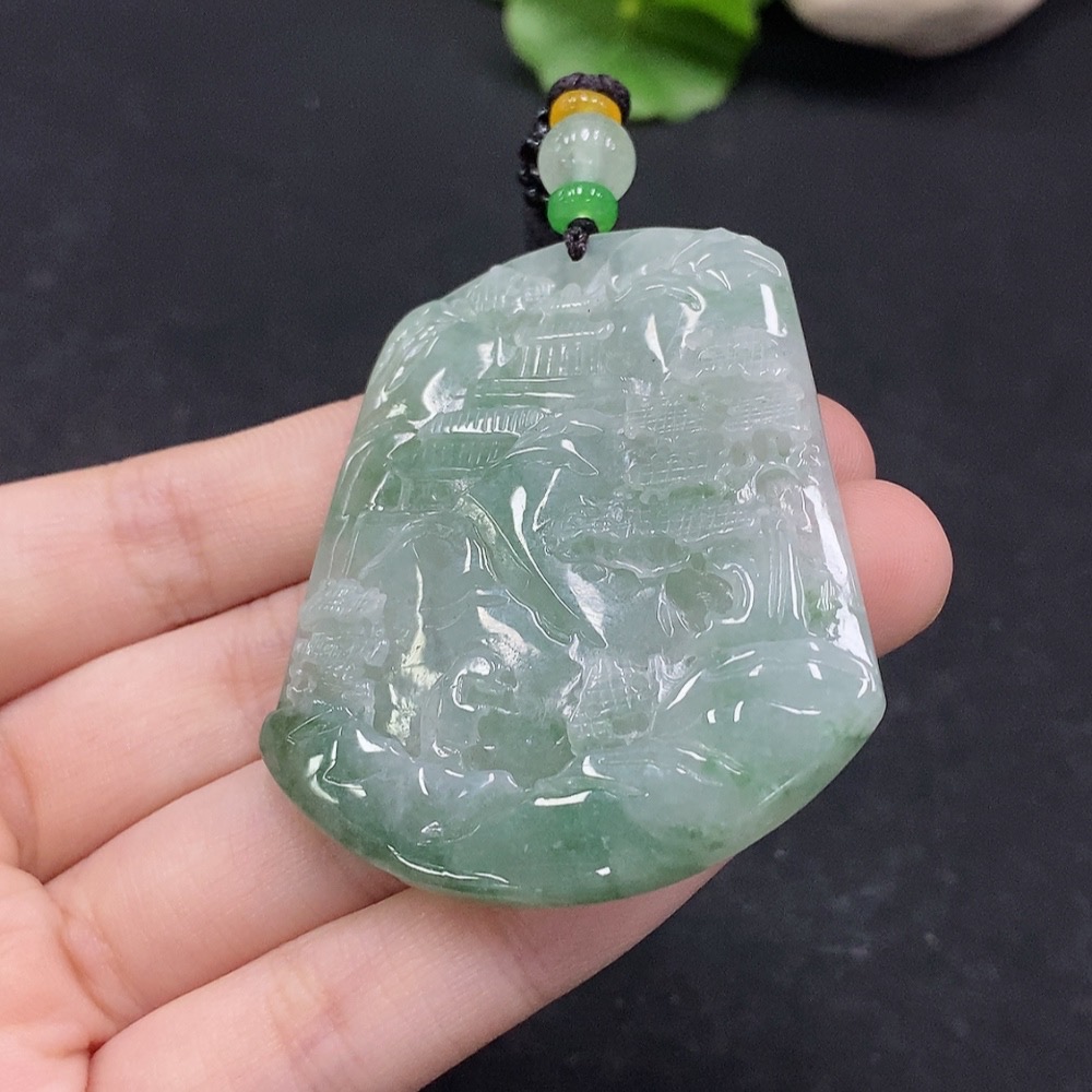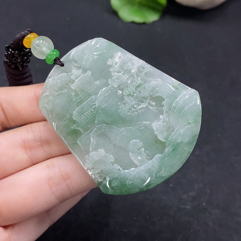 Jadeite Landscape Pendant Total Weight Approx. 34.12g