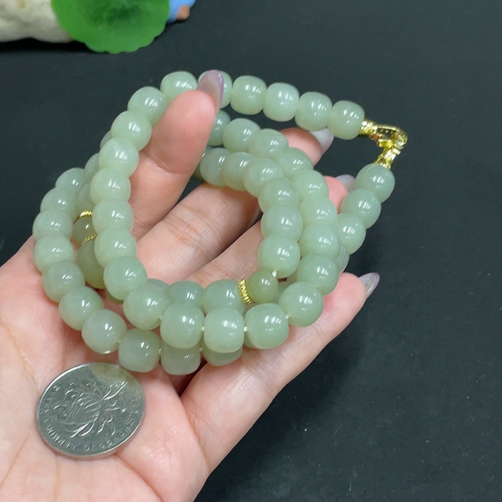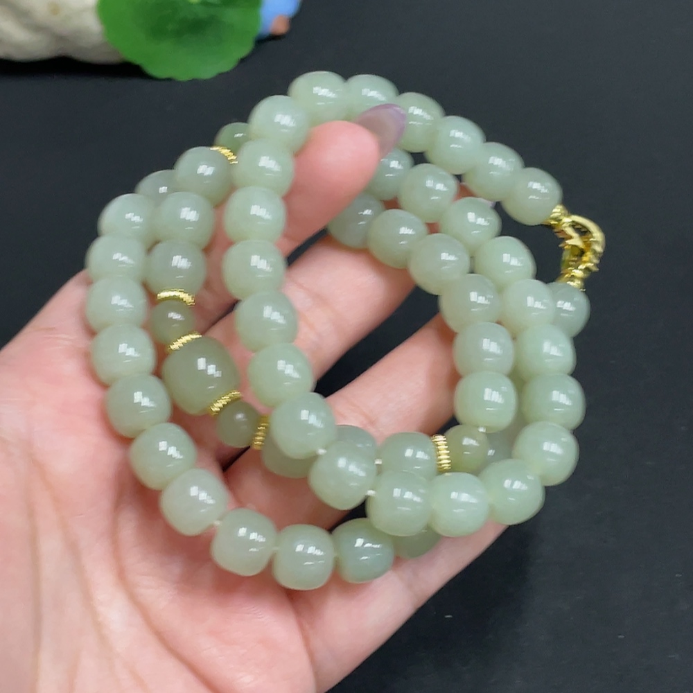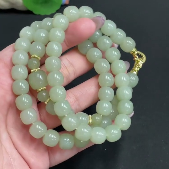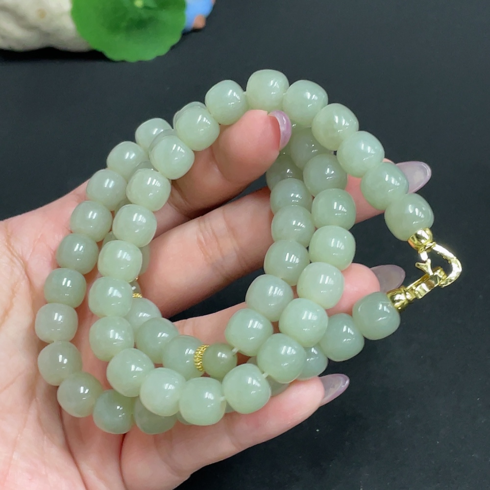Hetian Jade Bead Necklace, Approx. 9.8mm, Total Weight Approx. 106.7g, Non-Gold