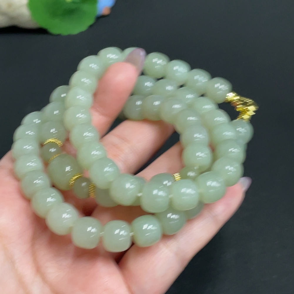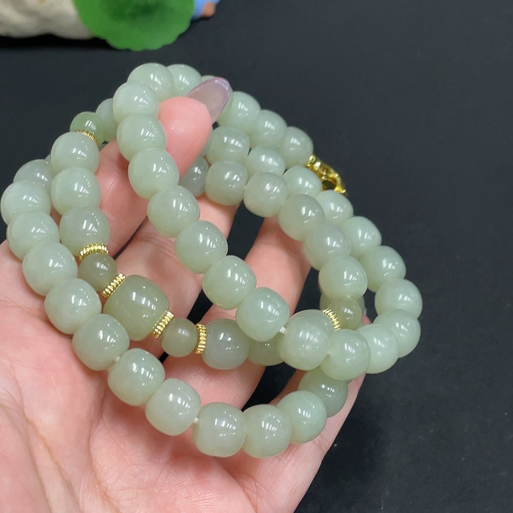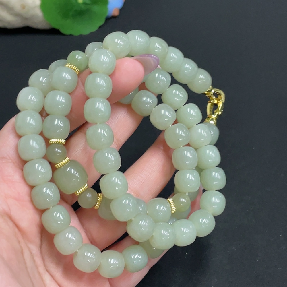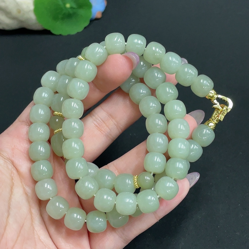 Hetian Jade Bead Necklace, Approx. 9.8mm, Total Weight Approx. 106.7g, Non-Gold