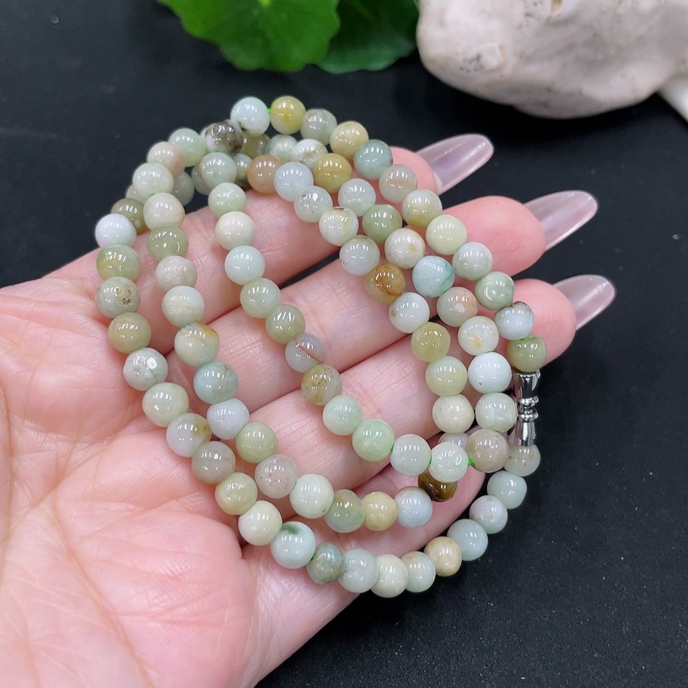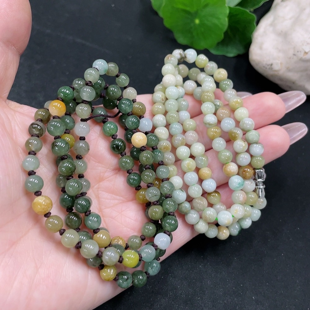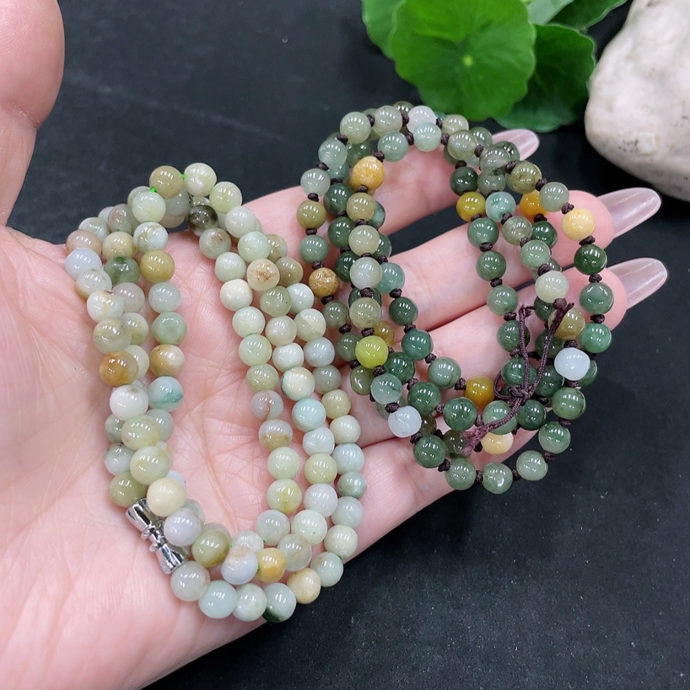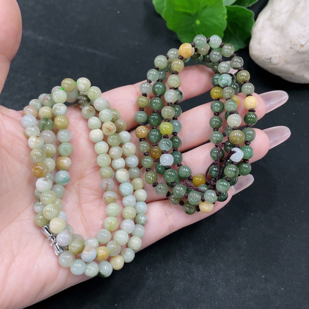 Jadeite Beads Sell as a Lot (Non-gold Inlaid) (Yellow Beads Non-A)