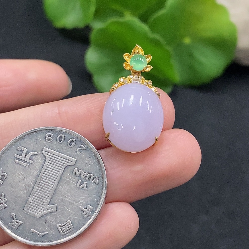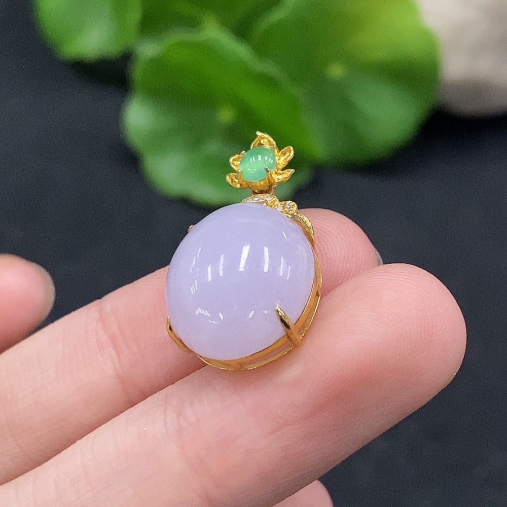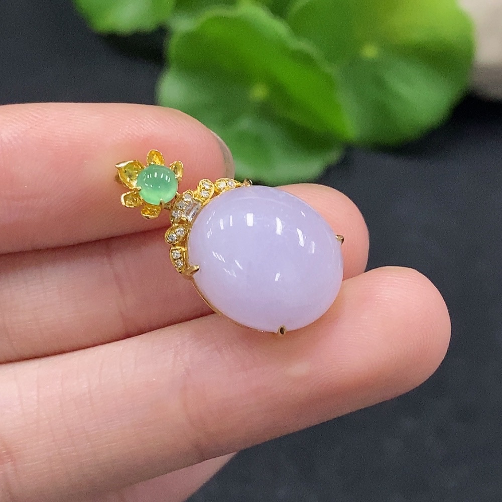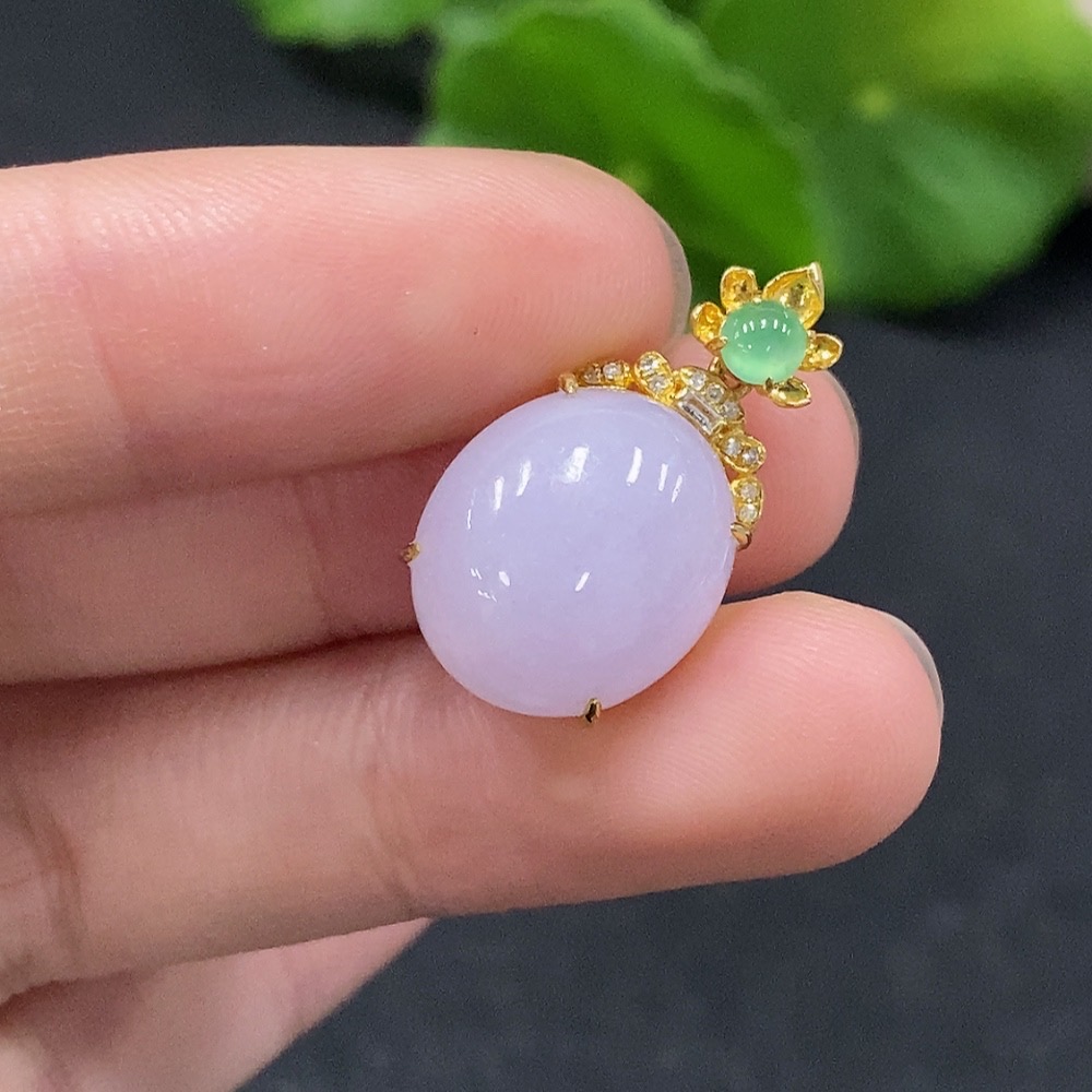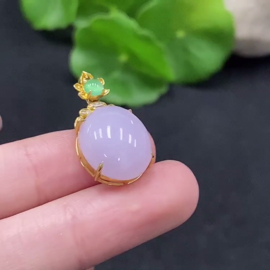 Jadeite cabochon pendant with 18K gold and diamond accents (only smallest accent stones) Total weight approx. 3.52g