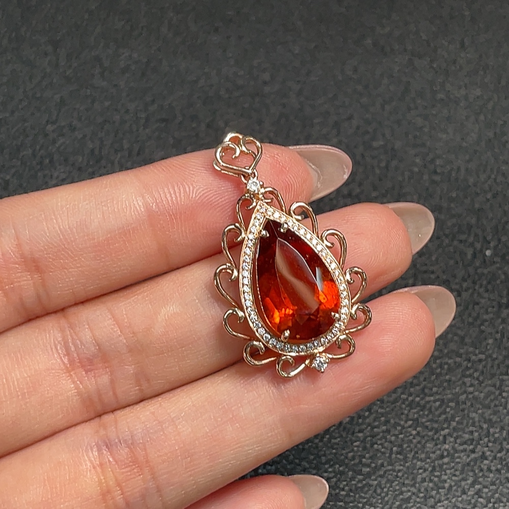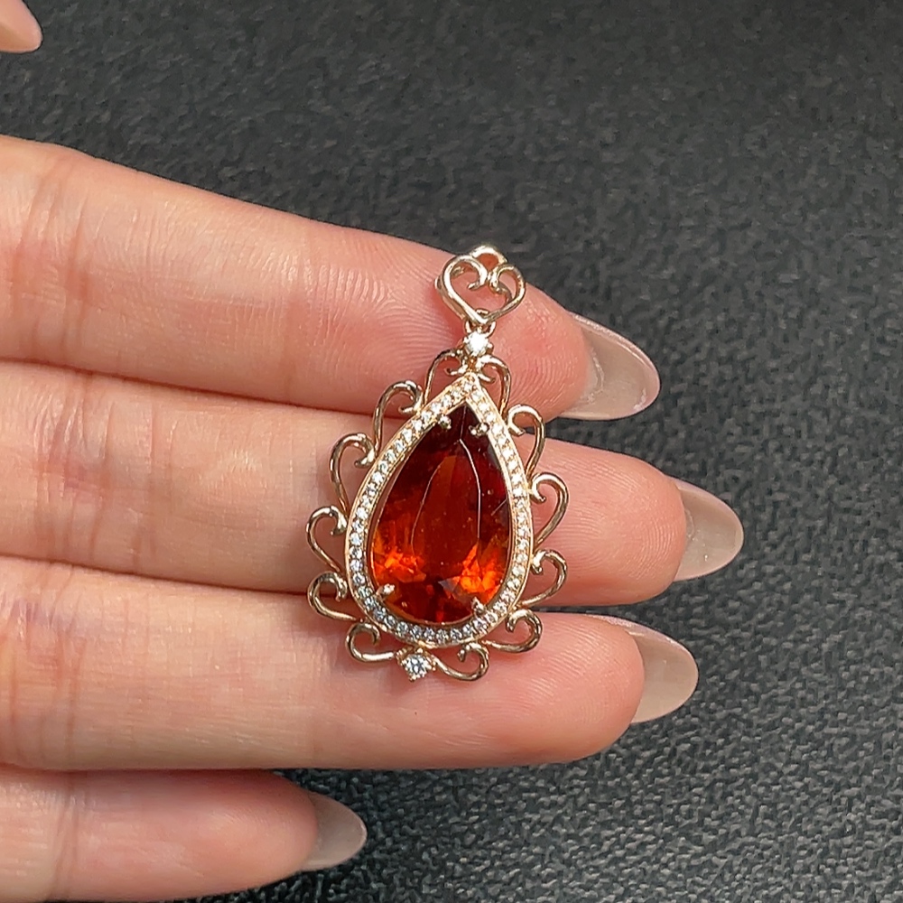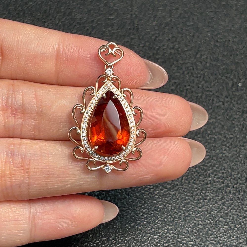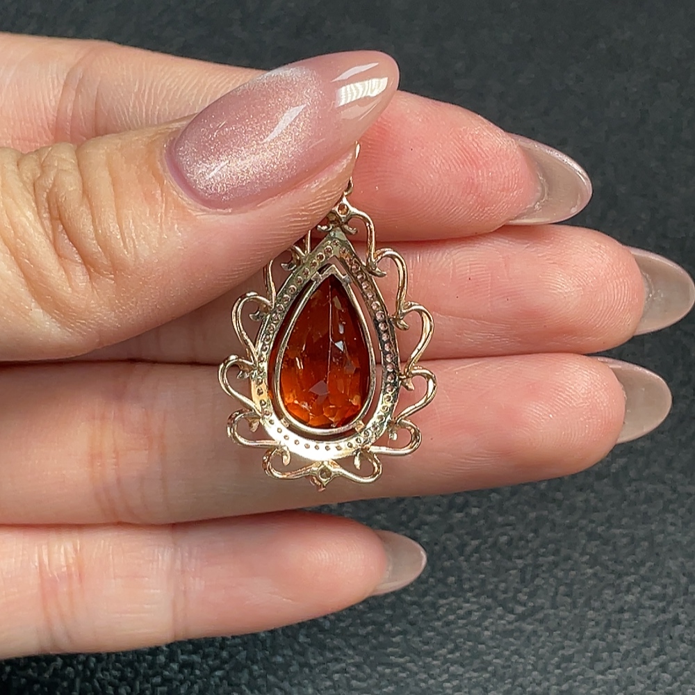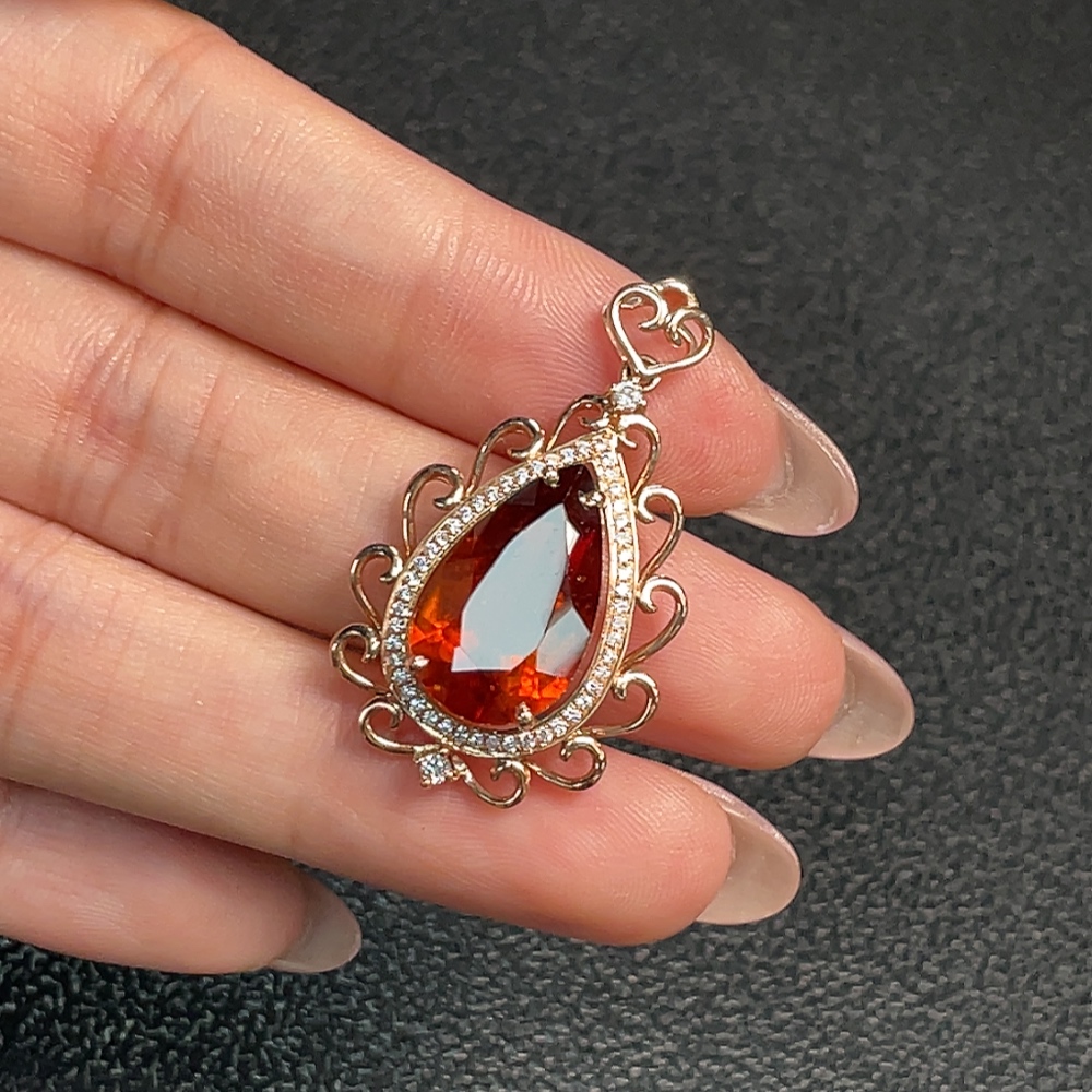 Garnet Pendant Unmarked Surface Gold Content 57% Non-Diamond Total Weight Approx. 4.22g