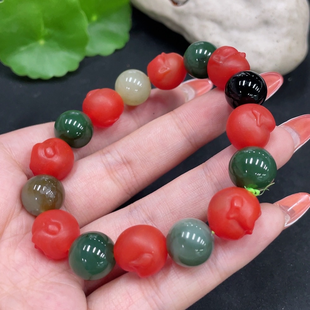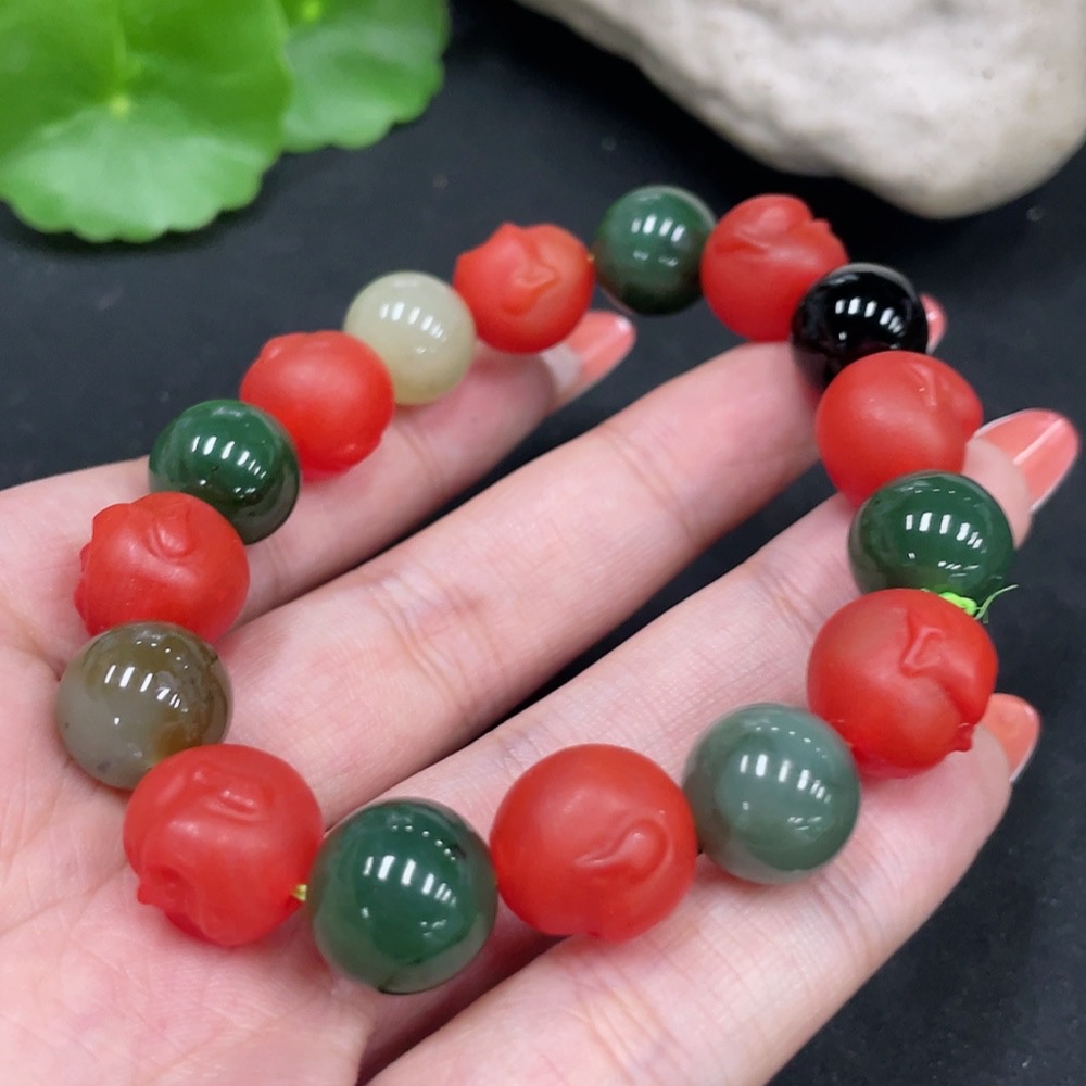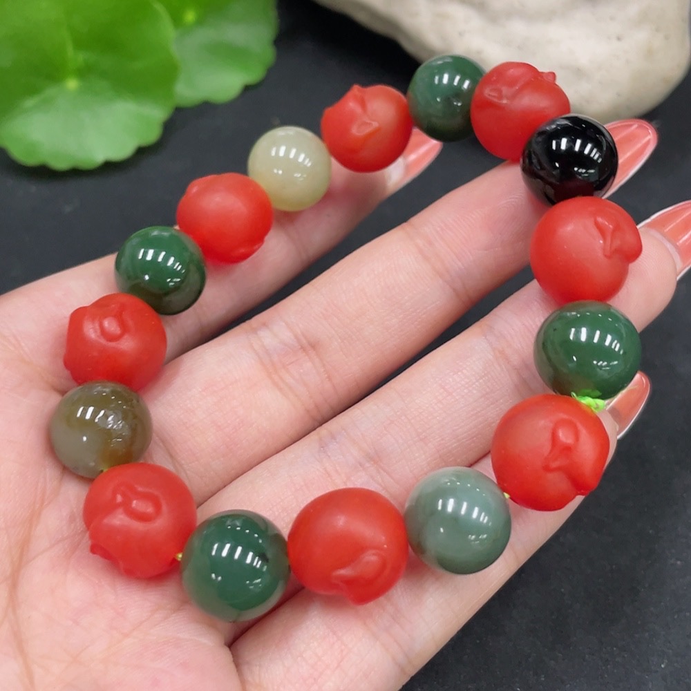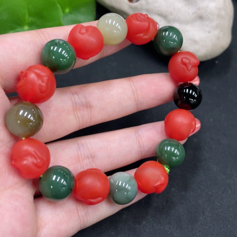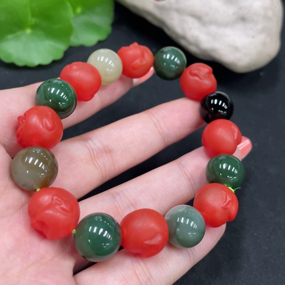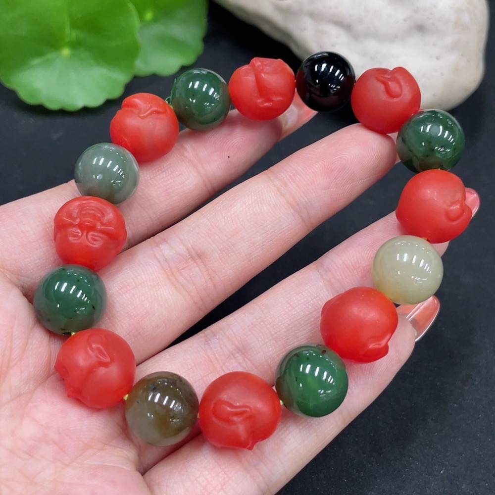 Hetian Jade Bracelet, Approx. 11.6mm, Non-Hetian Jade Beads (Red, Black), Total Weight Approx. 42.1g