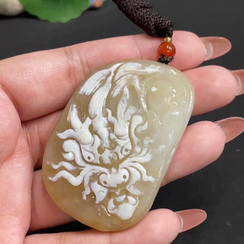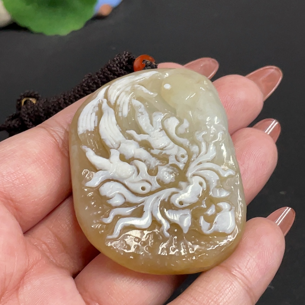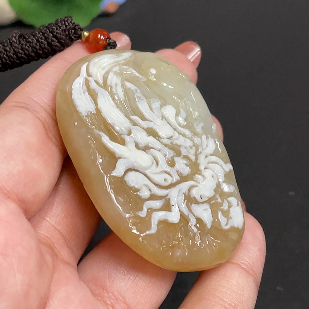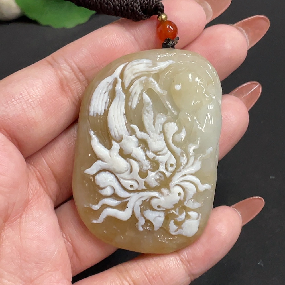 Hetian Jade Pendant Dragon Total Weight [with rope] 55.9g