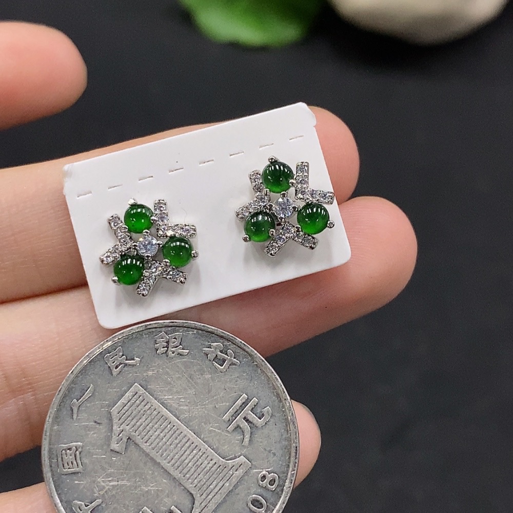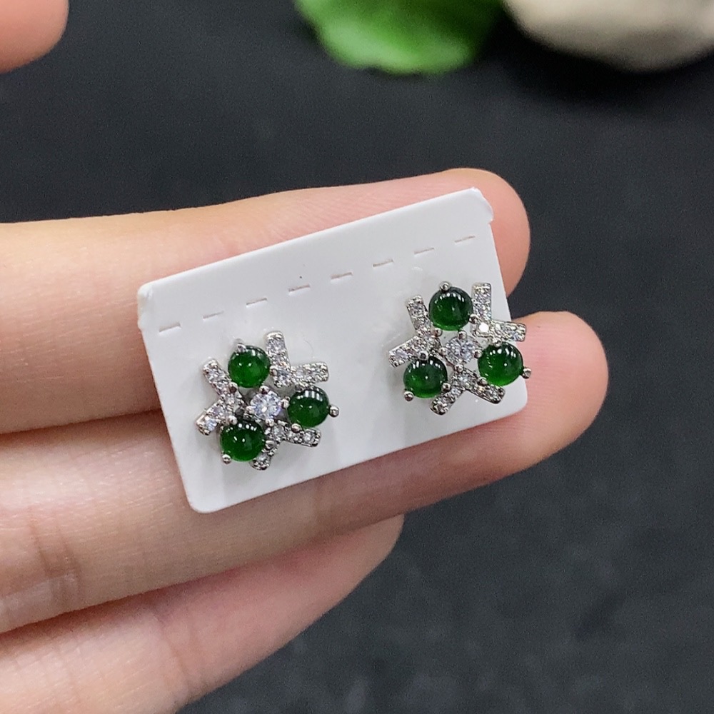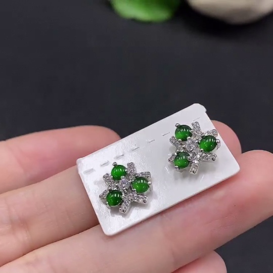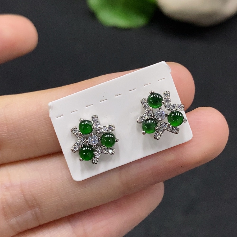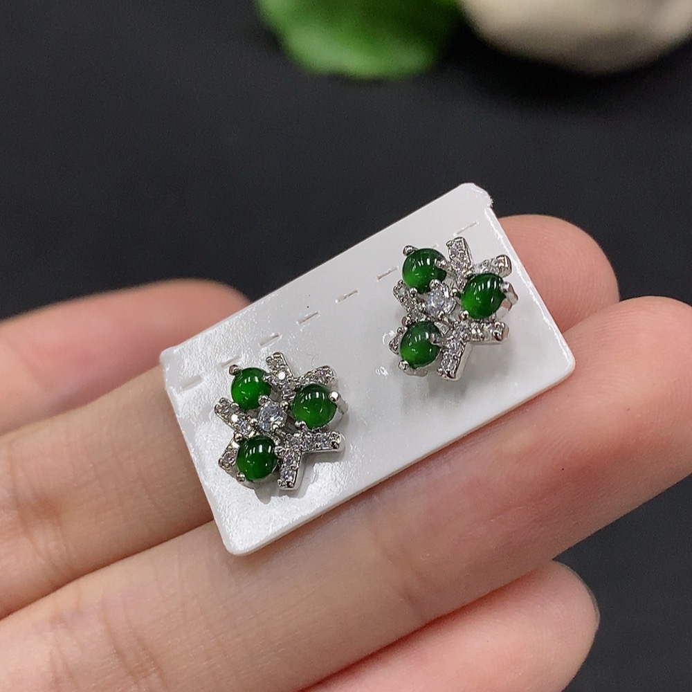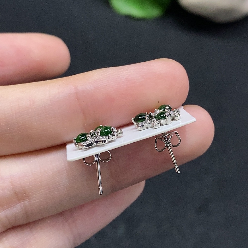 Jadeite cabochon earrings, non-gold setting, total weight approx. 1.6g