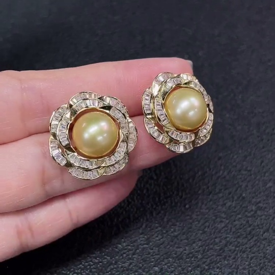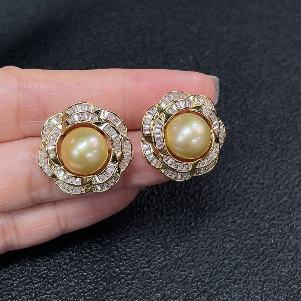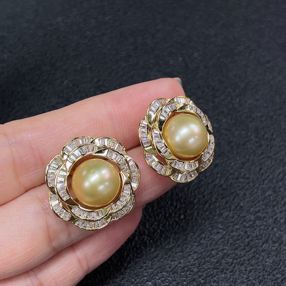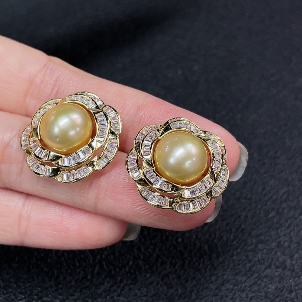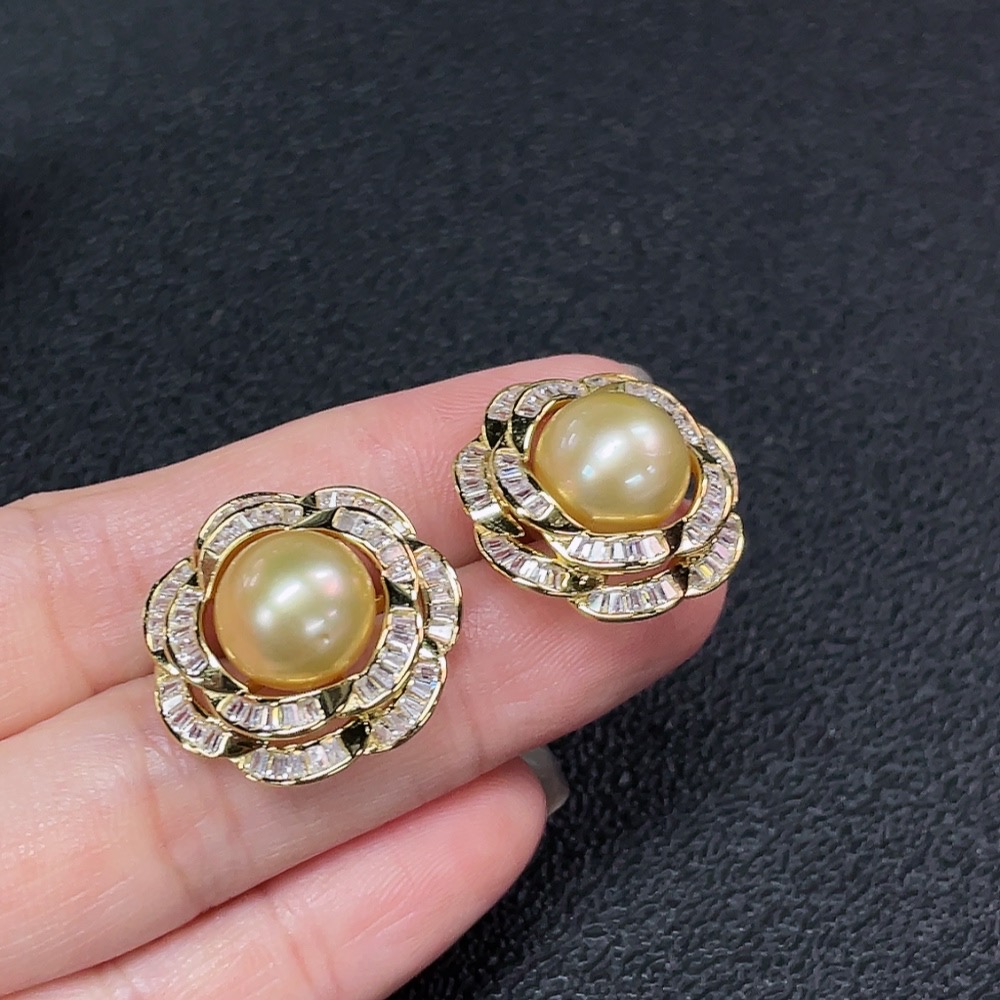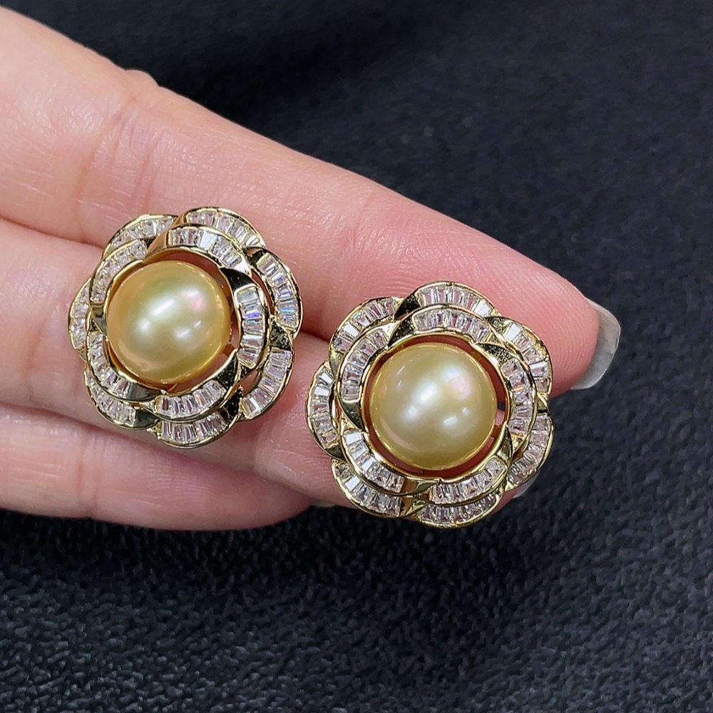 Seawater pearl earrings, color origin undetermined, non-gold, total weight approximately 7.95g, size about 9.9mm