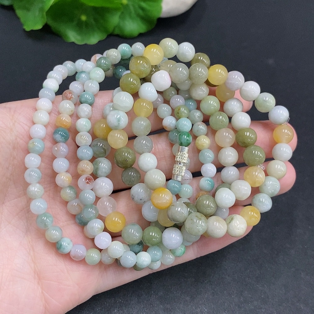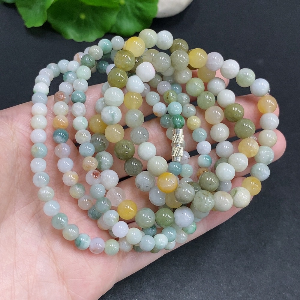 Jadeite Bead Necklace + Bracelet Sell as a Lot Yellow Beads Non-Jadeite