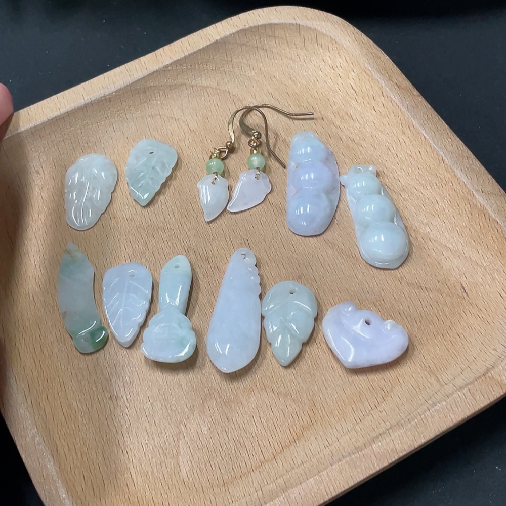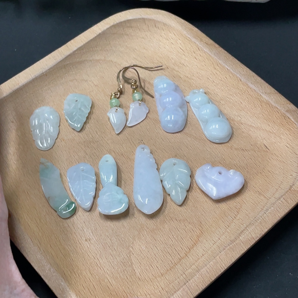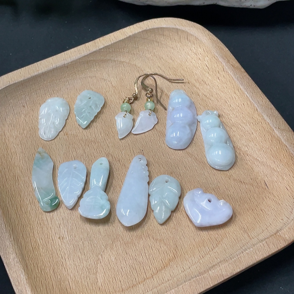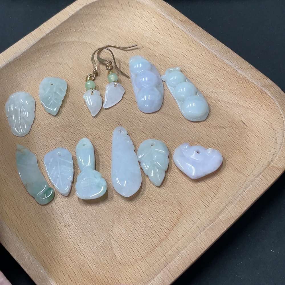 Jadeite Pendant + Earrings Leaf Lucky Bean Non-A Bead Non-Gold Inlaid