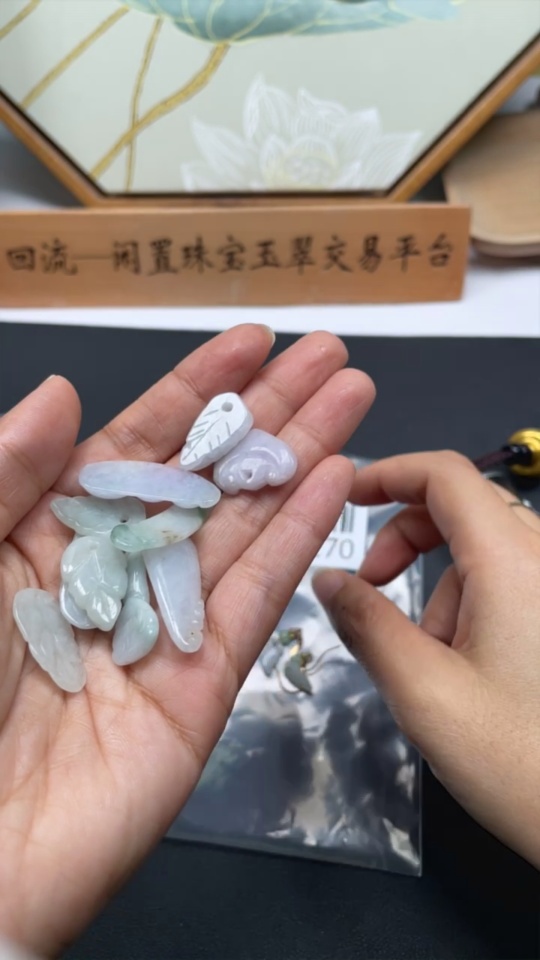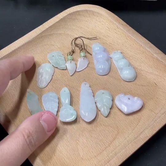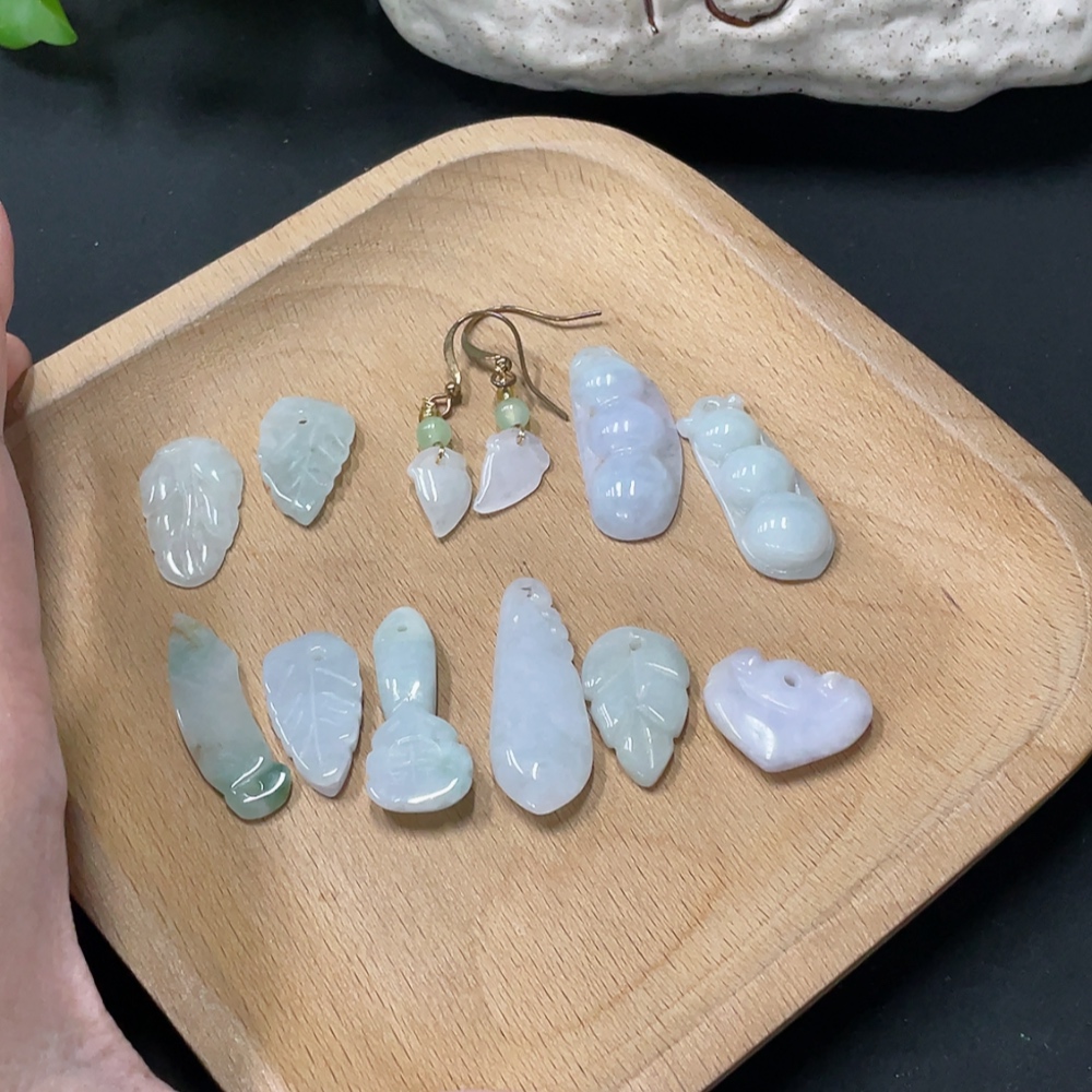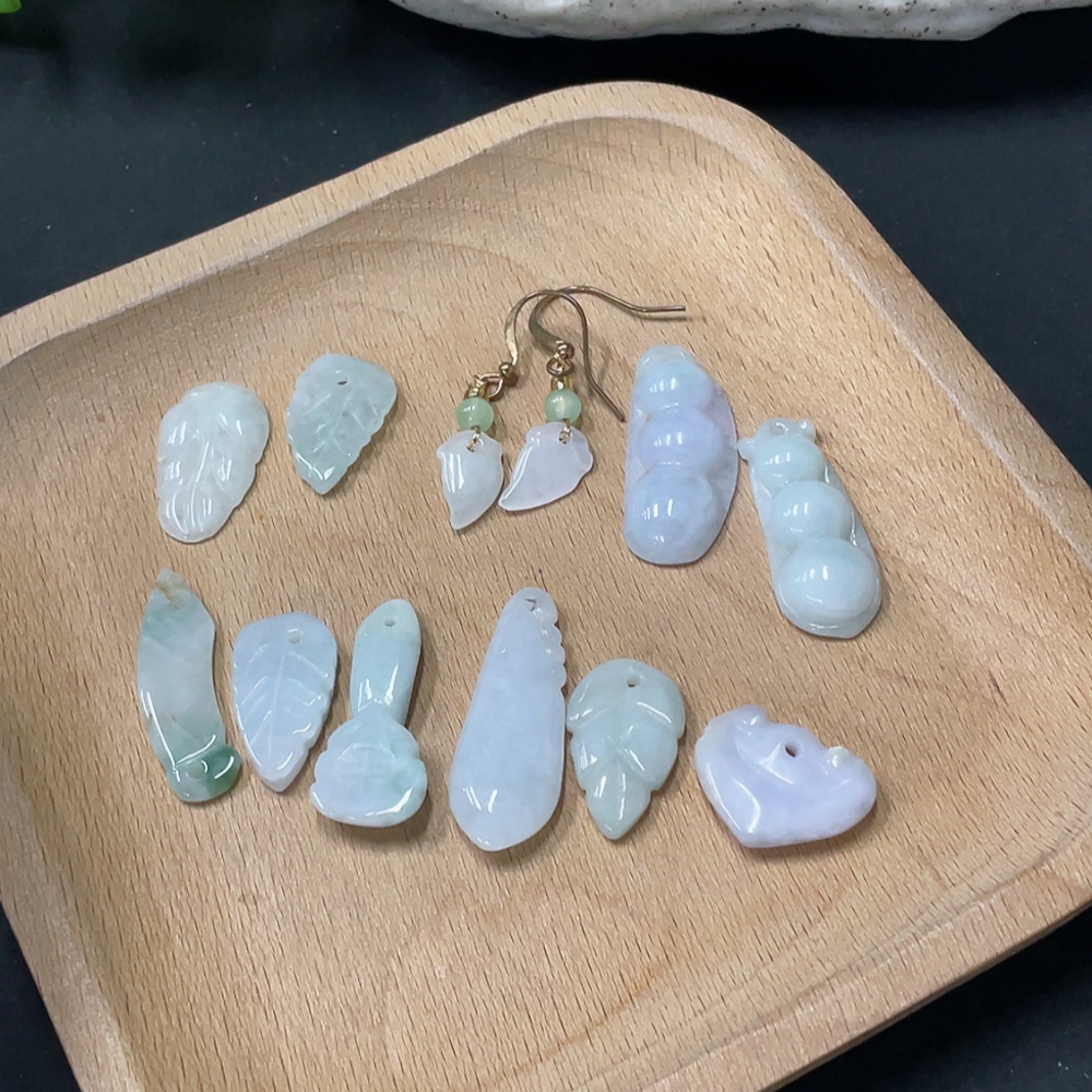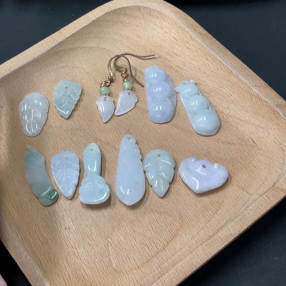 Jadeite Pendant + Earrings Leaf Lucky Bean Non-A Bead Non-Gold Inlaid
