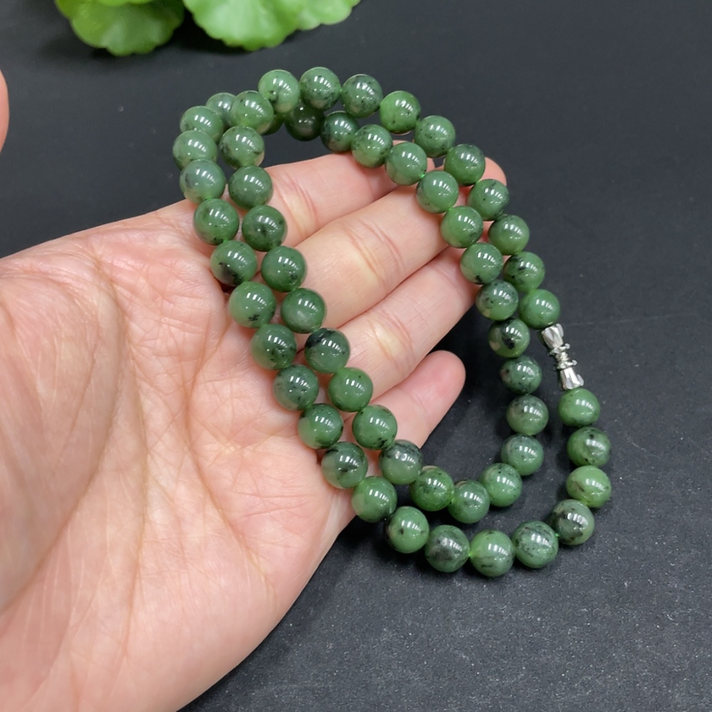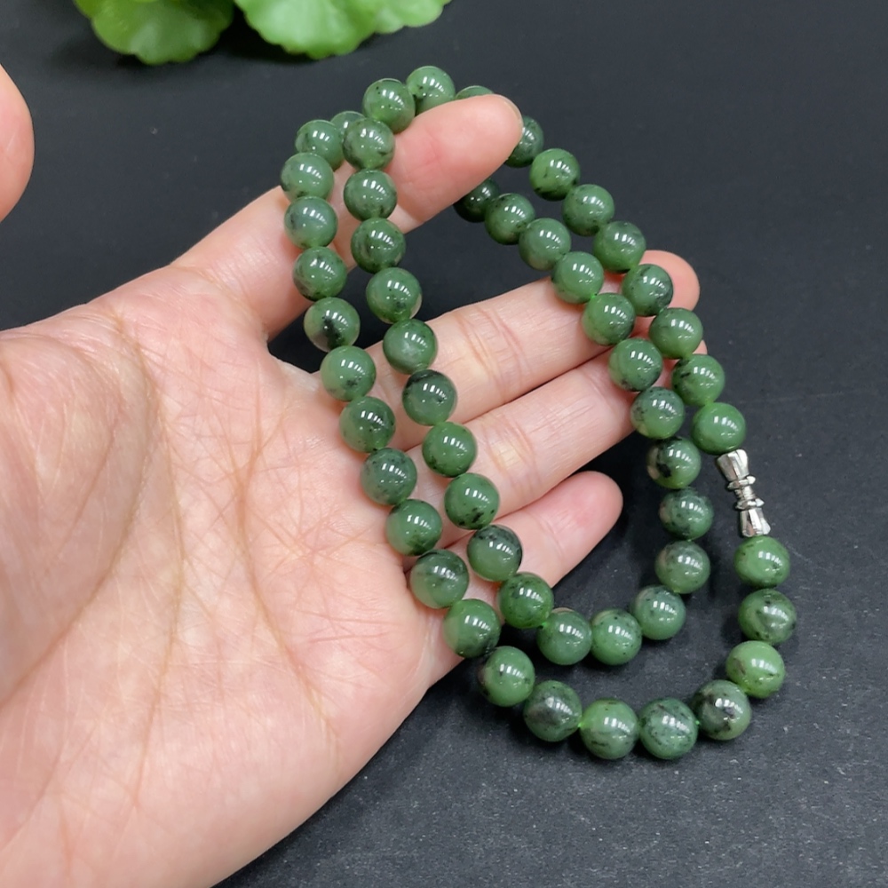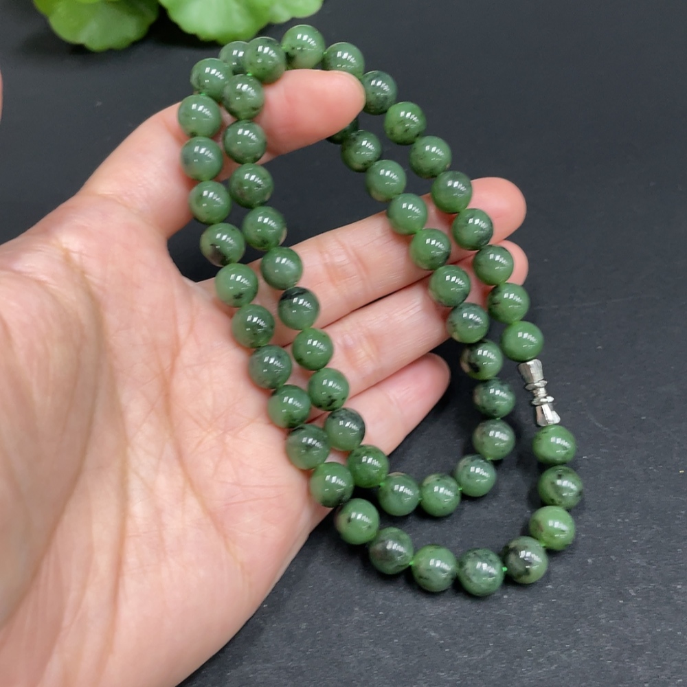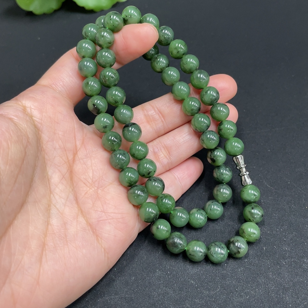 Hetian Jade Jasper Bead Necklace, approximately 7.8mm, total weight about 44.1g