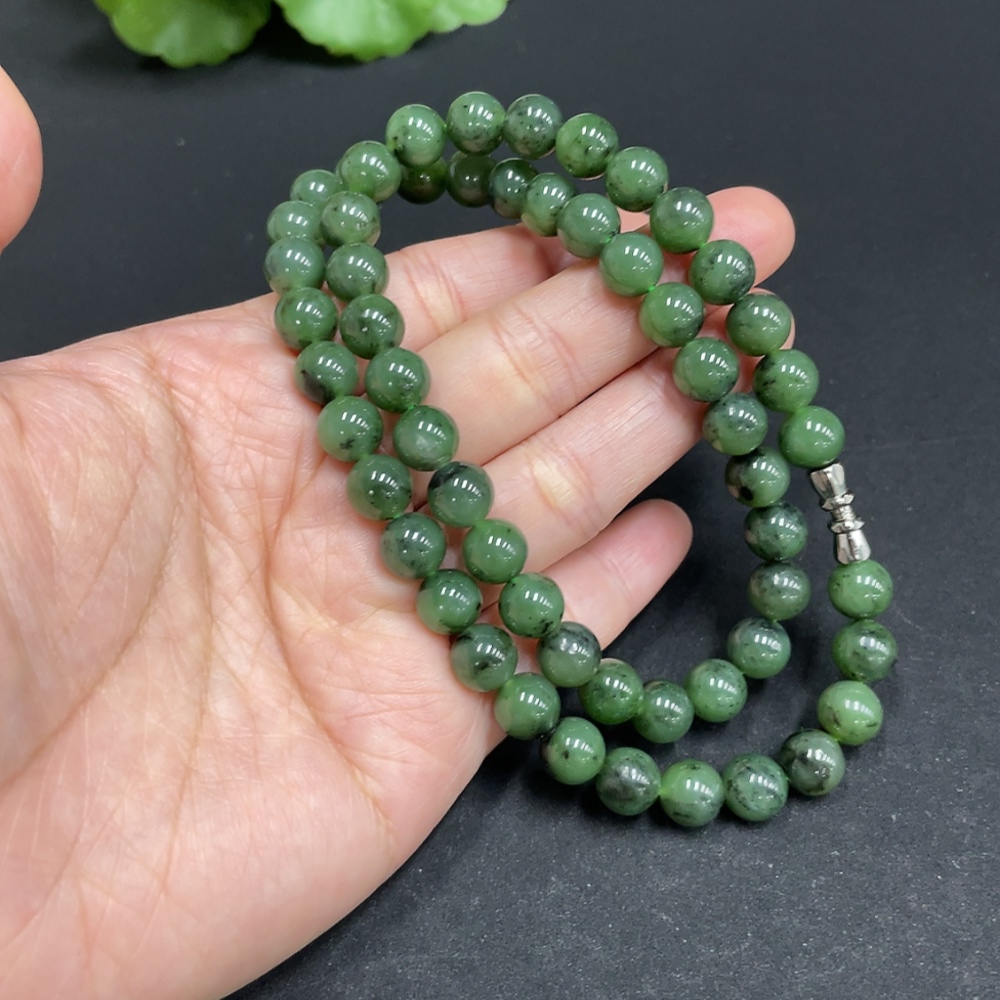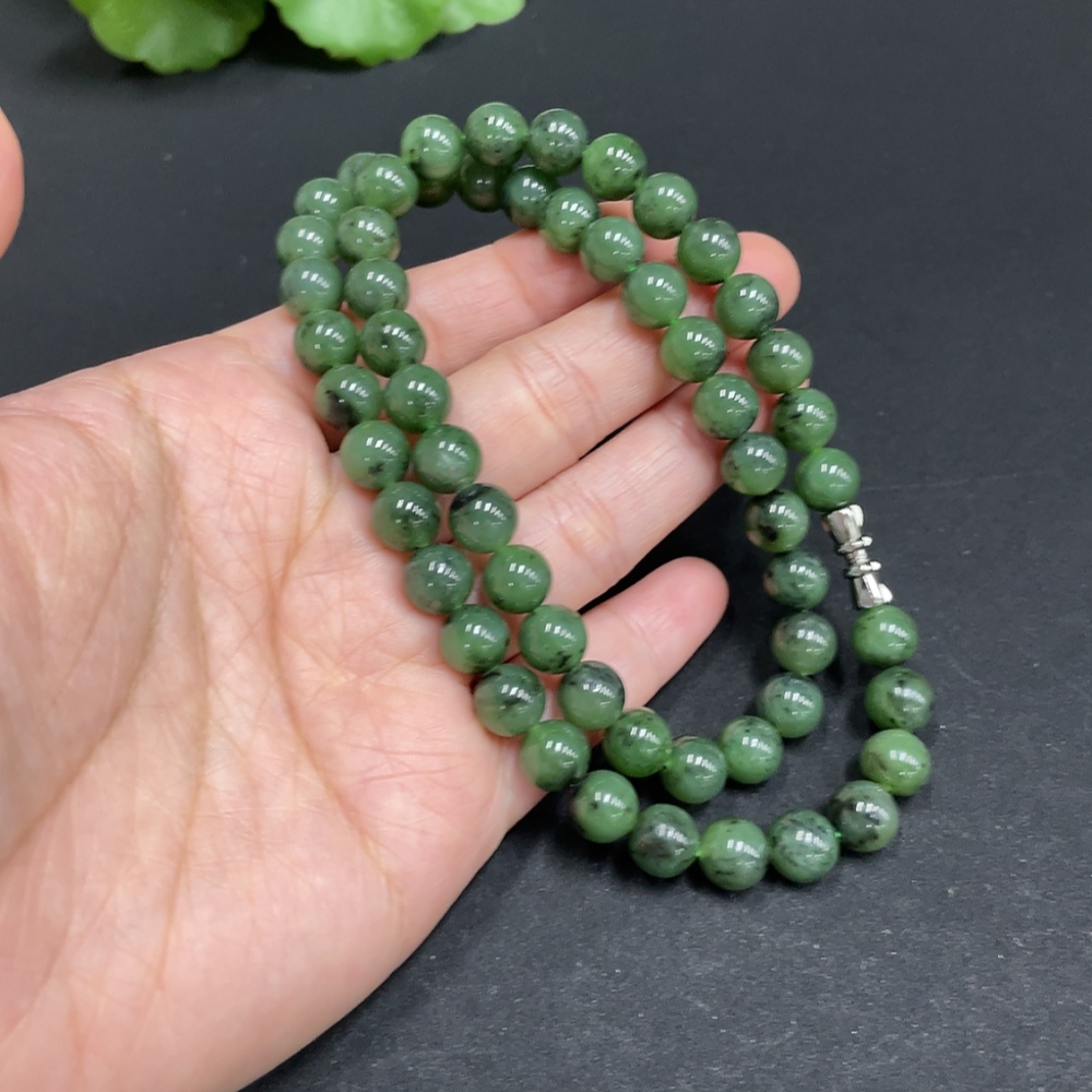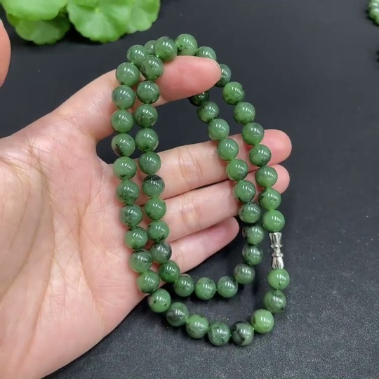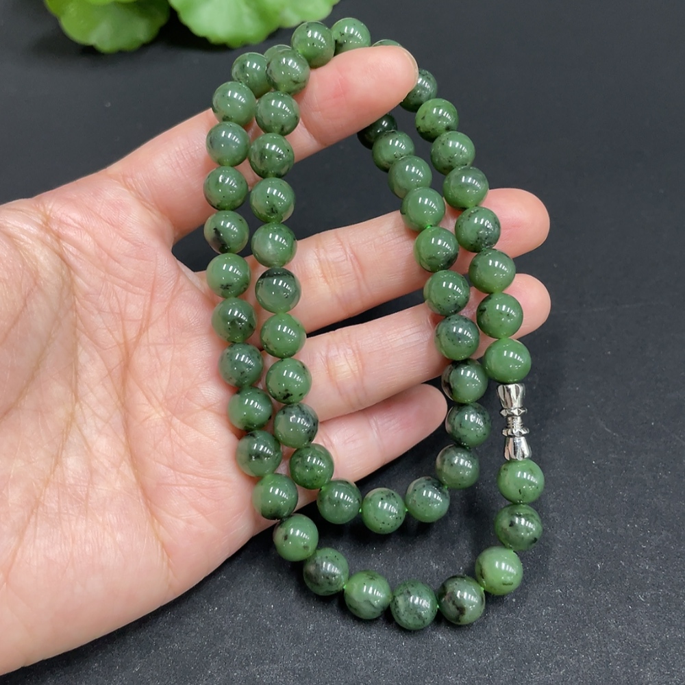 Hetian Jade Jasper Bead Necklace, approximately 7.8mm, total weight about 44.1g