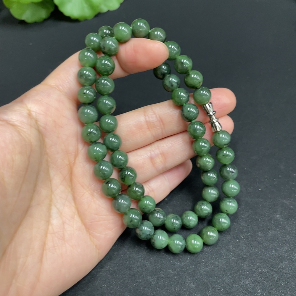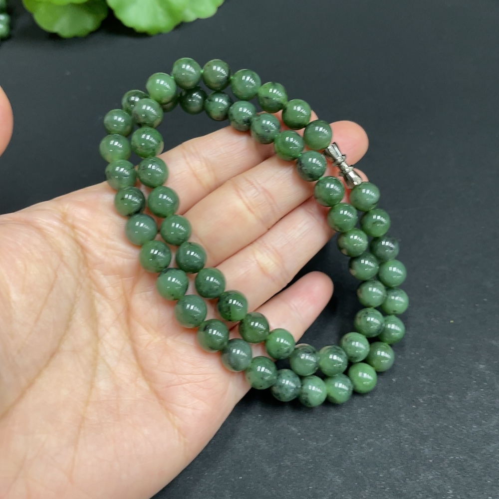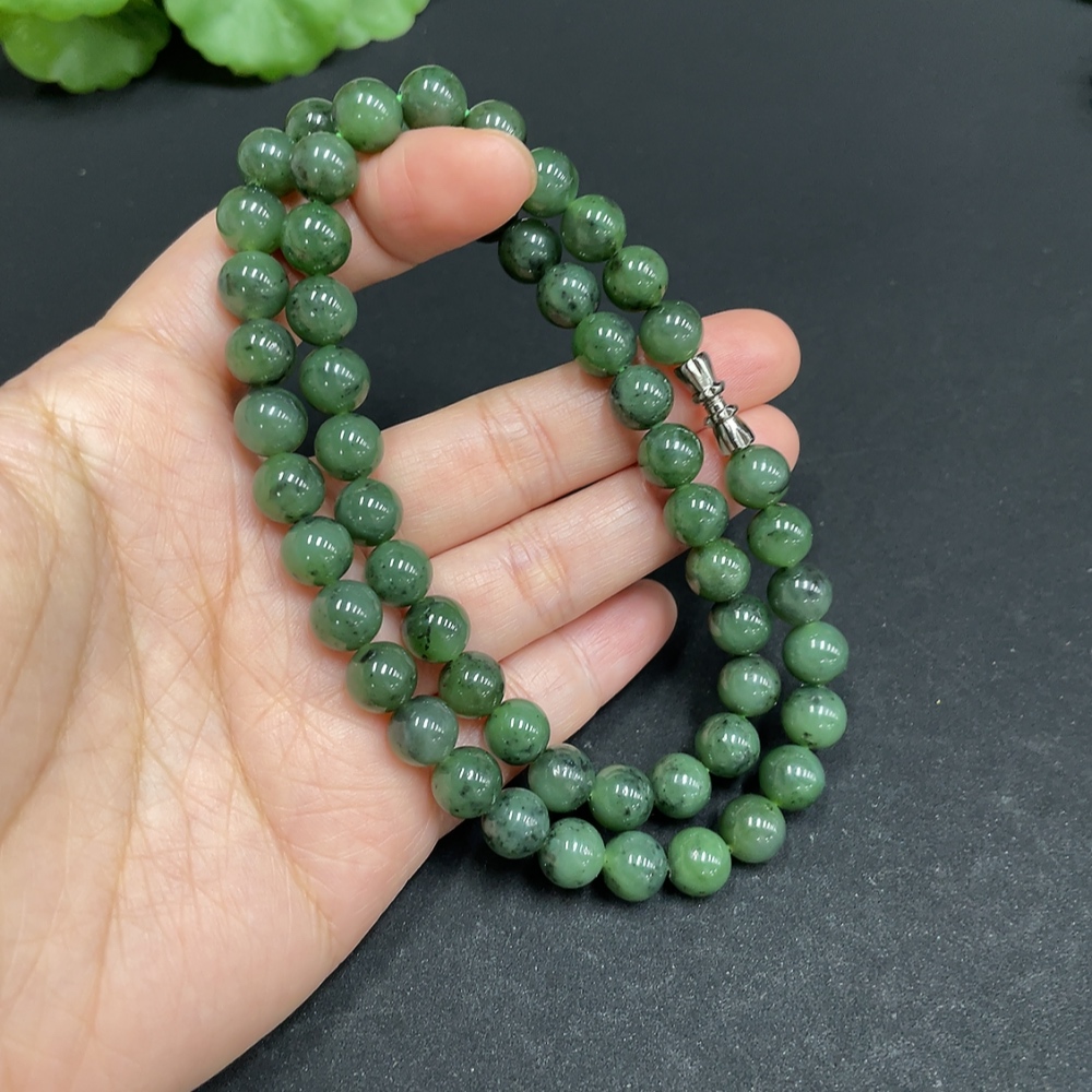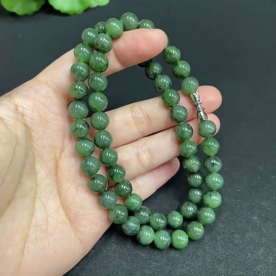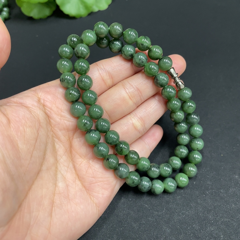 Trezaar - Hetian Jade Jasper Bead Necklace, approx. 7.8mm, total weight approx. 44.3g