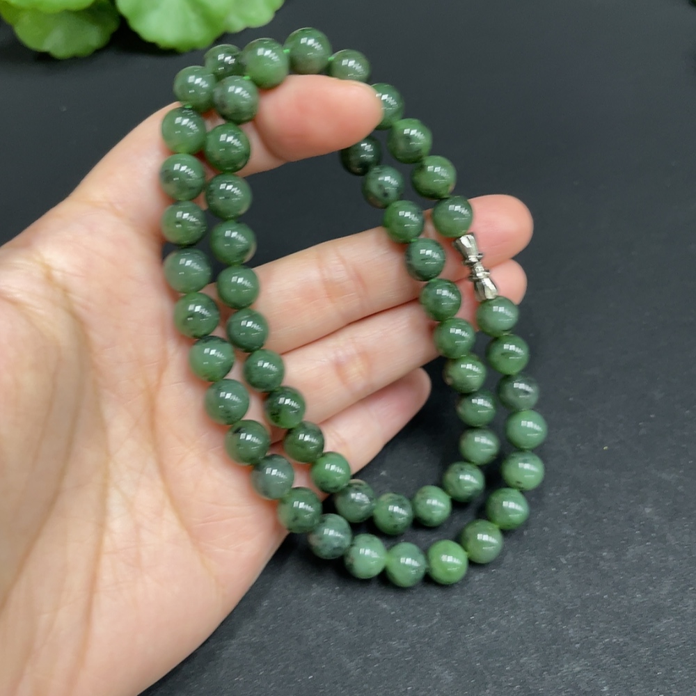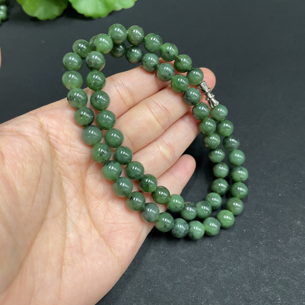 Hetian Jade Jasper Bead Necklace, approx. 7.8mm, total weight approx. 44.3g