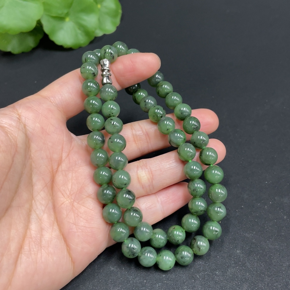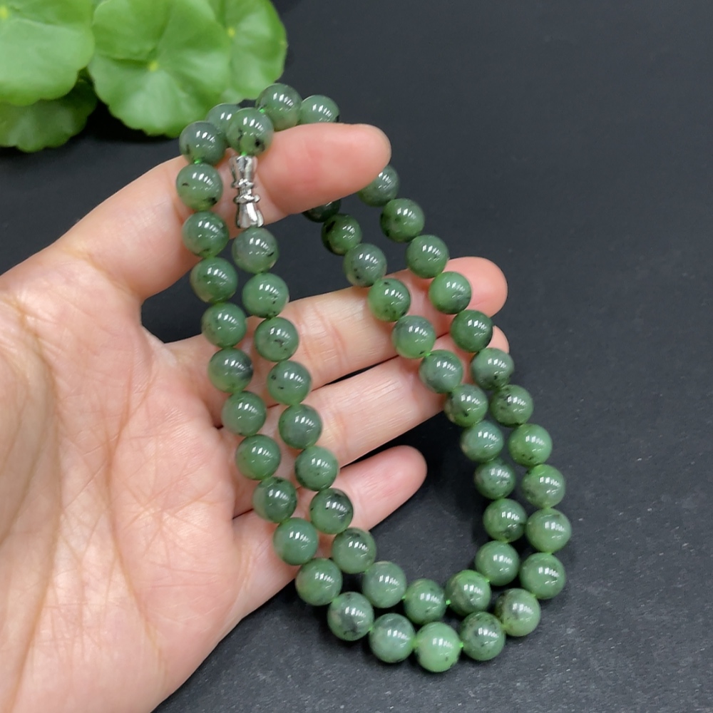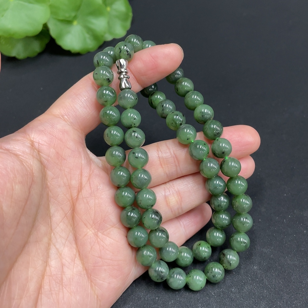 Hetian Jade Jasper Bead Necklace, approx. 7.8mm, total weight approx. 44.6g