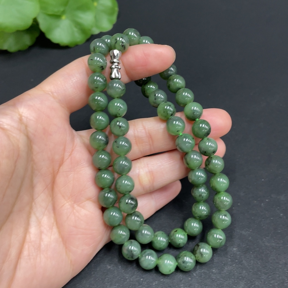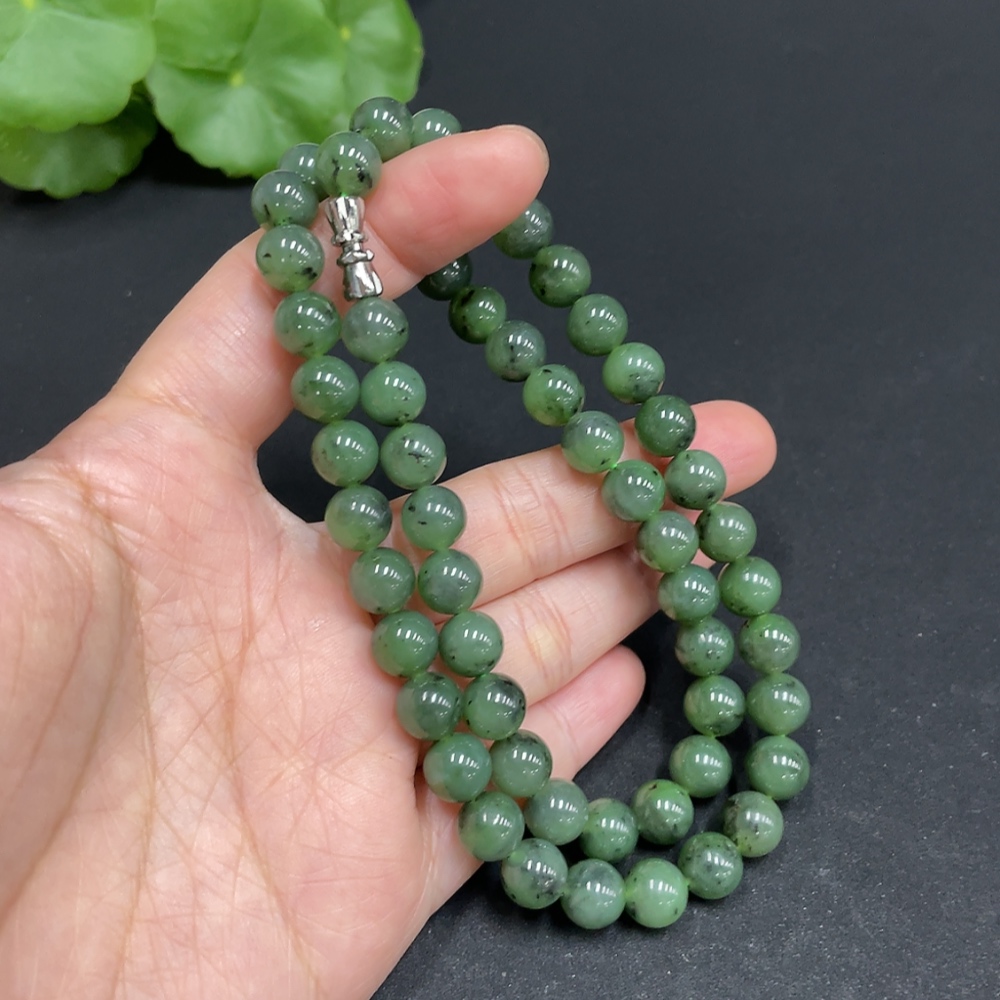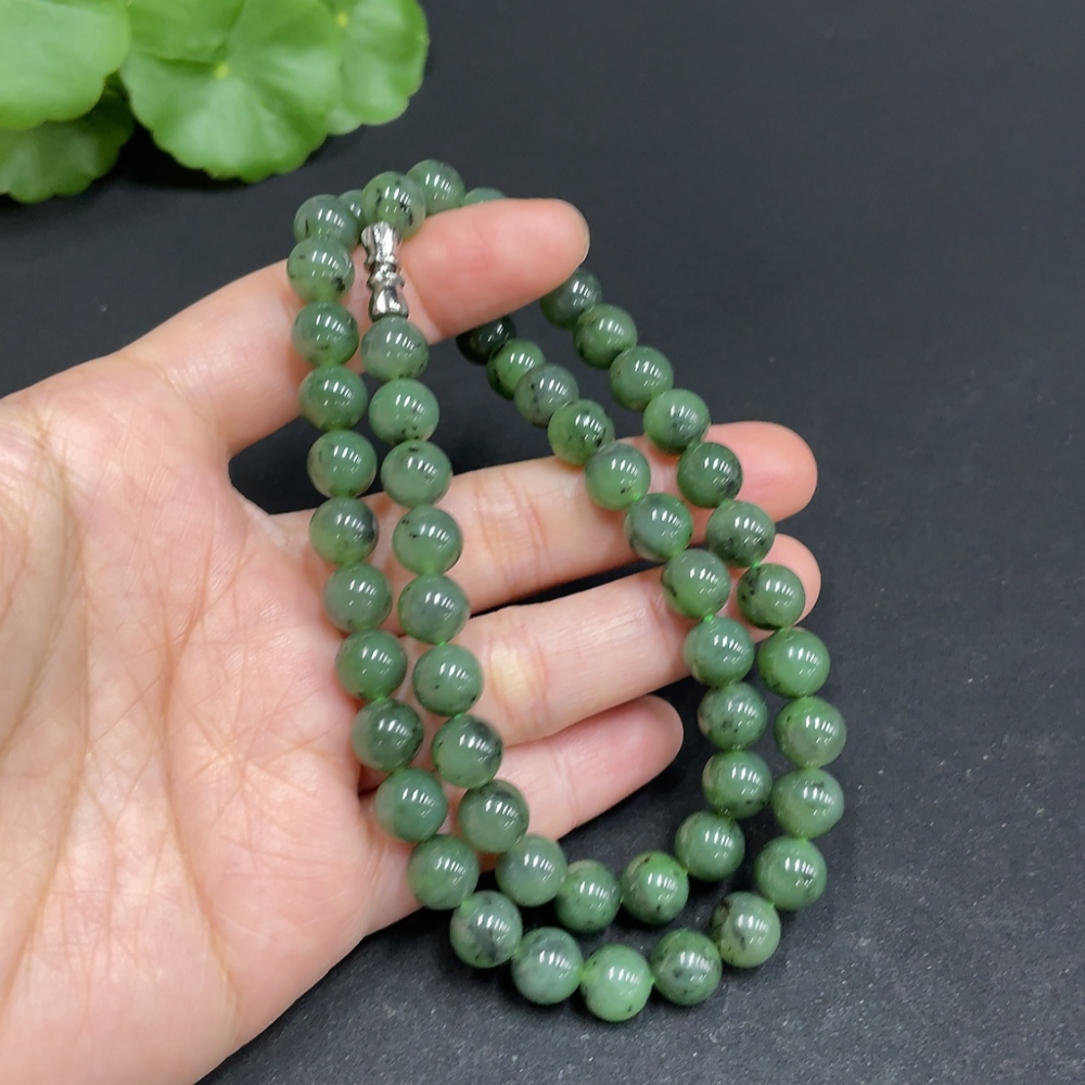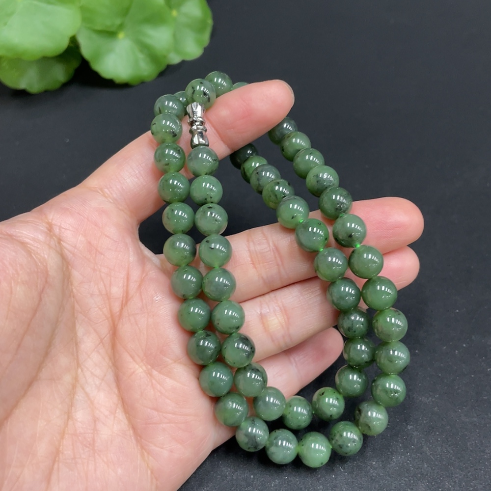 Hetian Jade Jasper Bead Necklace, approx. 7.8mm, total weight approx. 44.6g