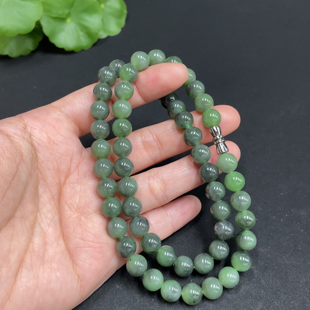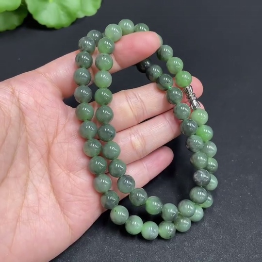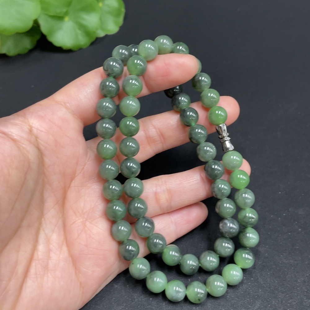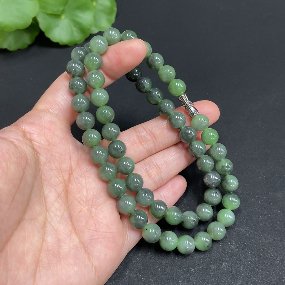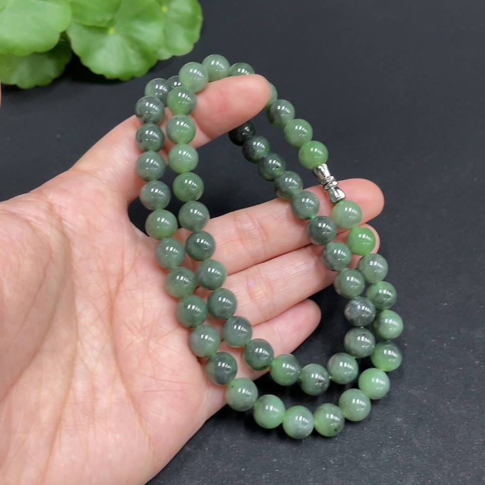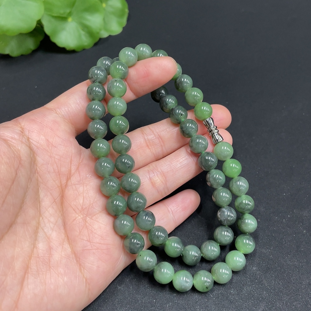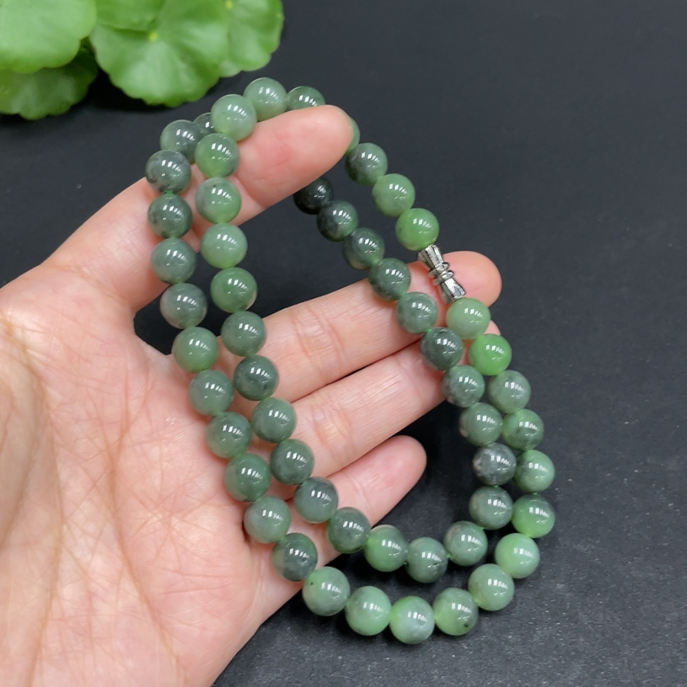 Hetian Jade Bead Necklace, approx. 7.8mm, total weight approx. 44.6g