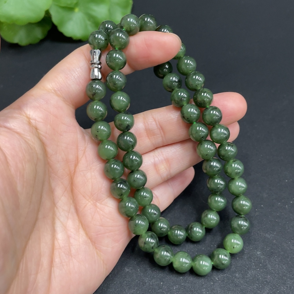 Hetian Jade Jasper Bead Necklace Approx. 7.7mm Total Weight Approx. 44g