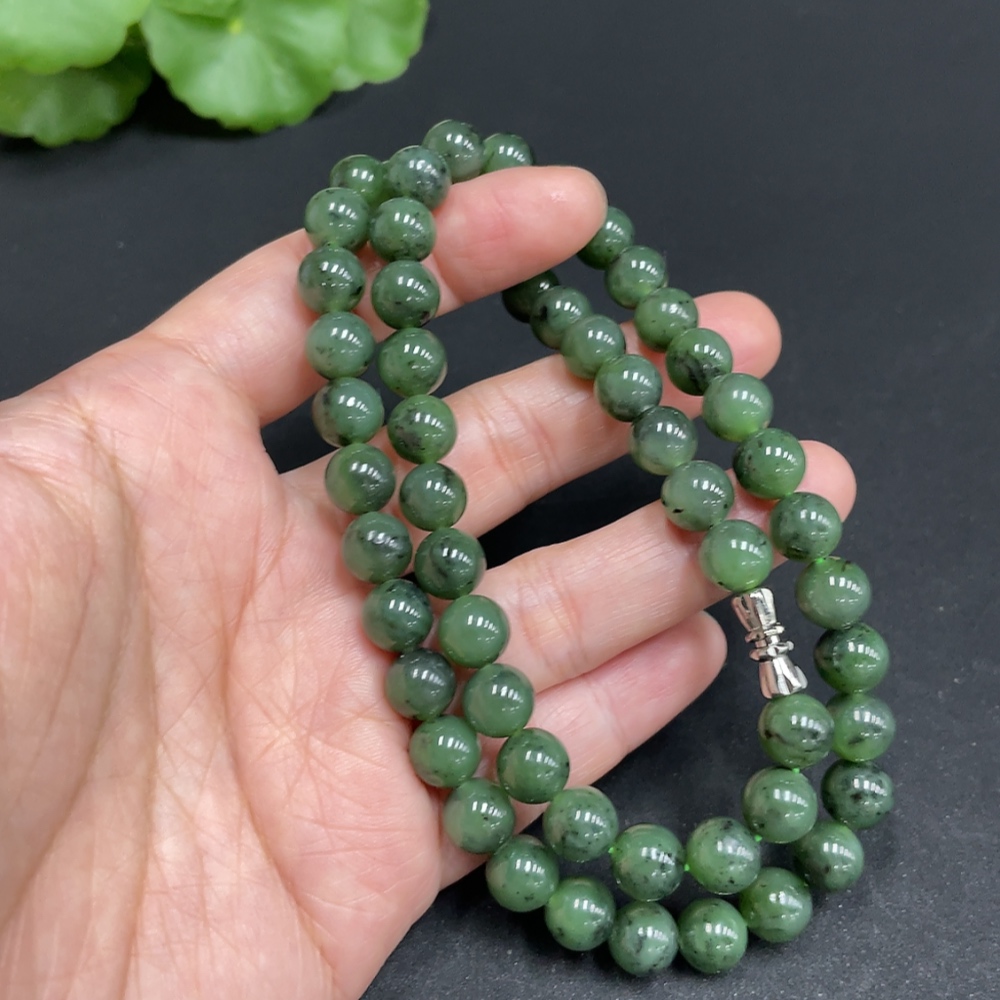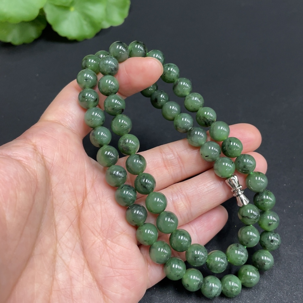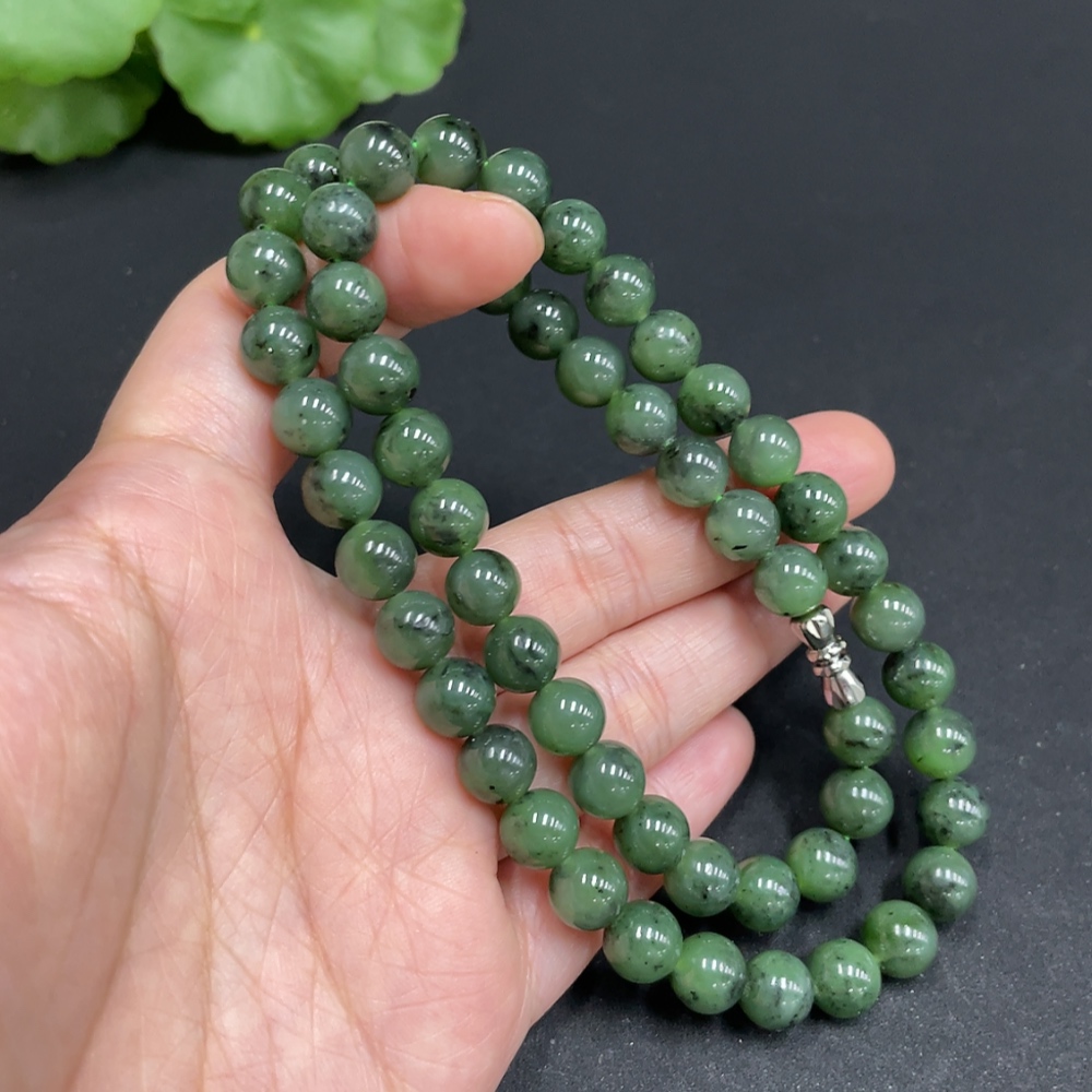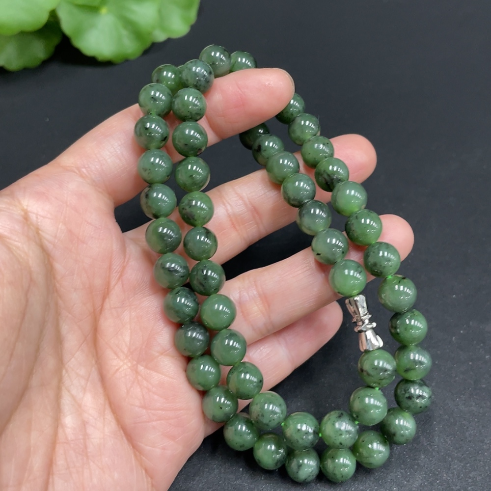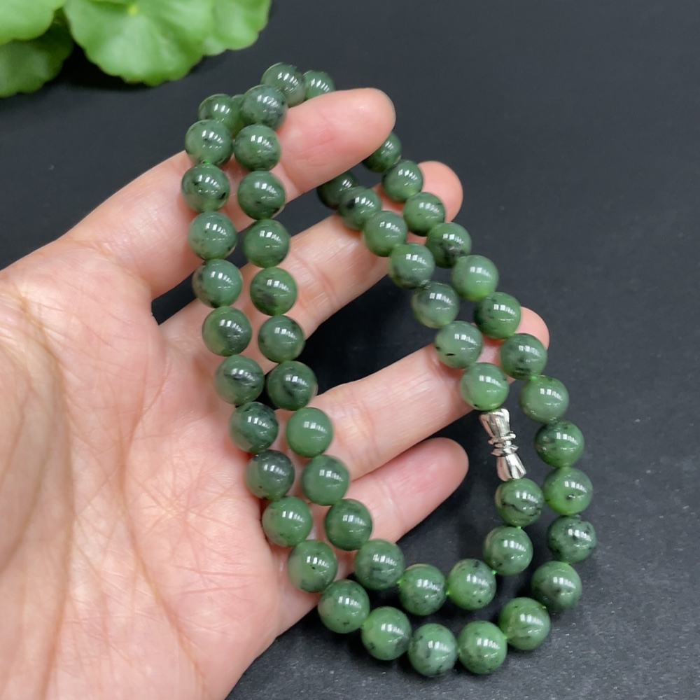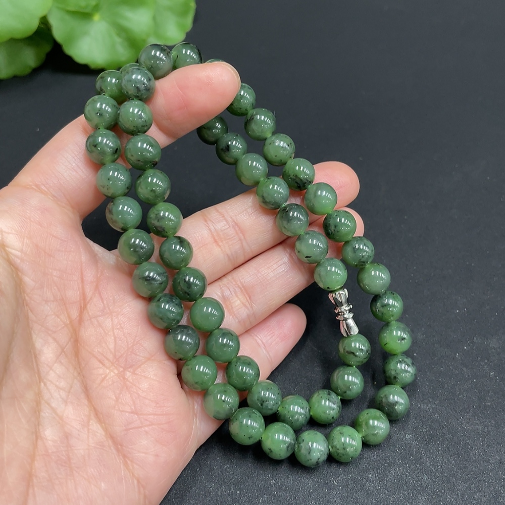 Hetian Jade Bead Necklace, Approximately 7.8mm, Total Weight About 44.2g
