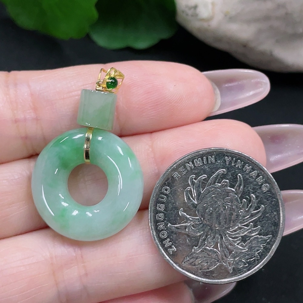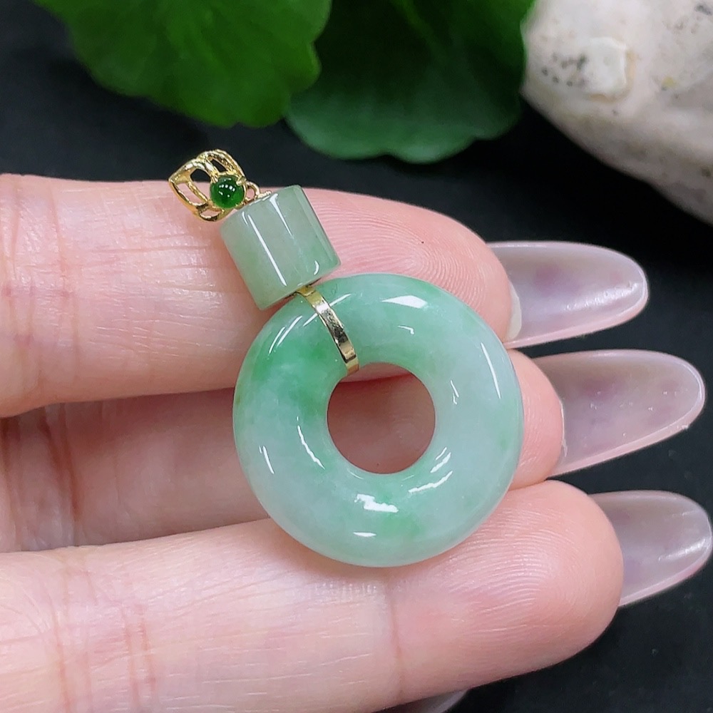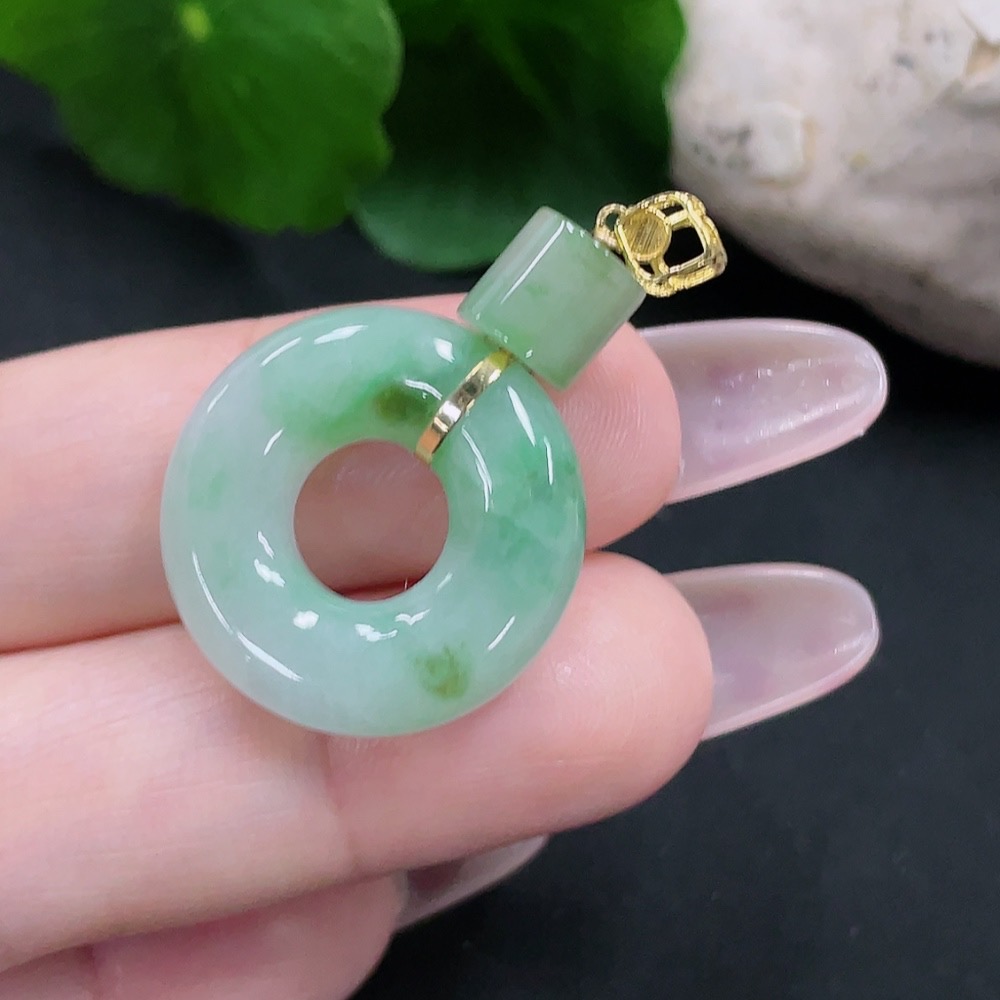 Jadeite Donut Pendant 18K Gold Total Weight Approx. 5.2g