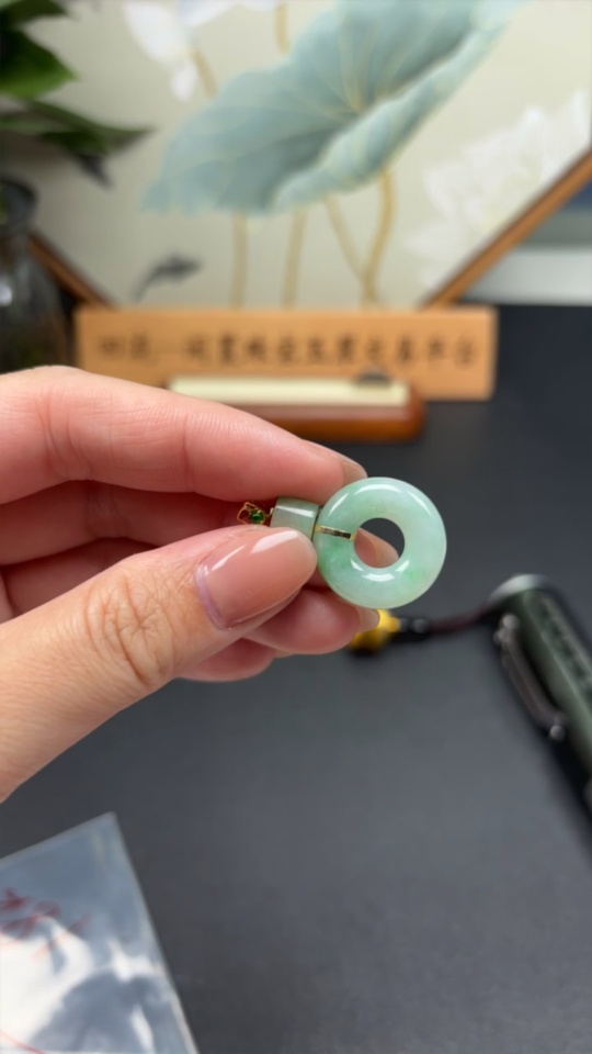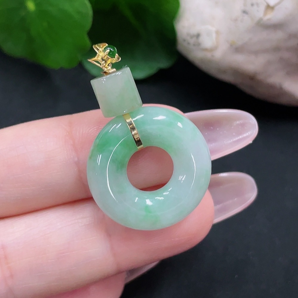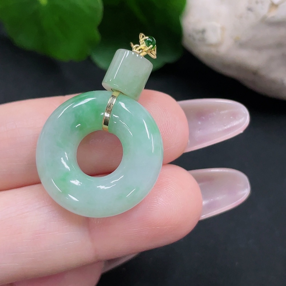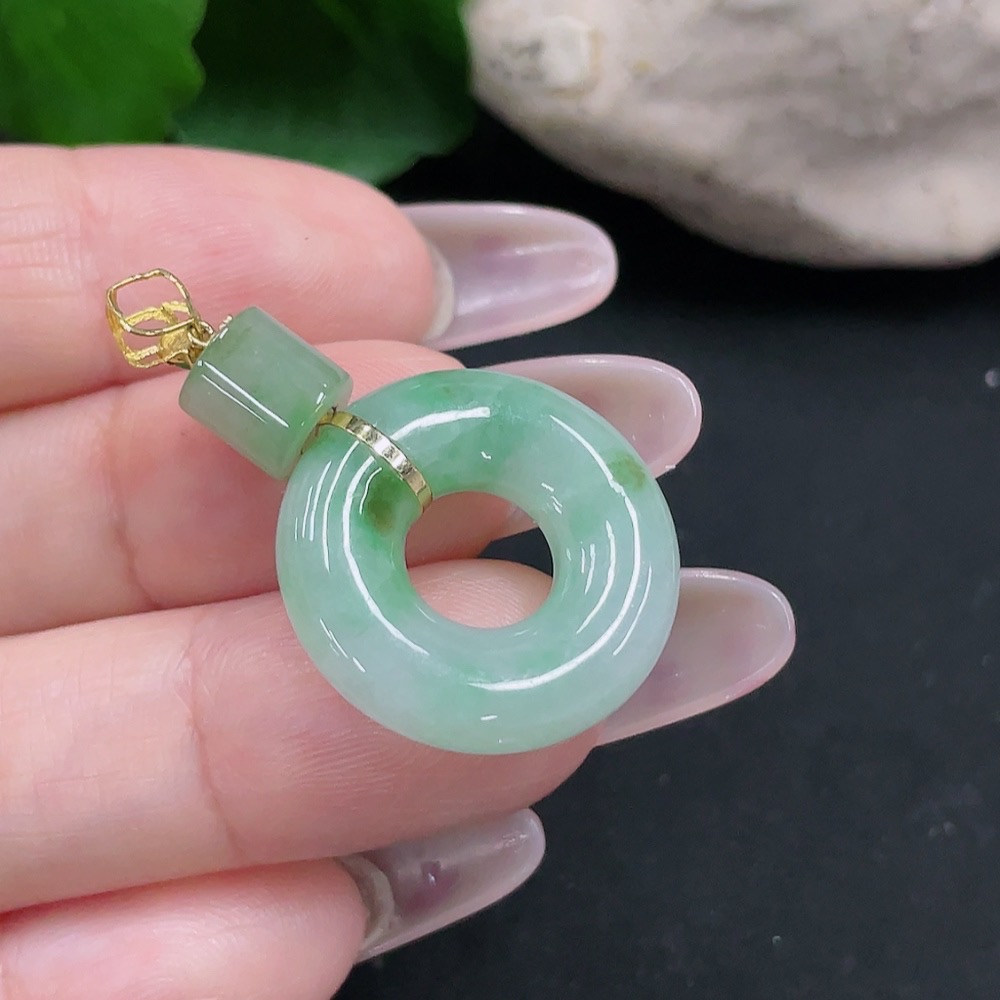 Jadeite Donut Pendant 18K Gold Total Weight Approx. 5.2g