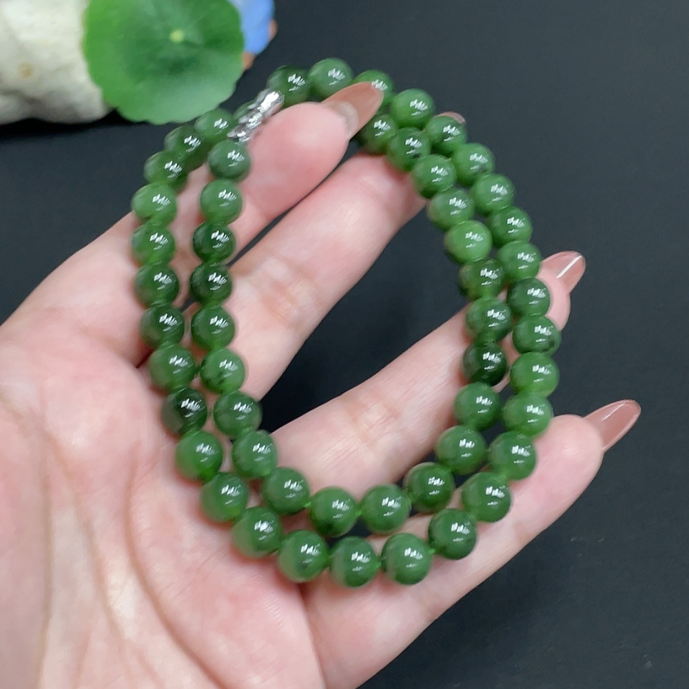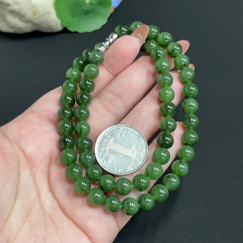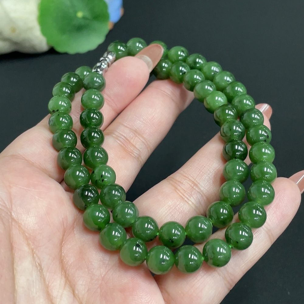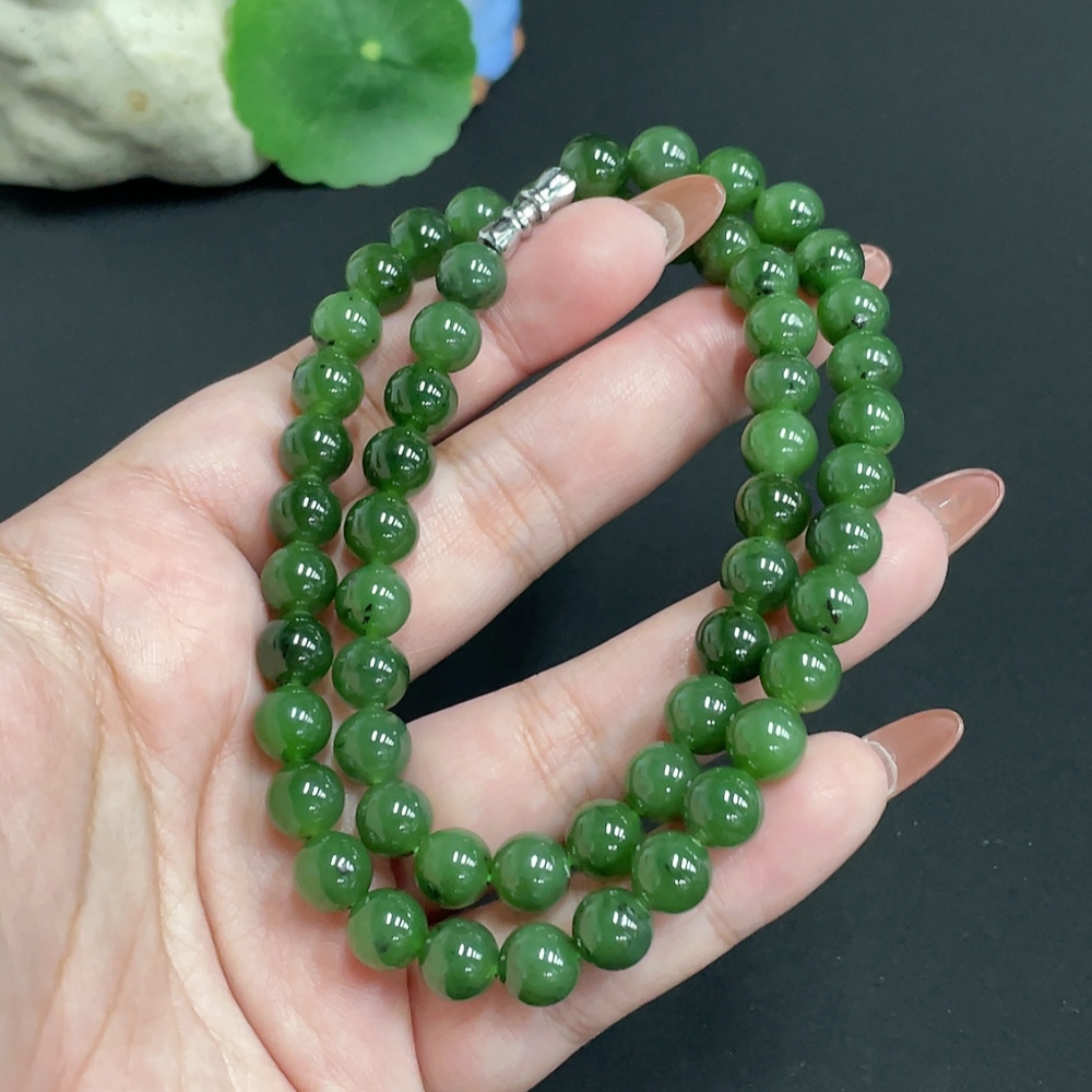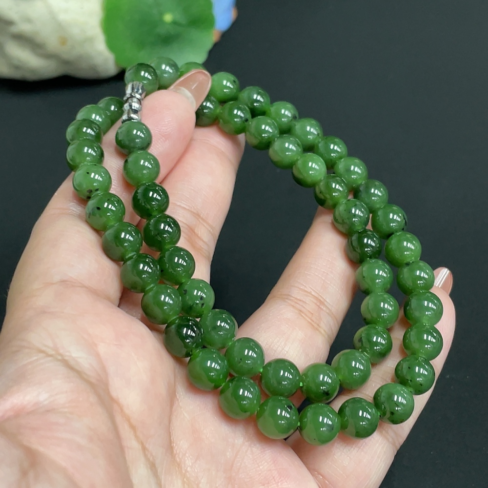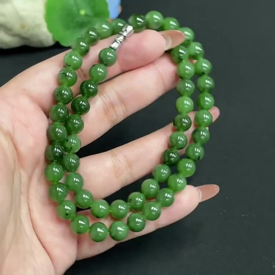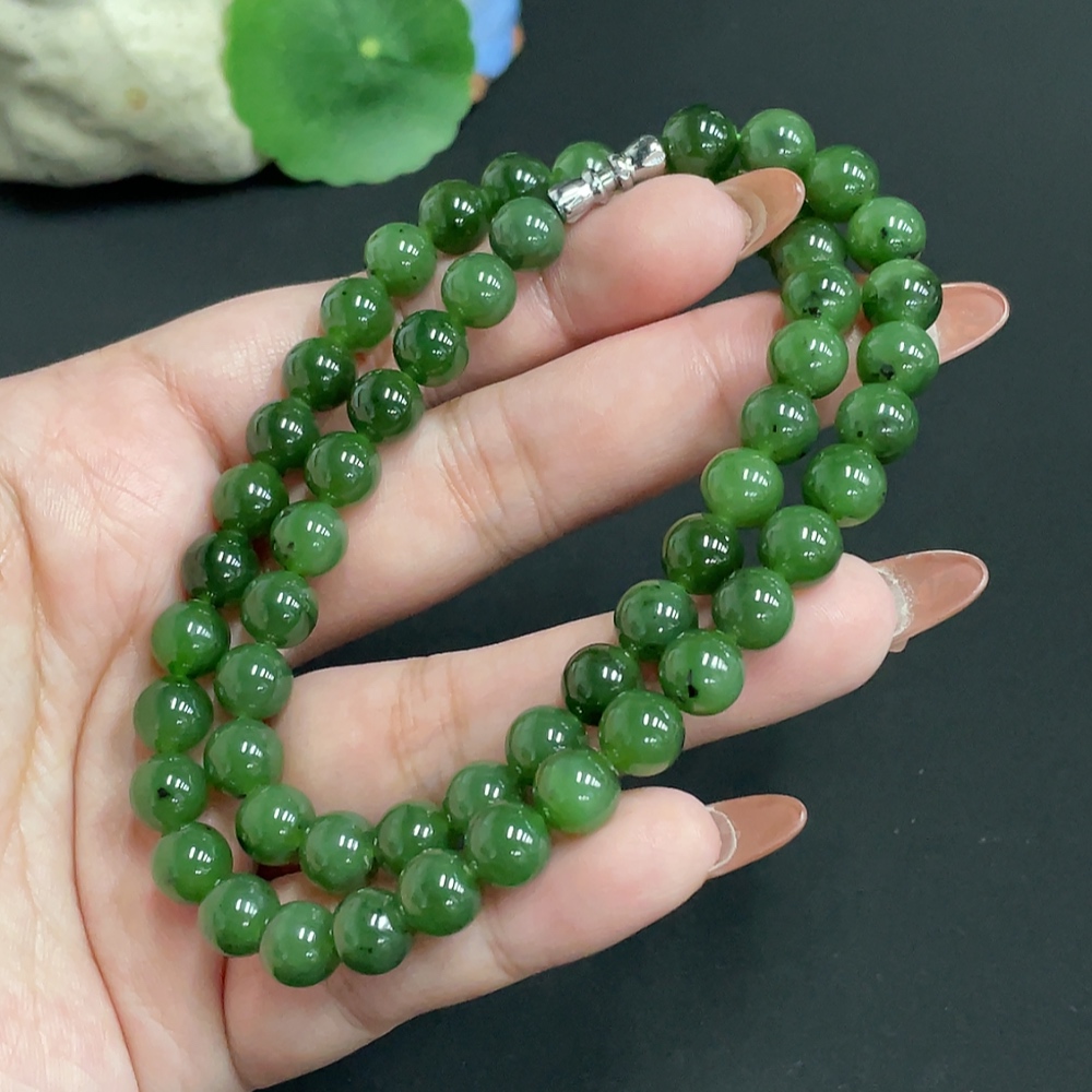 Hetian Jade Bead Necklace, Approx. 7.8mm, Total Weight Approx. 45.8g