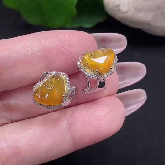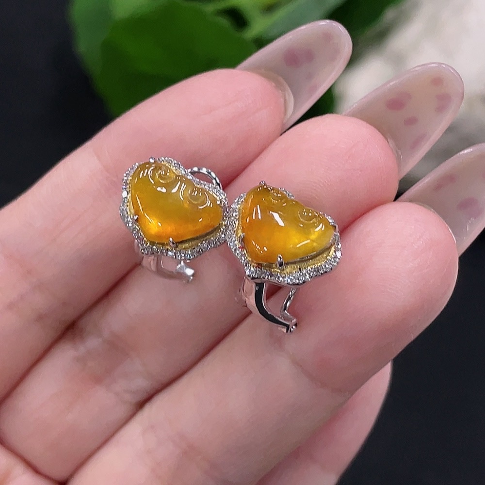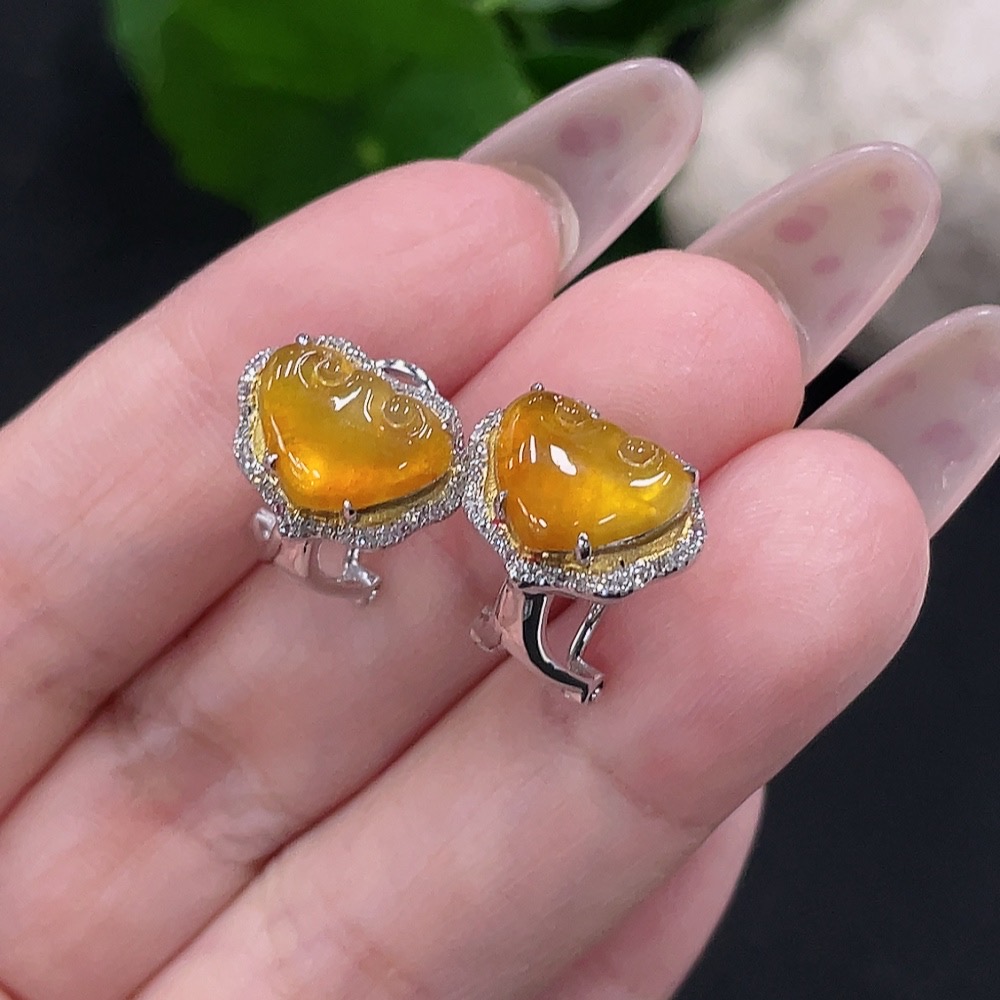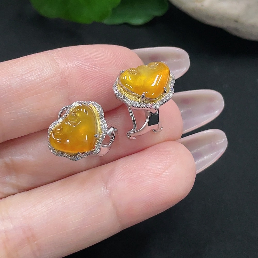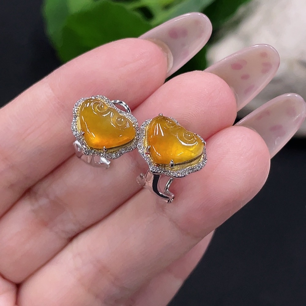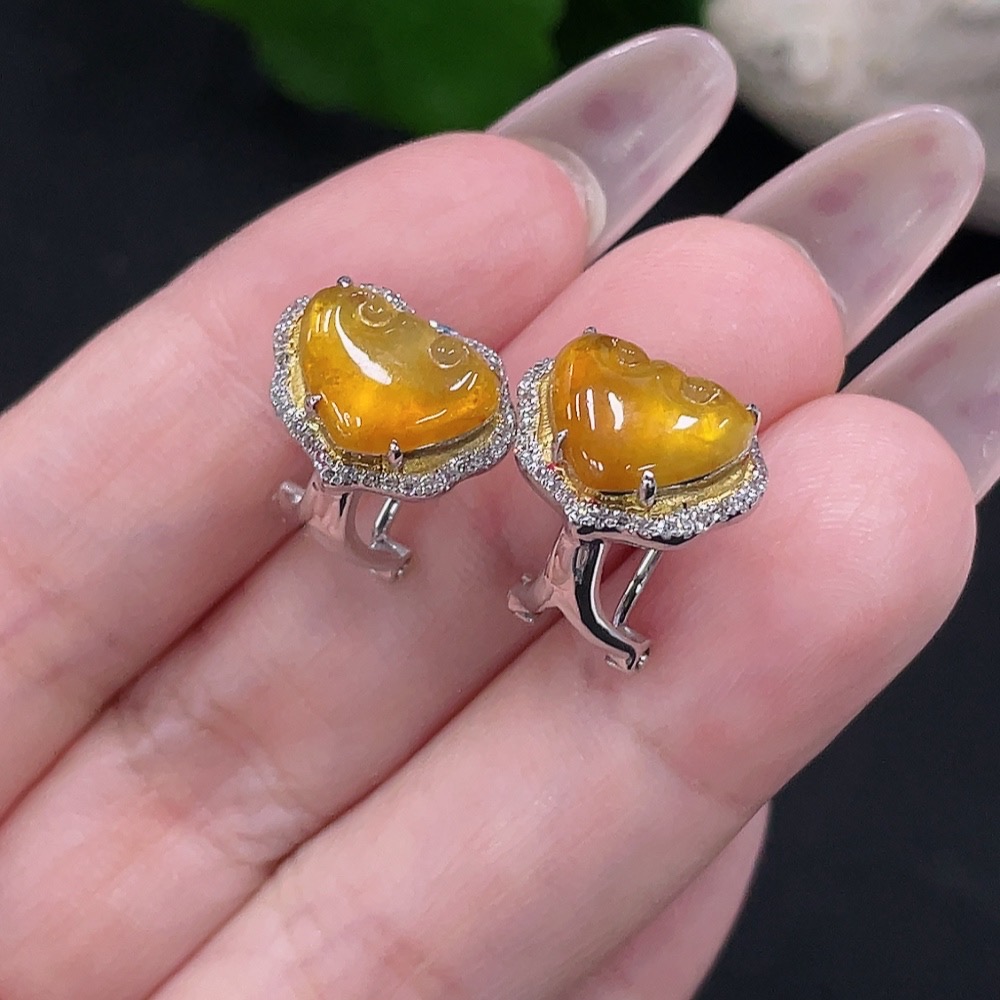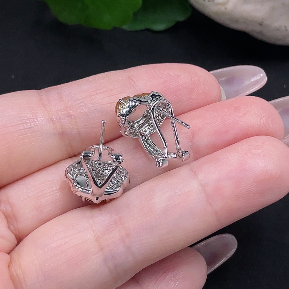 Jadeite earrings pair 18K gold total weight approx. 4.3g (with diamond accents)