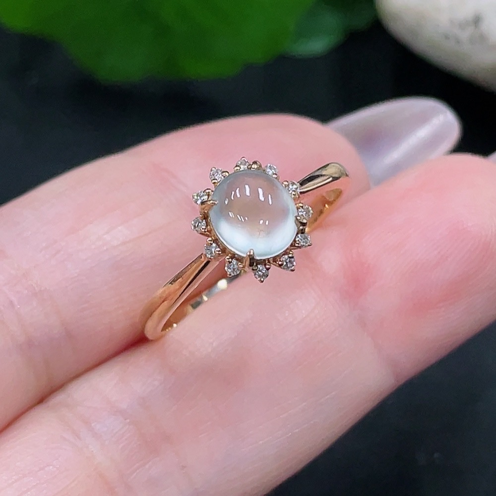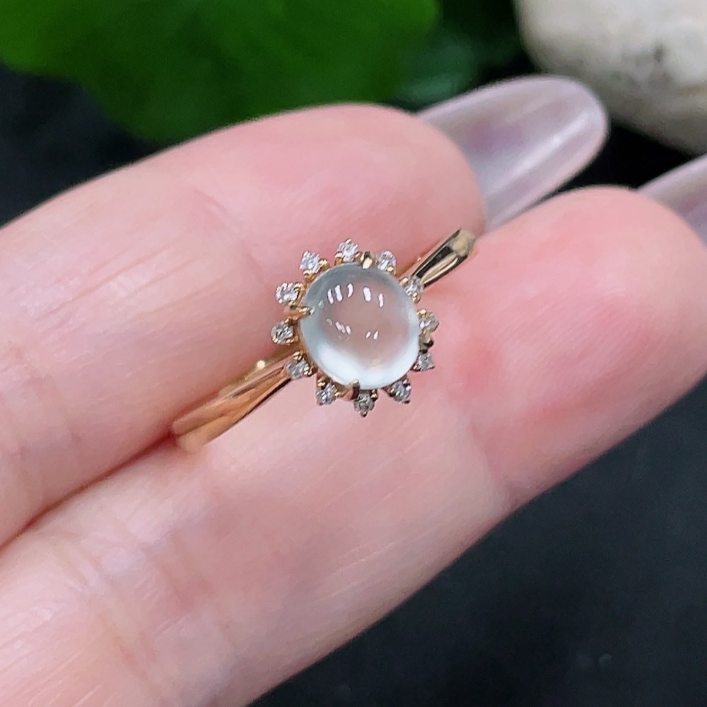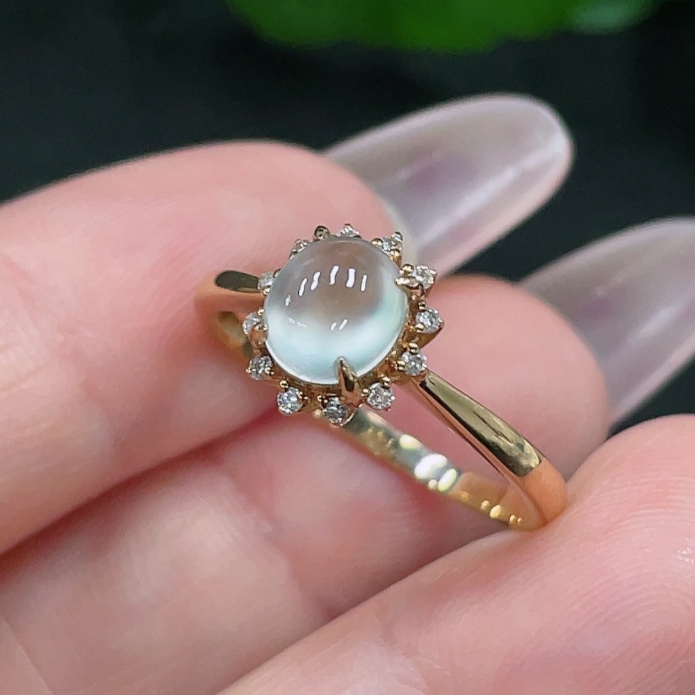 Jadeite Inlaid Ring Size 17, 73% Gold Content, Total Weight Approx. 2.4g (With Diamond Accents)