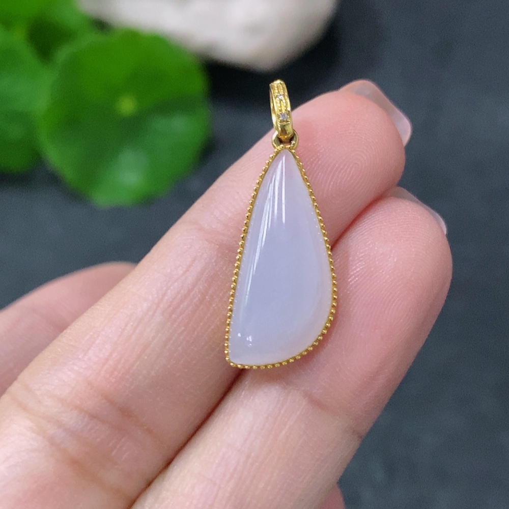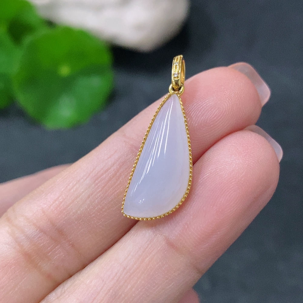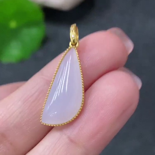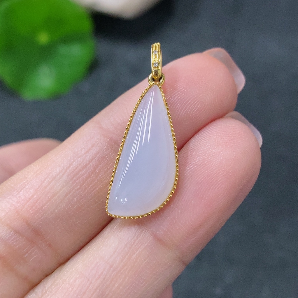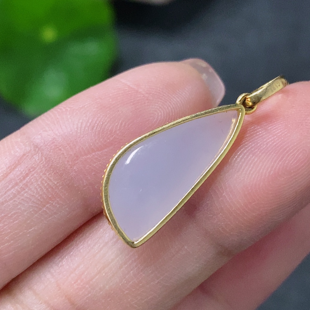 Jadeite Freeform Inlaid Pendant with 18k Gold, Total Weight Approx. 1.76g, Accented with Diamonds