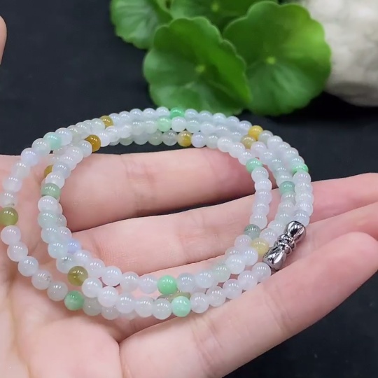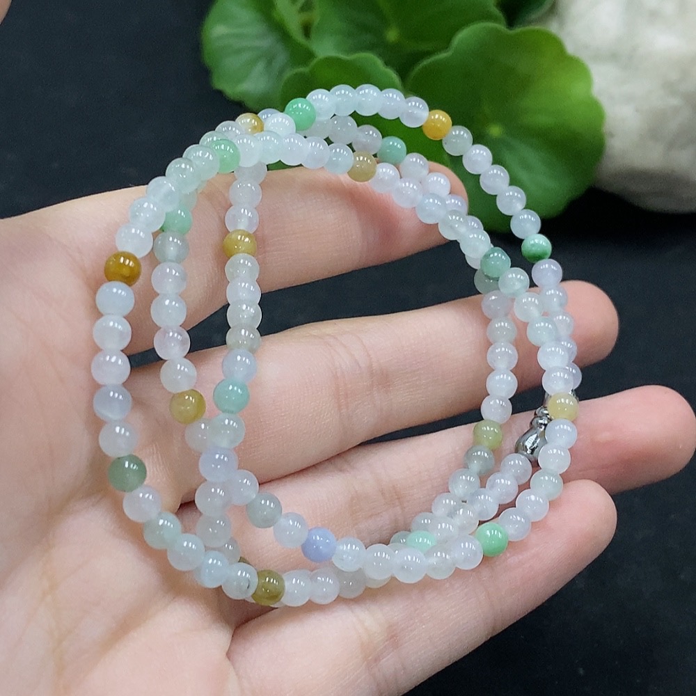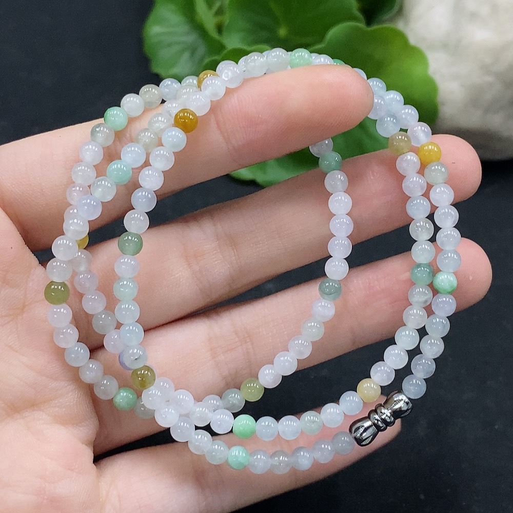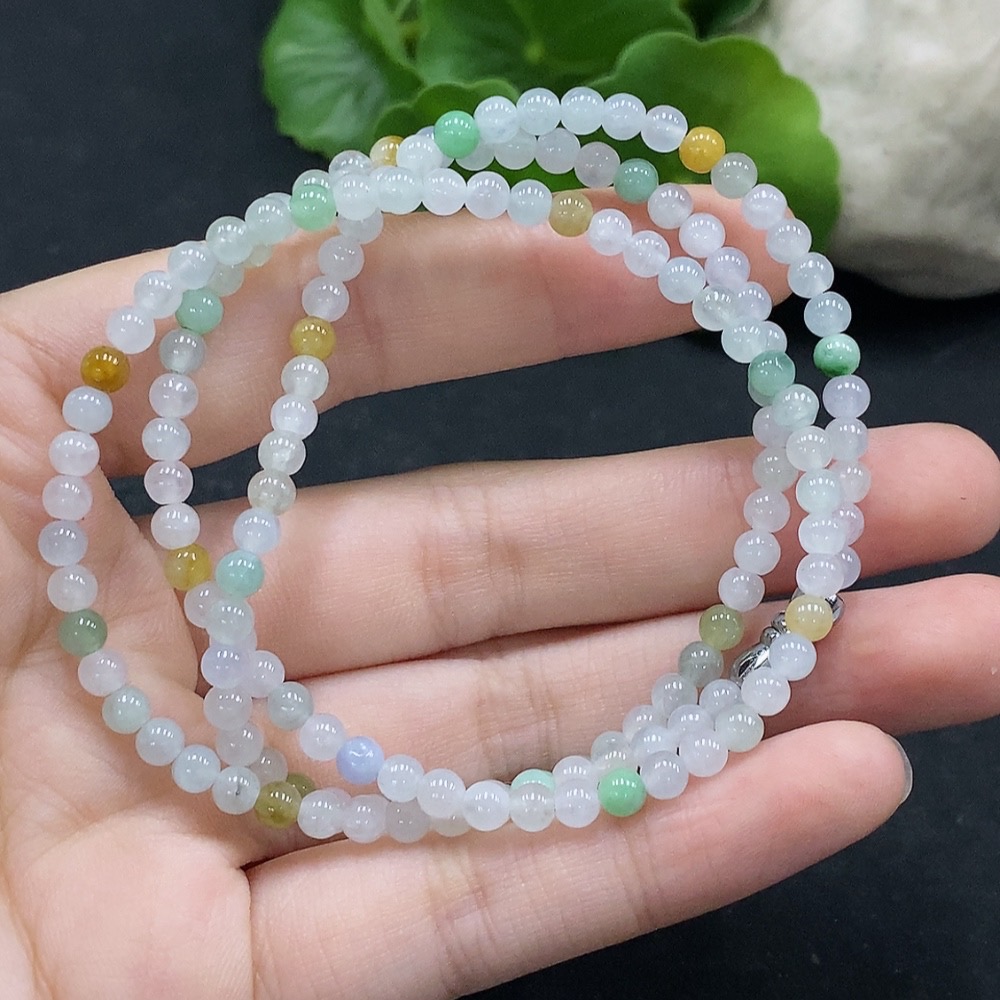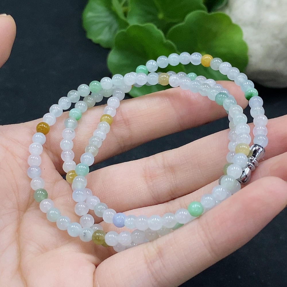 Jadeite Bead Necklace Approx. 4mm Total Weight About 15.33g Non-Gold Inlaid