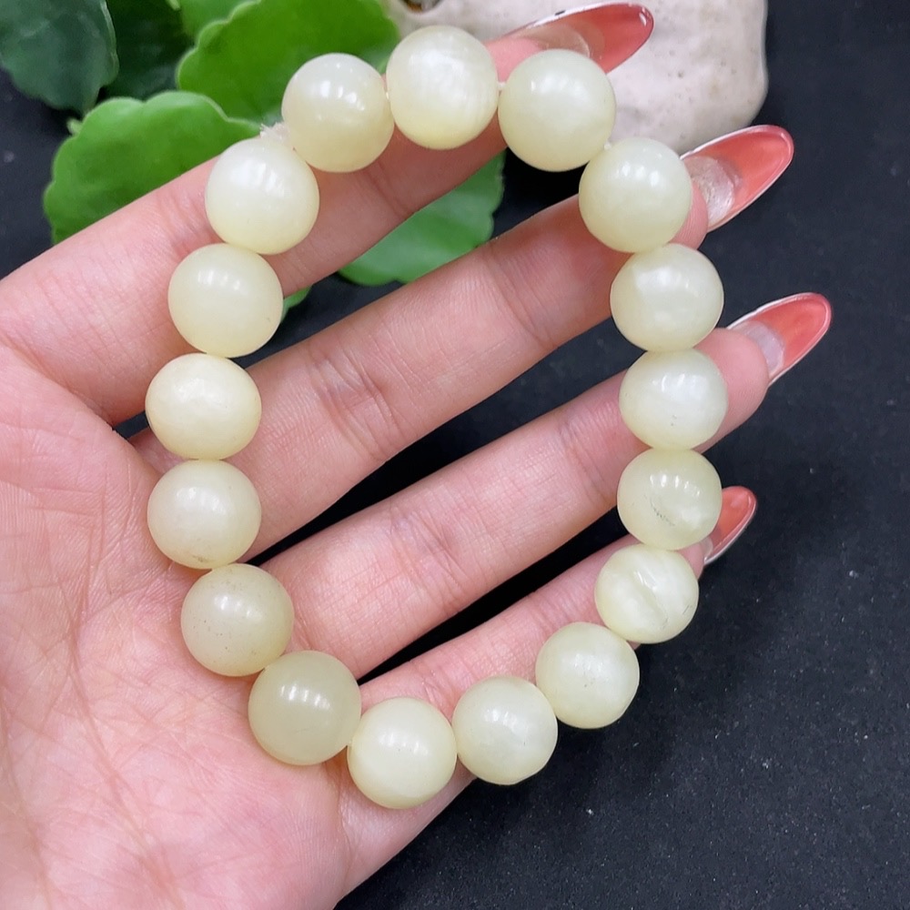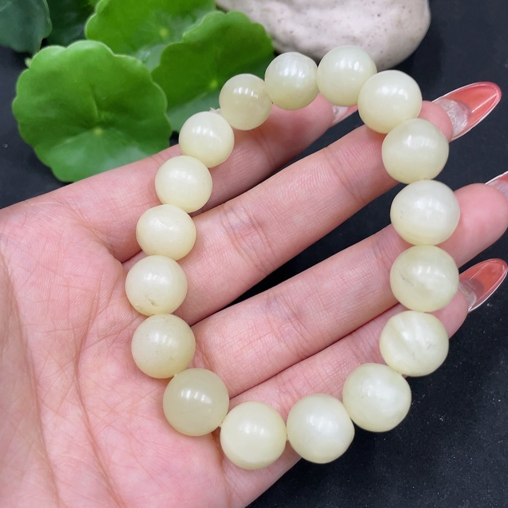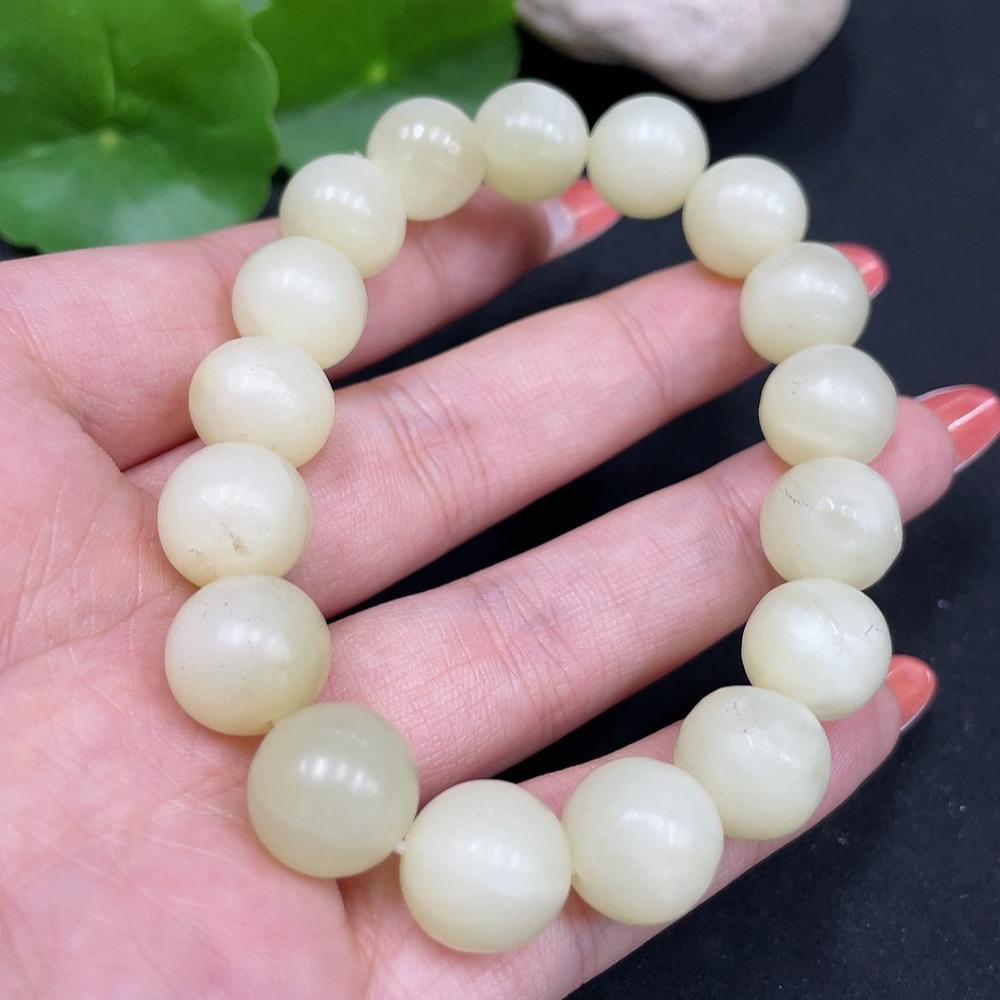 Hetian Jade Bracelet, approx. 11.5mm beads, total weight approx. 43.6g