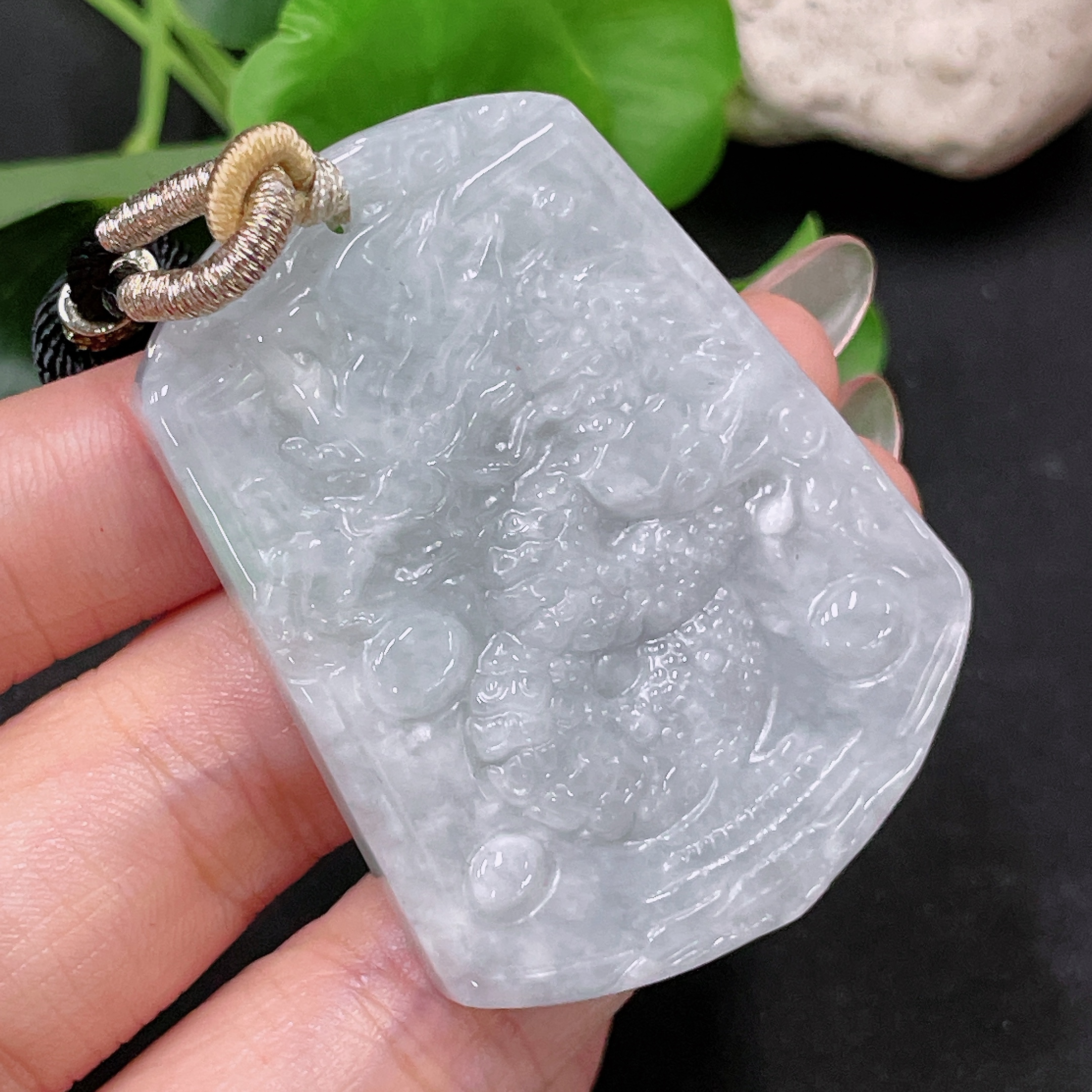 Jadeite Dragon Pendant with Cord, Total Weight Approximately 34.2g
