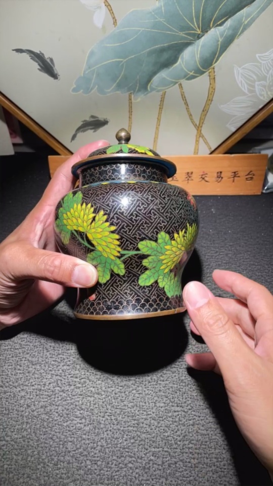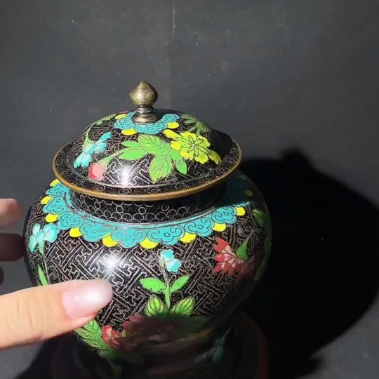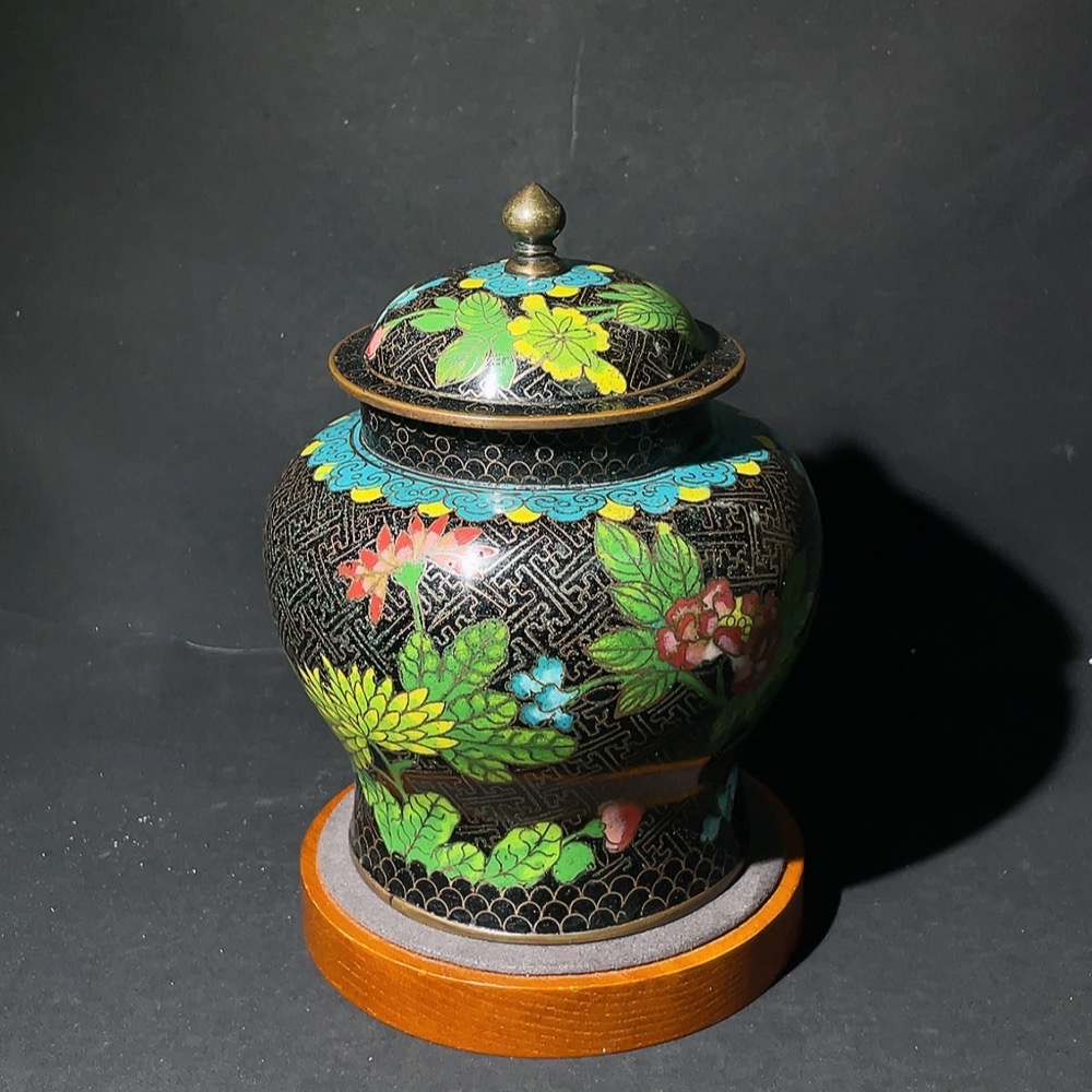 Late Qing Dynasty to Republic of China period cloisonné enamel 'Wan Zi' black ground floral pattern general's jar, fine wirework, intact glaze surface, miscellaneous category
