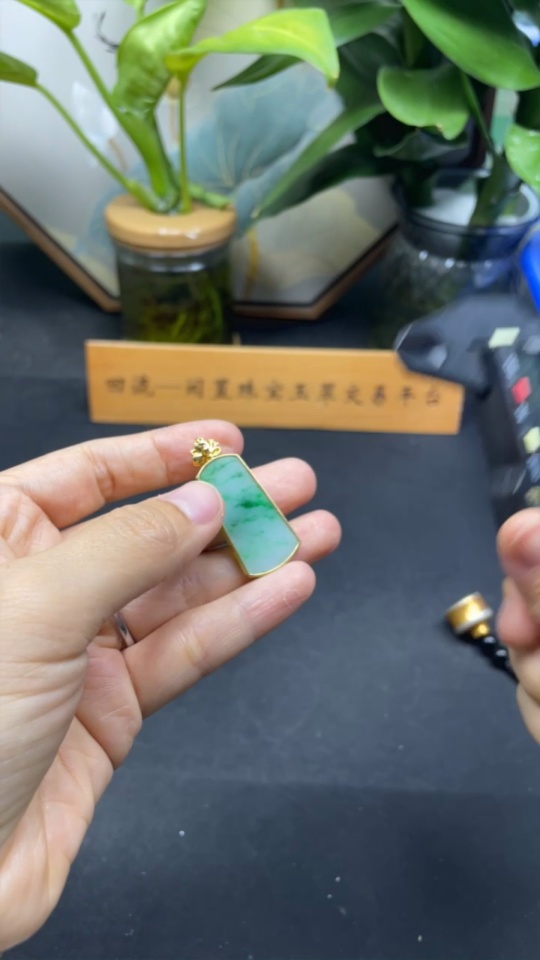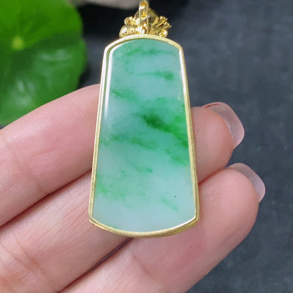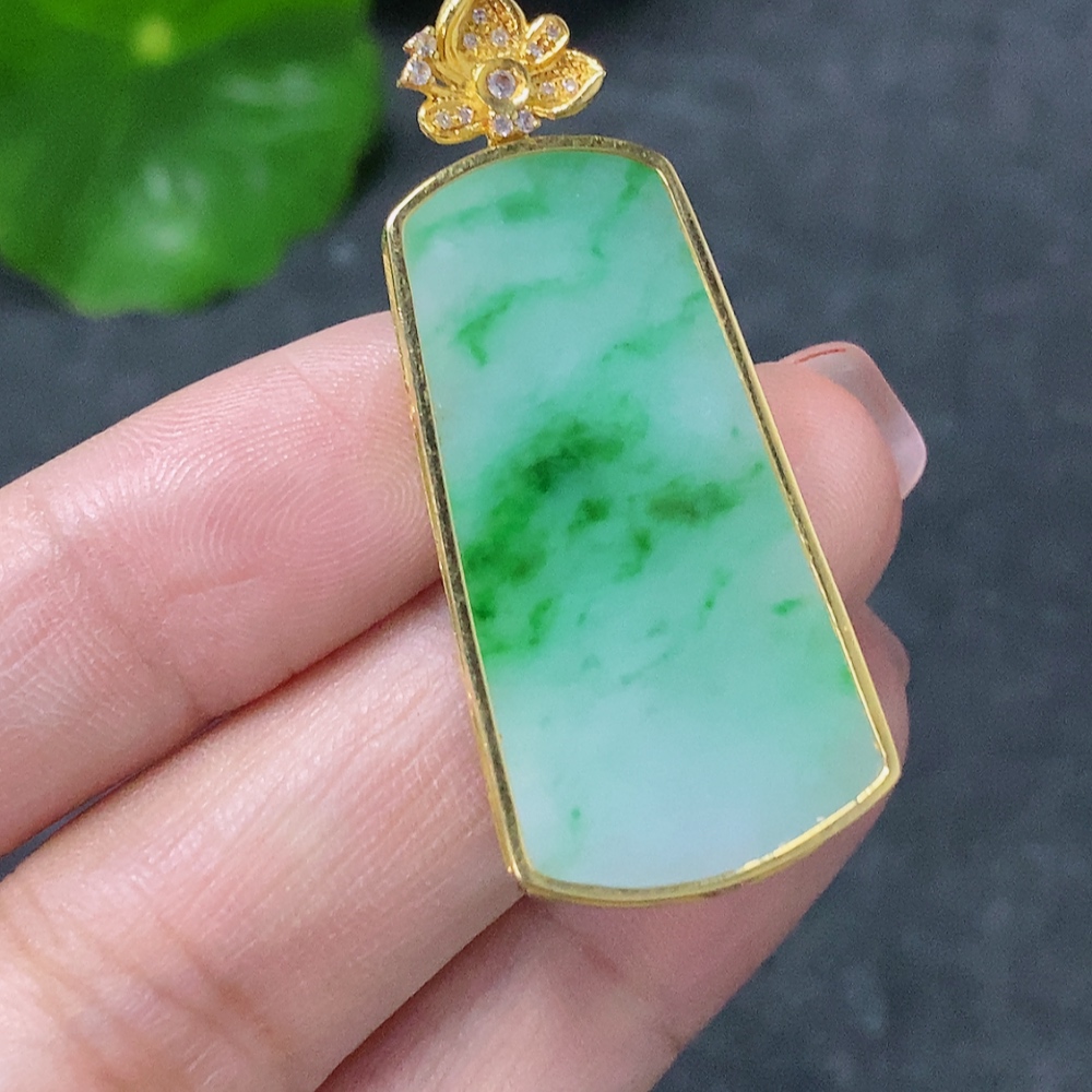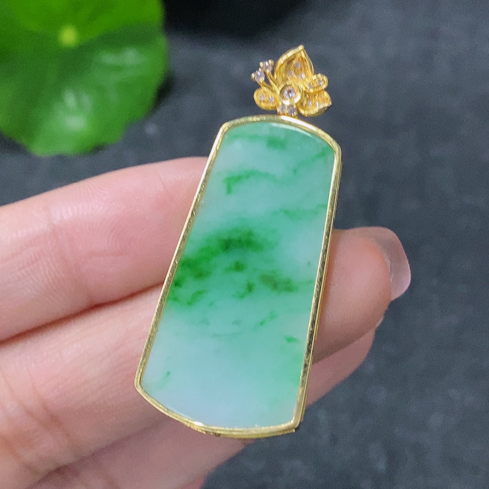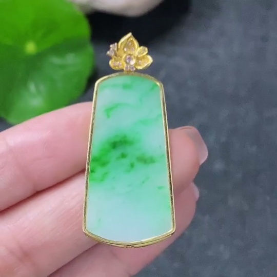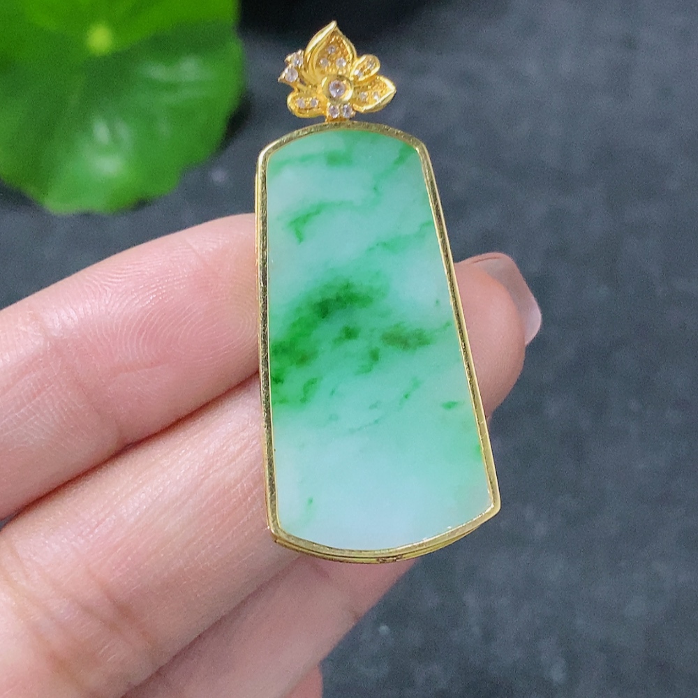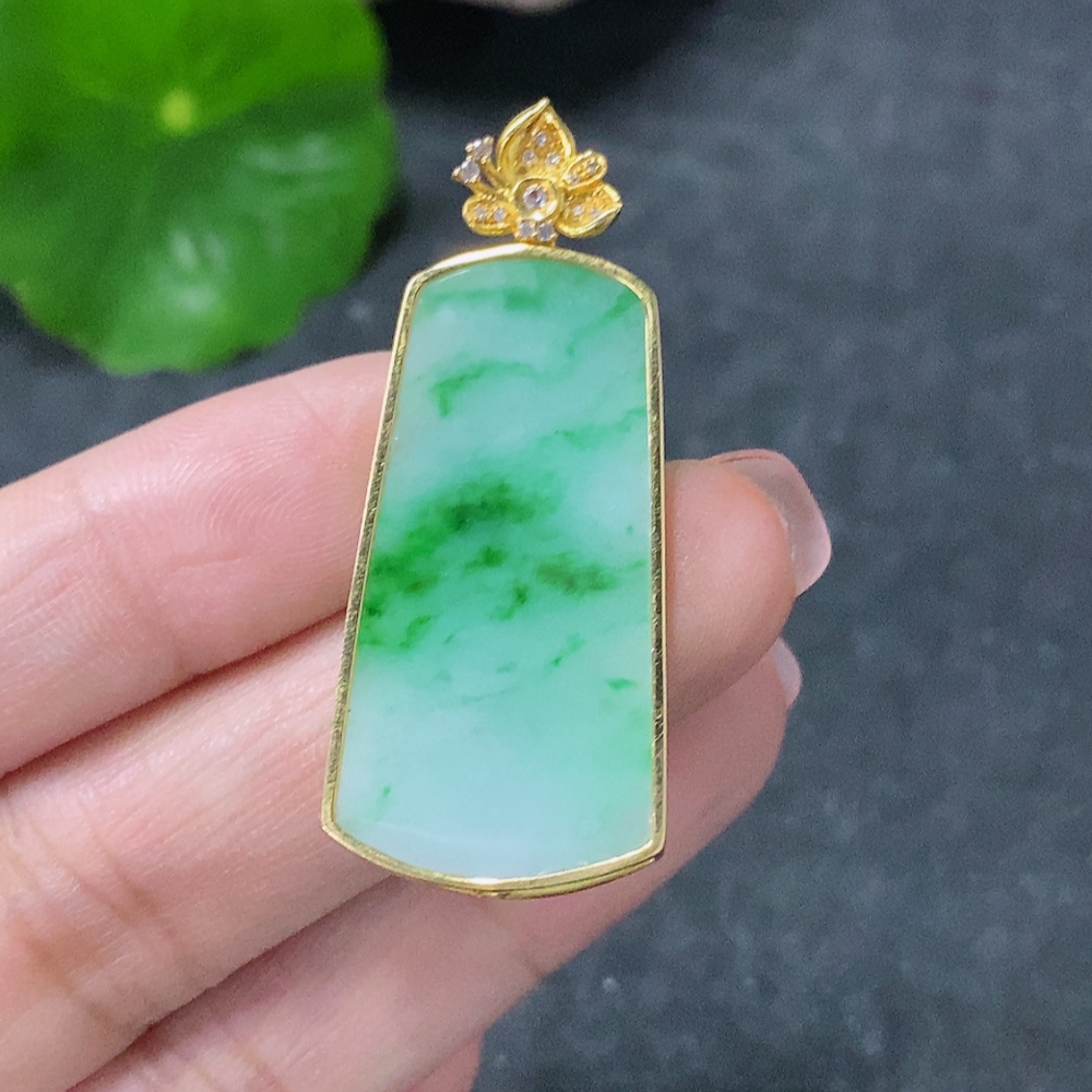 Jadeite Plain Pendant with 18K Gold and Diamond Accents, Total Weight Approx. 5.27g