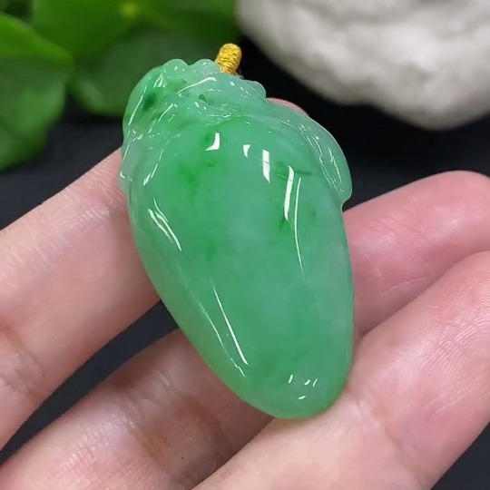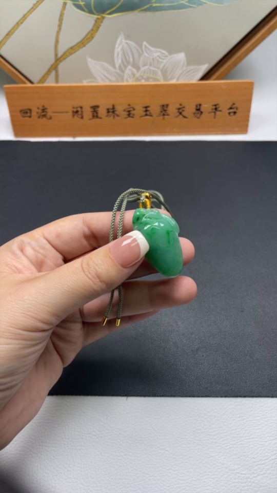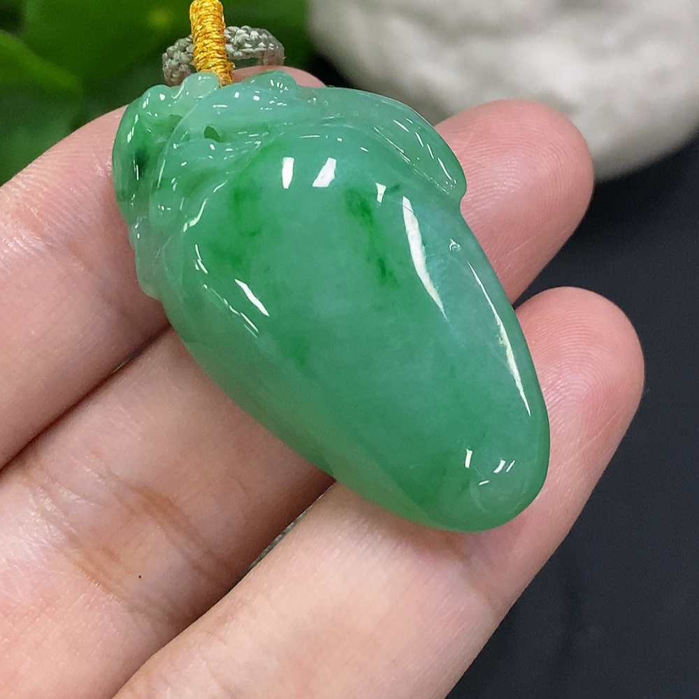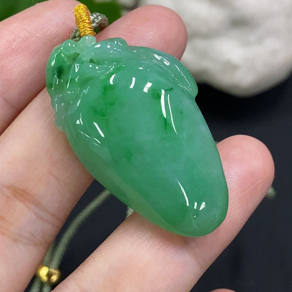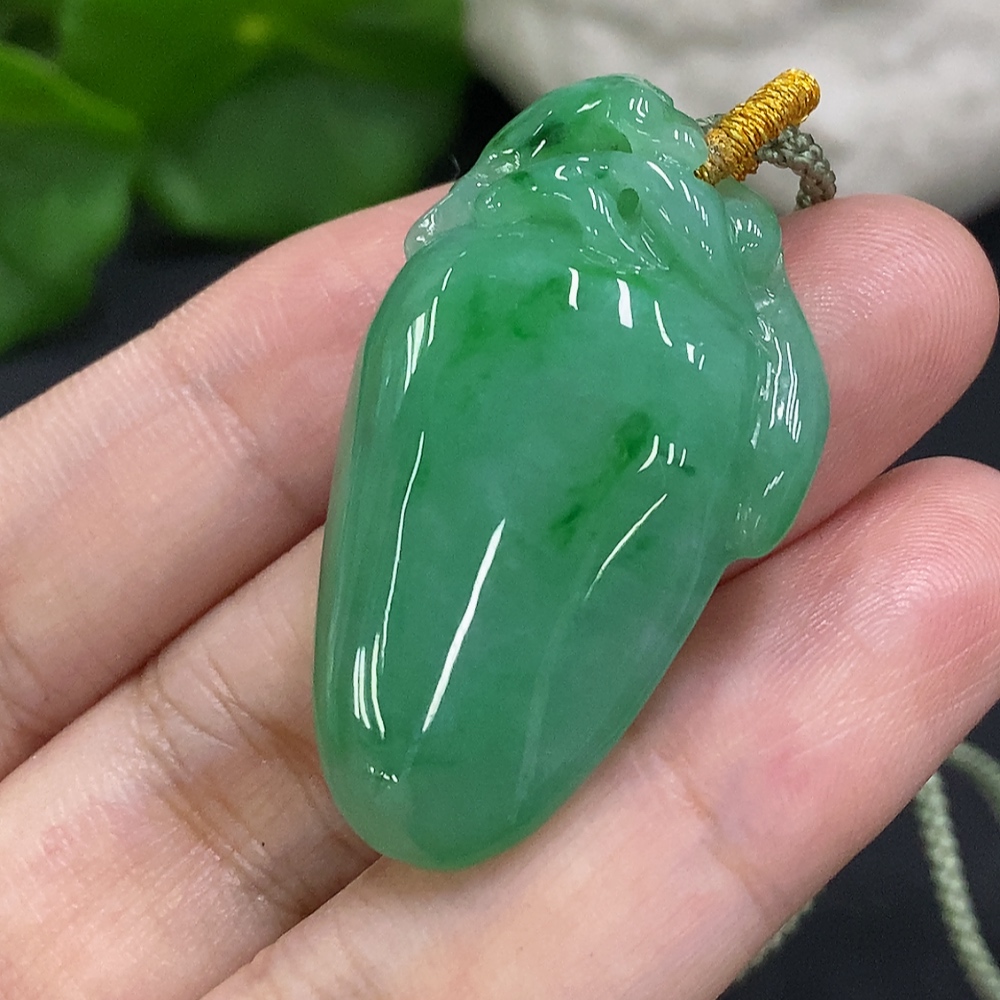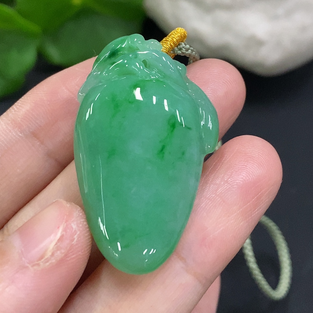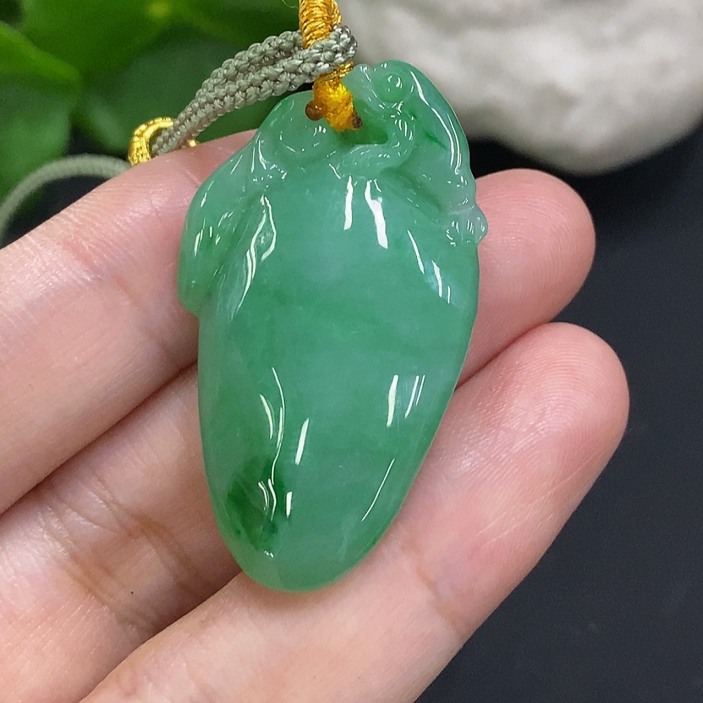 Jadeite Auspicious Gourd Pendant Non-Gold Total Weight Including Rope Approx. 16.1g