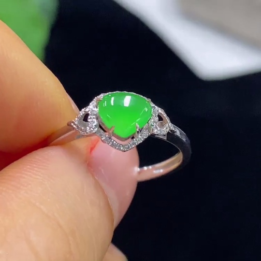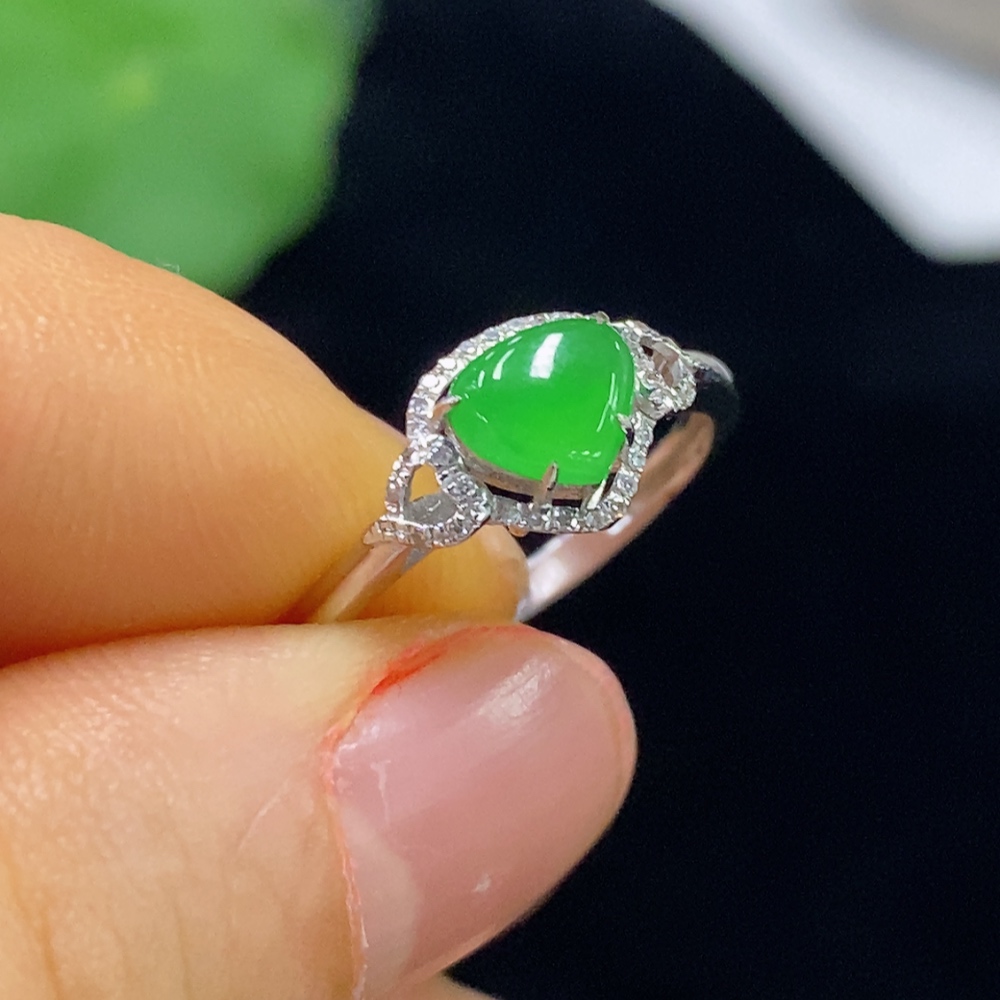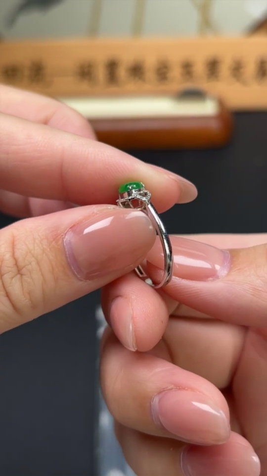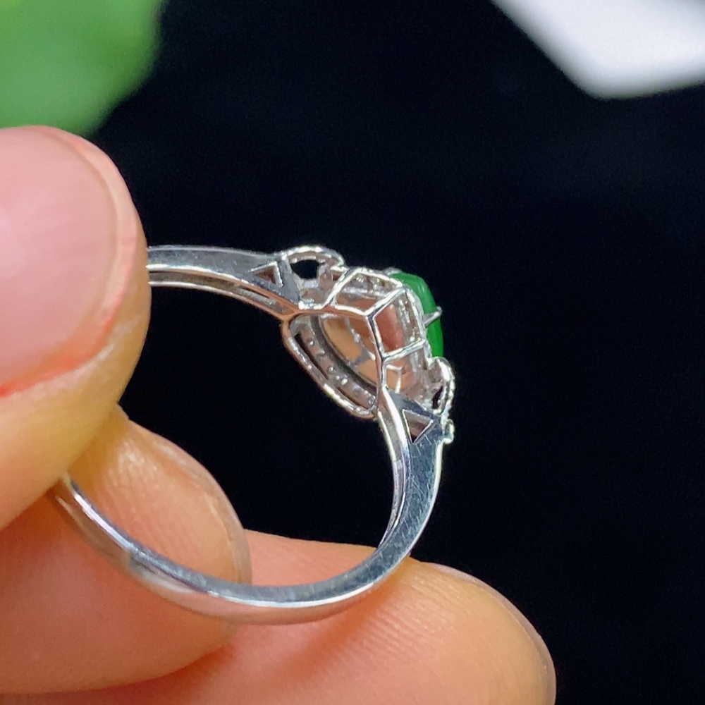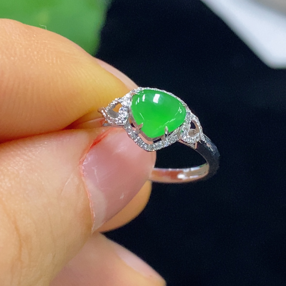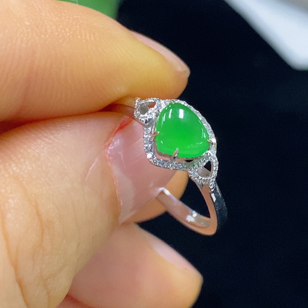 Jadeite Ring with 18K Gold and Diamond Setting, Total Weight Approx. 1.63g, Size 14