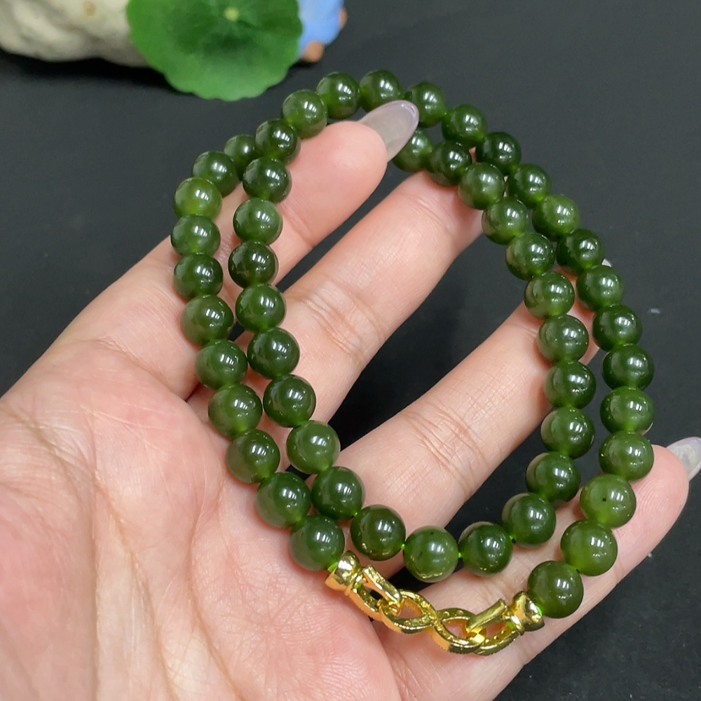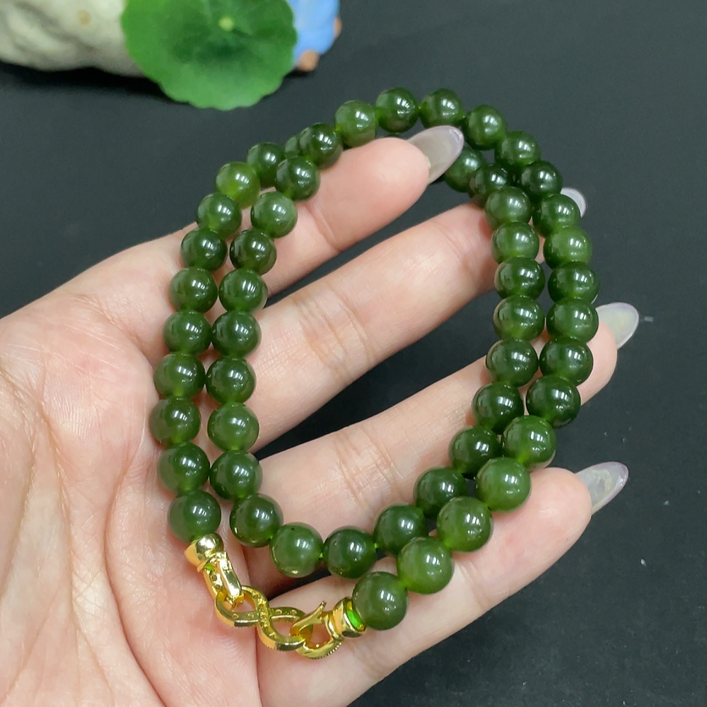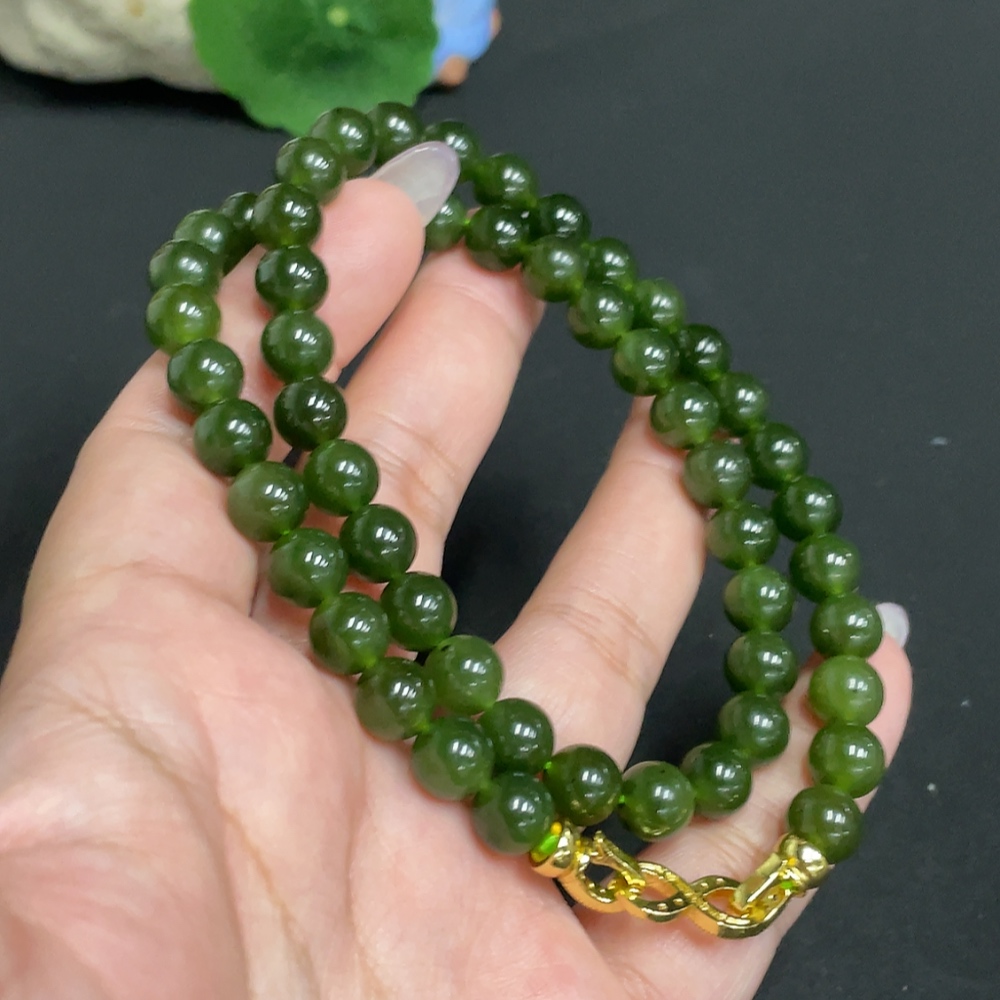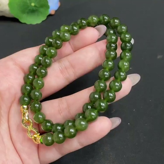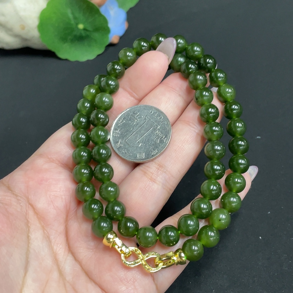 Hetian Jade Bead Necklace, Approx. 7.7 mm, Non-Gold, Total Weight Approx. 45.1g