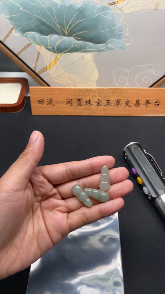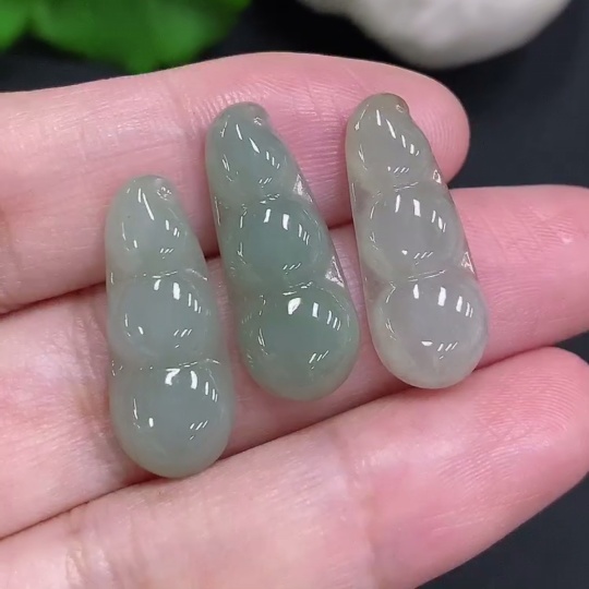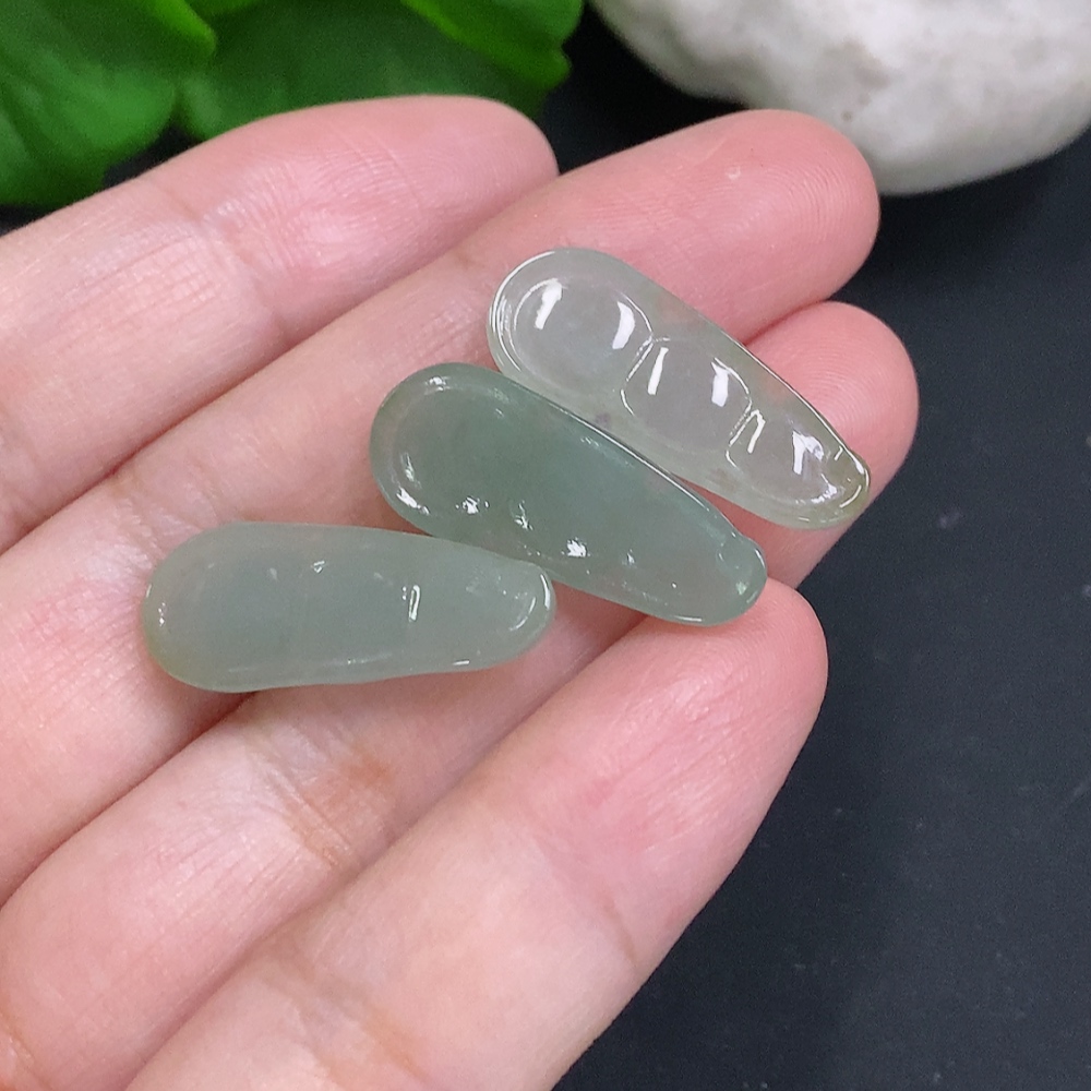Jadeite Auspicious Bean Inlaid Pieces Sell as a Lot
