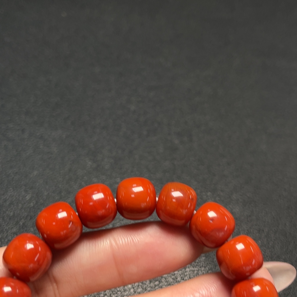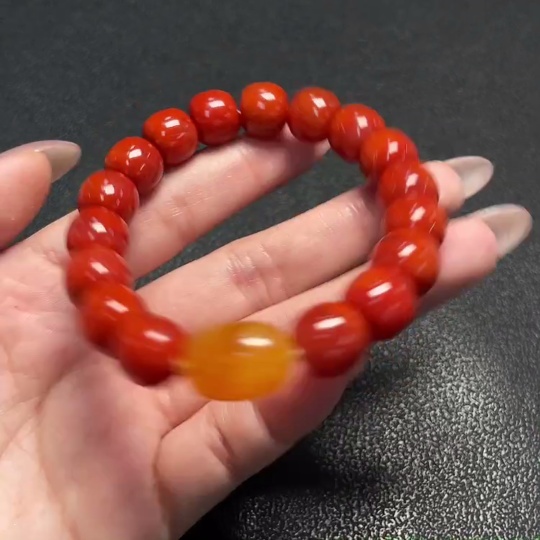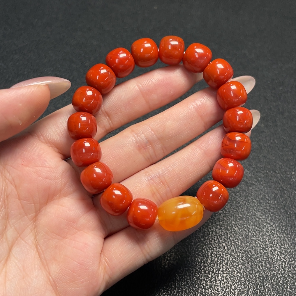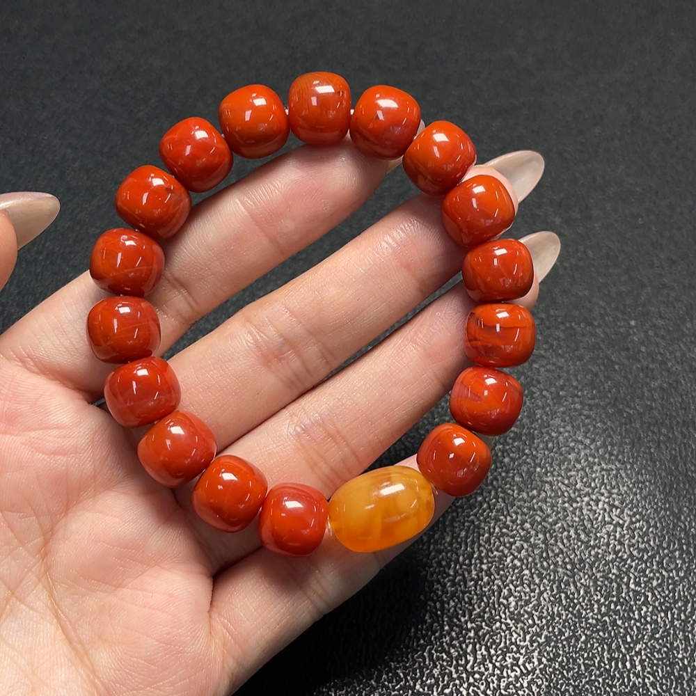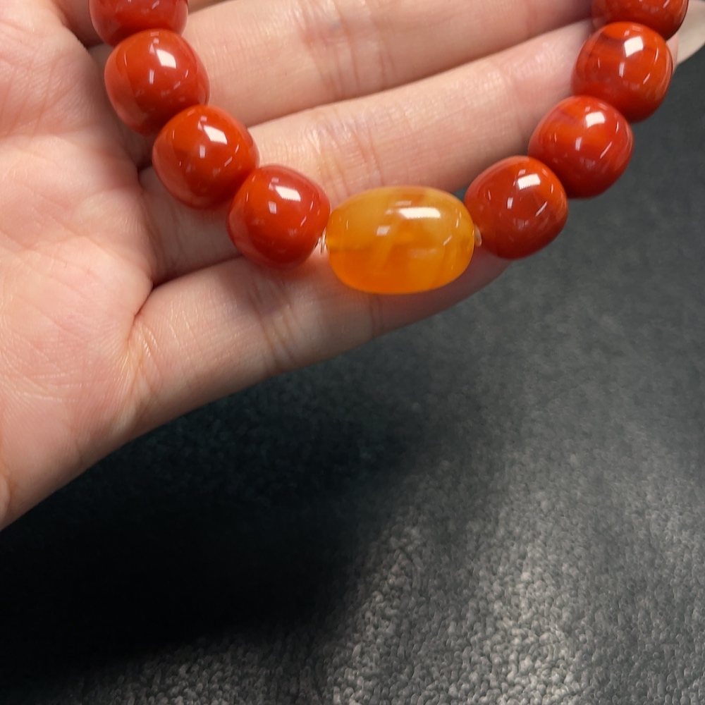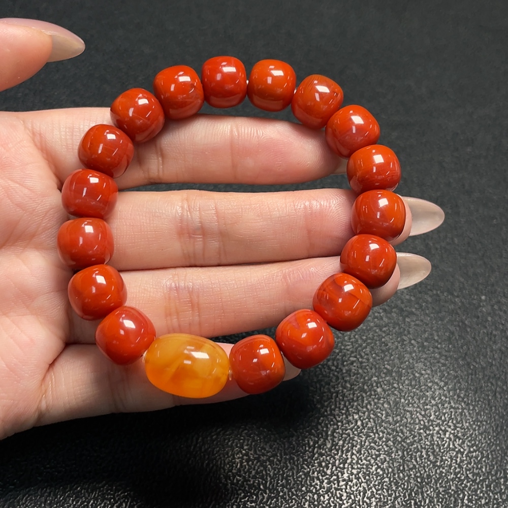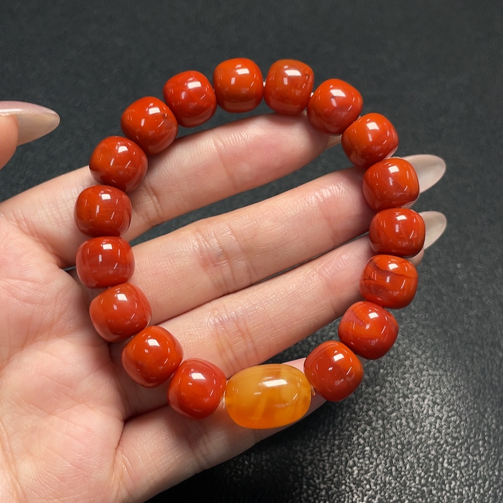 Red Agate Bracelet with Visible Organic Matter, Total Weight Approx. 35.31g, 11mm Beads, Paired with Amber