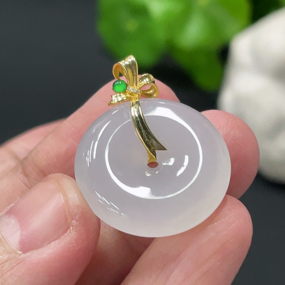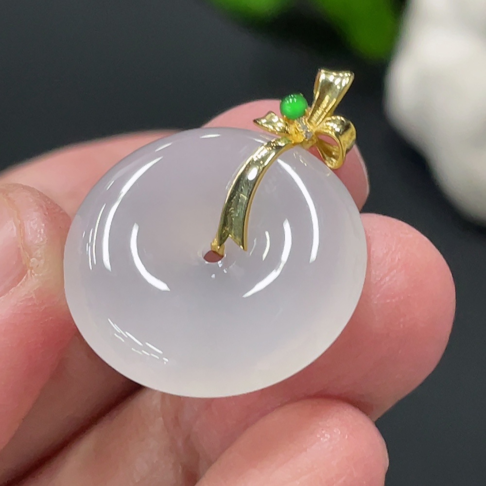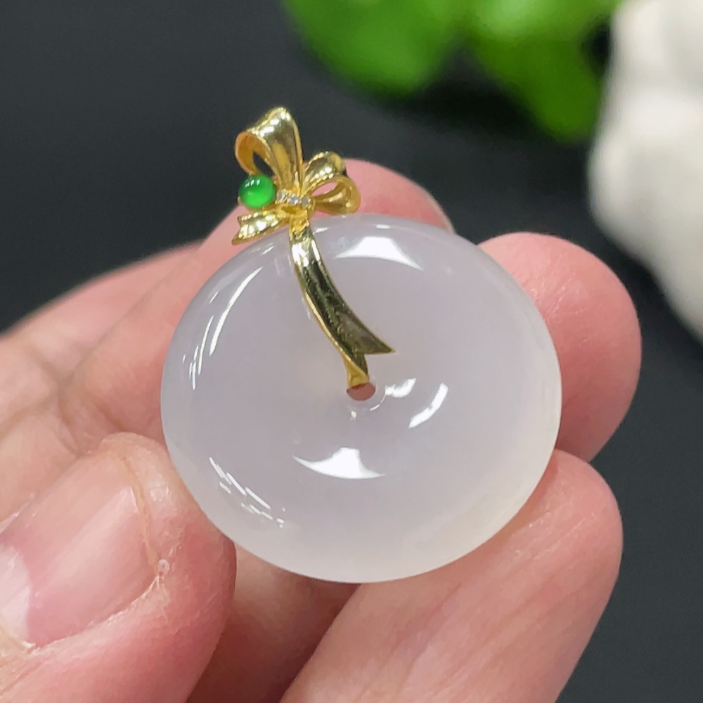 Jadeite Pendant with Peace Knot, 18K Gold and Diamond Accents, Total Weight Approximately 5.15g