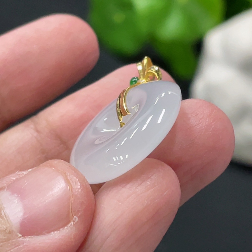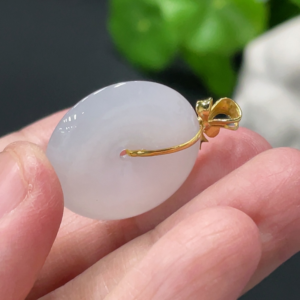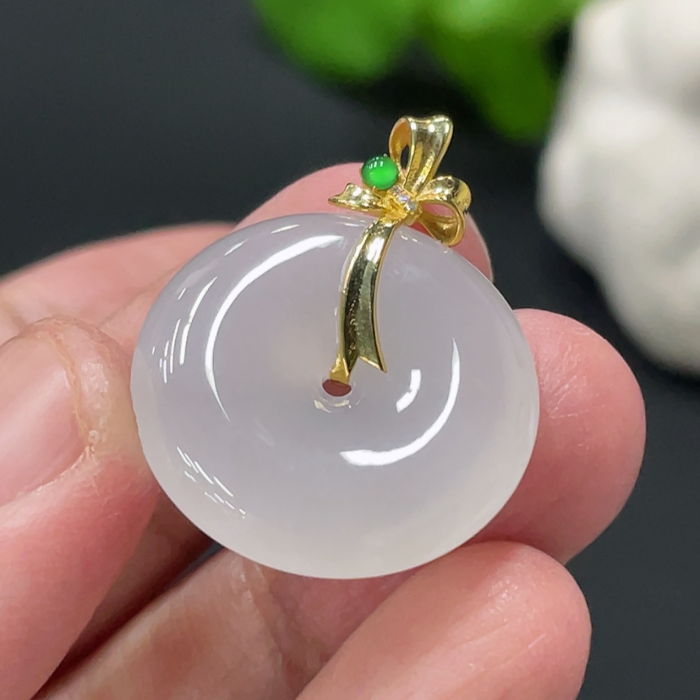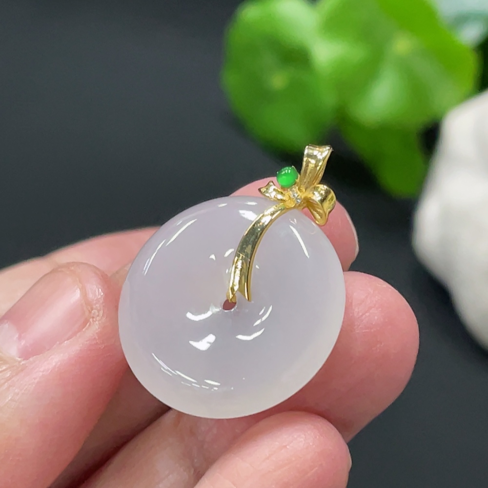 Jadeite Pendant with Peace Knot, 18K Gold and Diamond Accents, Total Weight Approximately 5.15g